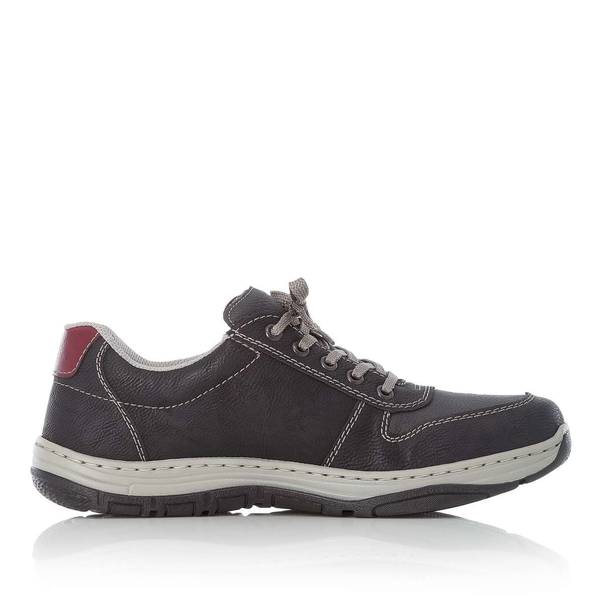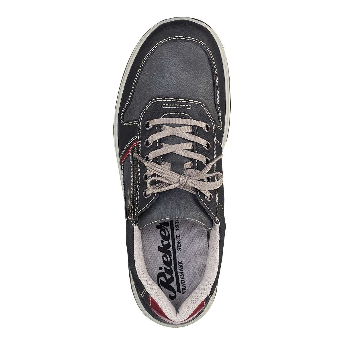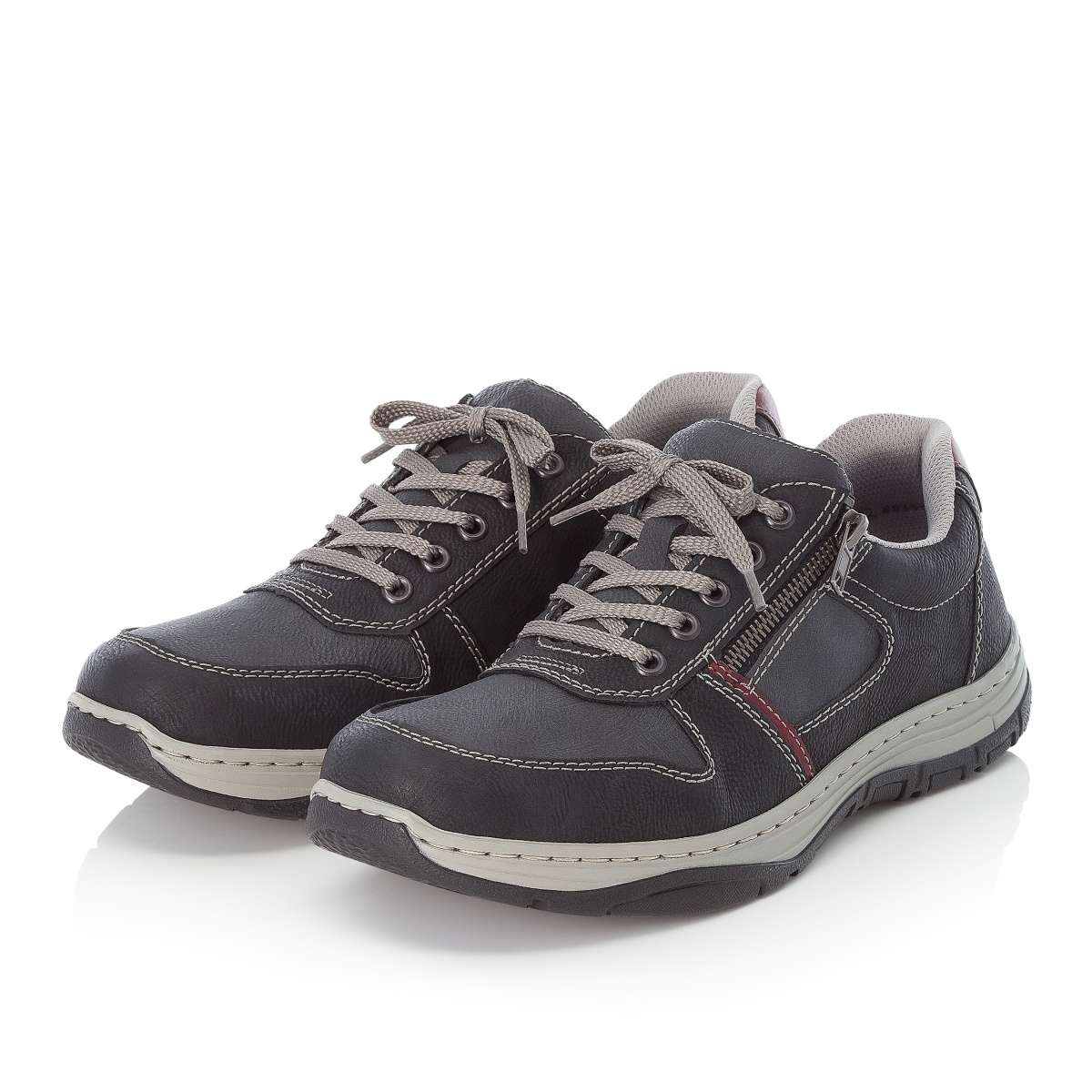 Vycházkový model s paměťovou stélkou, značky RIEKER. Podešev Podešev s jemným vzorkem je vyrobena z velmi kvalitního syntetického materiálu. Podešev je díky technologii Antistress lehká, flexibilní, absorbuje nárazy při došlapu a snadno se přizpůsobí každé noze. Svršek Pánské polobotky sportovního stylu mají paměťovou stélku, díky které bude pro Vás celý den jako z pohádky. Zdobnými prvky jsou červené díly v patě a na straně, kontrastní šití a kombinace světlejších a tmavších částí. Po stranách jsou funkční zipy pro snadné obutí. Šněrováním si pak obuv upravíte dle svých představ. Procházky, cestu do práce nebo městem již nebudete chtít bez těchto bot. Stélka Stélka je vyrobena z unikátní paměťové pěny, která se maximálně přizpůsobí tvaru Vašeho chodidla. Obuv s označením Extraweit má stélku boty určenou pro široké chodidlo. Technologie: Antistress, Extraweit Paměťová stélka: Ano