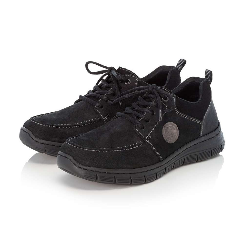 Polobotky značky RIEKER jsou zde přímo pro Vás. Zdobené jsou tmavými tkaničkami, prošitím a logem značky RIEKER. Šněrováním si pak obuv upravíte přesně dle svých požadavků. Tento model je vhodný jak k pracovním povinnostem, tak k volnočasovým procházkám.