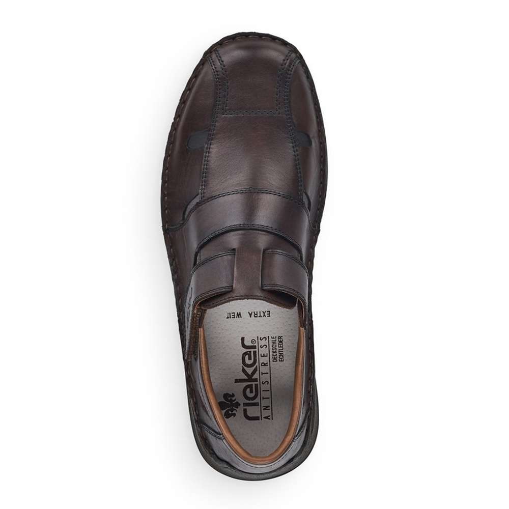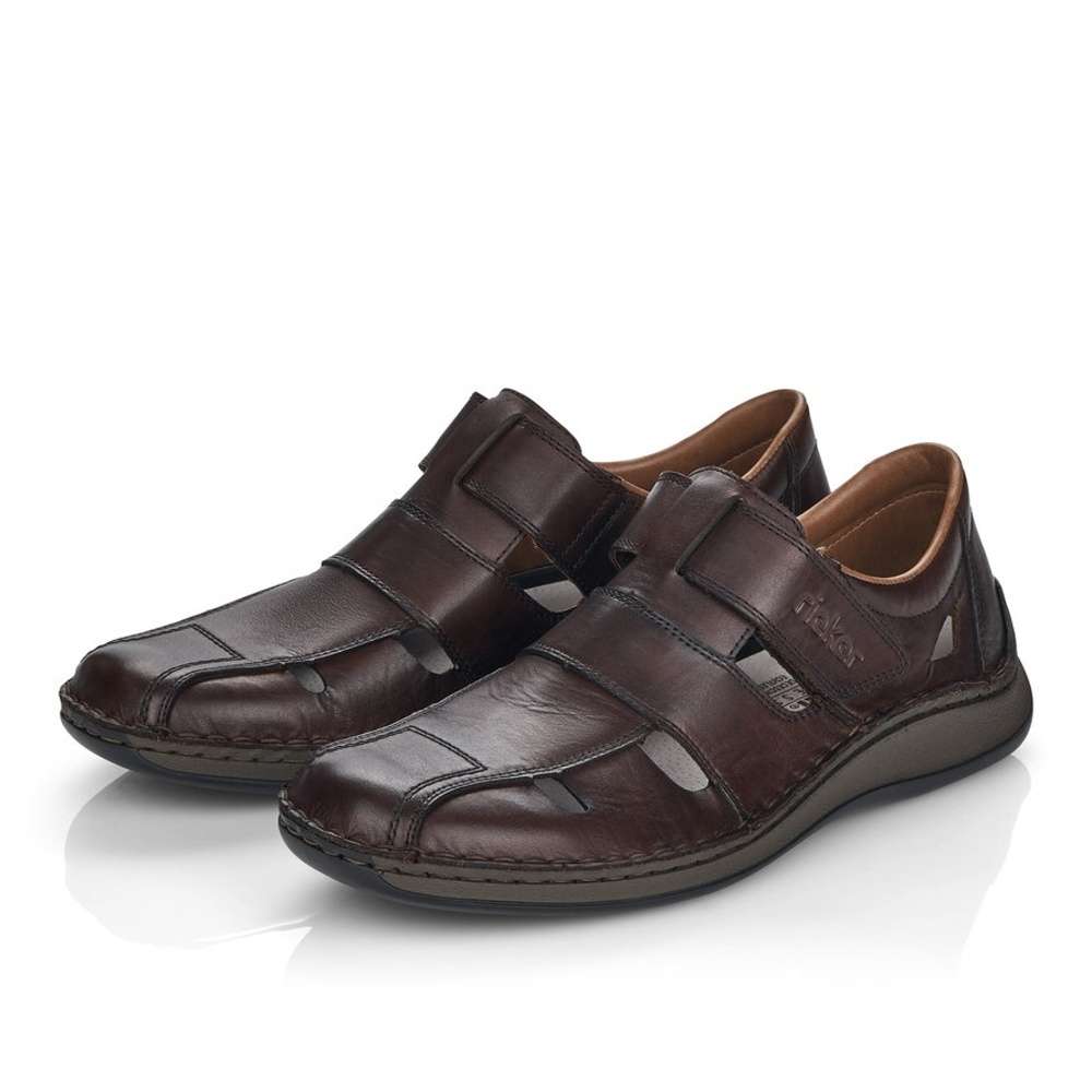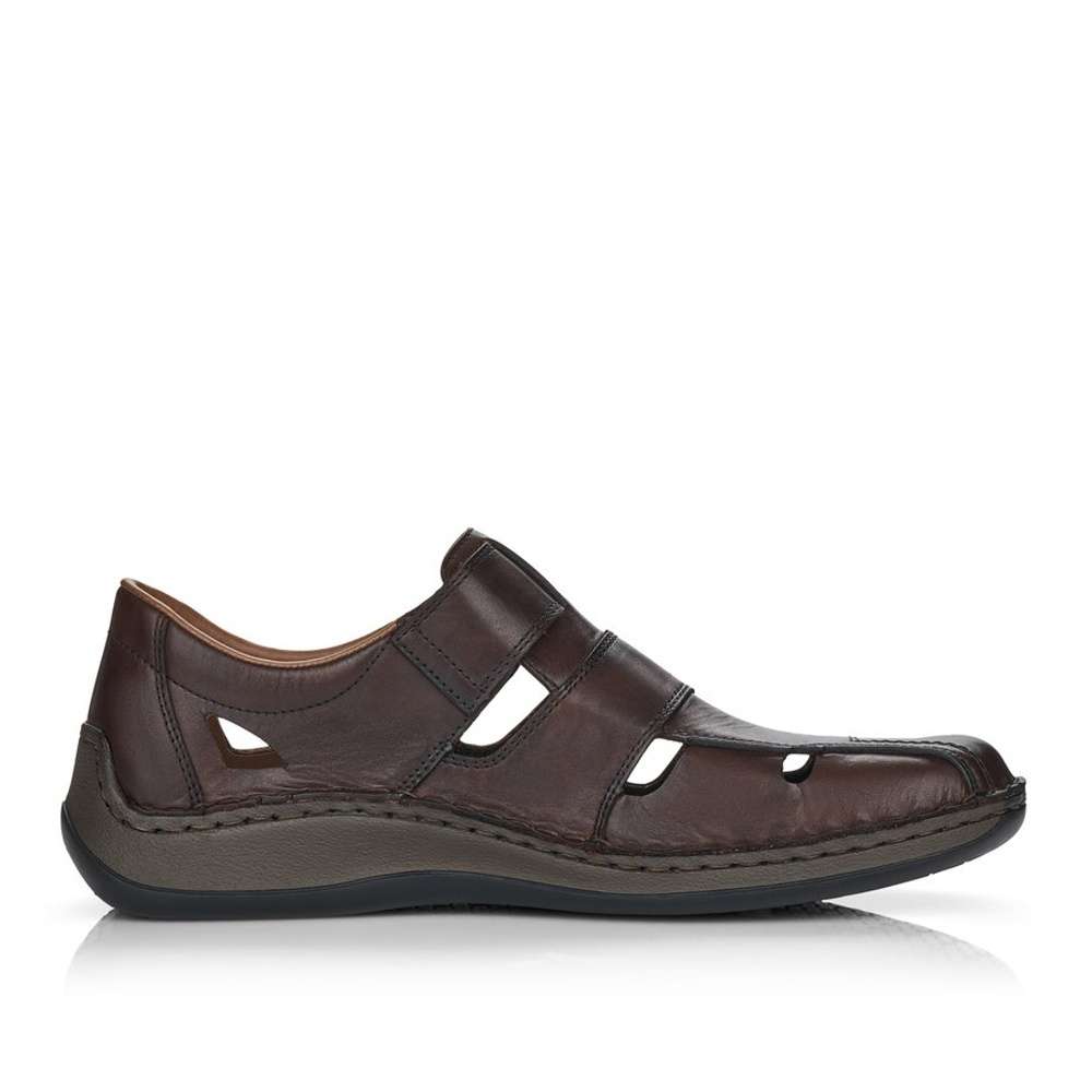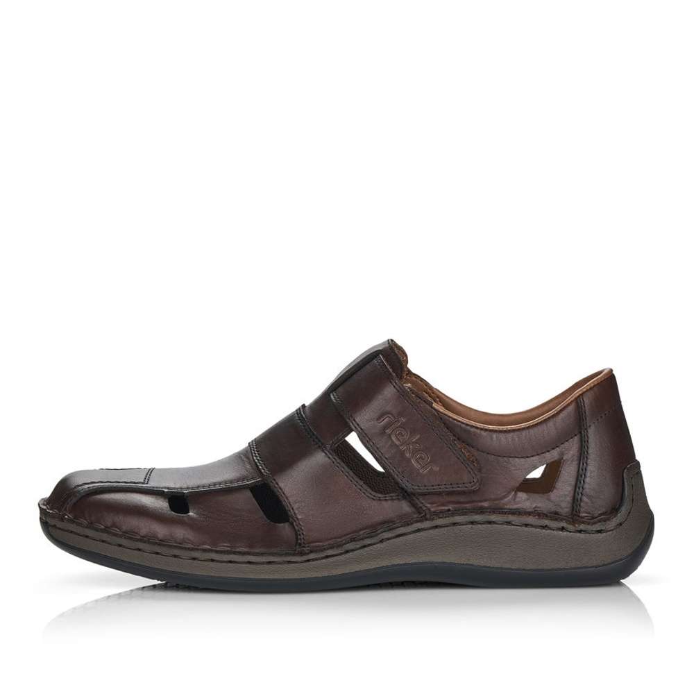 Pánská polobotka značky RIRKER bude tou správnou volbou do letních dní. Hladký kožený svršek je perforován a jemné prošívání společně s vytlačeným názvem značky jsou zdobným prvkem tohoto modelu. Pro snadné nazouvání slouží pásek na suchý zip, díky kterému si botu přizpůsobíte přímo na svou nohu. Měkká stélka vyrobena z pravé kůže je určena pro širší chodidlo. Kvalitní podešev je se svrškem spojena šitím, které je pro tuto značku typické. Tato obuv bude dobře vypadat jak k plátěným kalhotám, tak ke kraťasům.