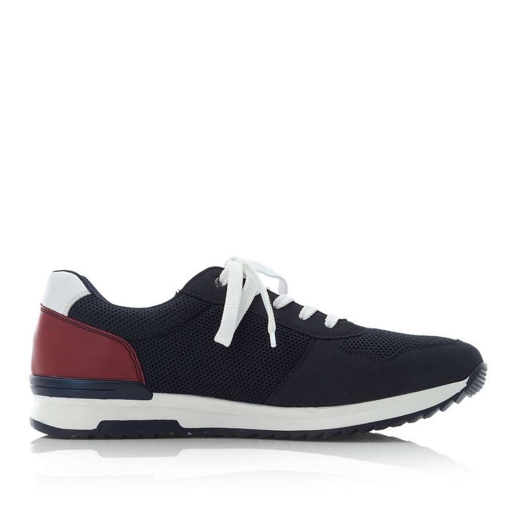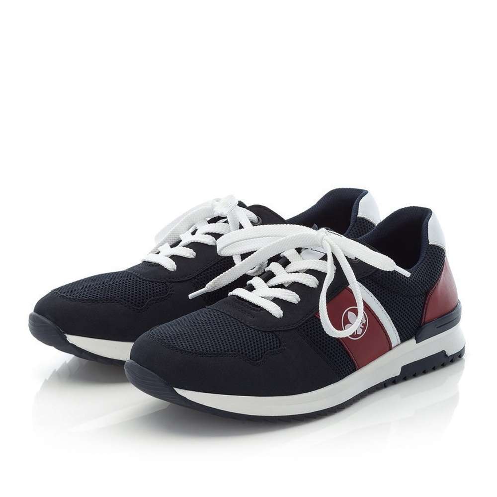 Kvalitní modrý svršek je kontrastně ozdoben bílými a červenými částmi a šněrováním pomocí tkaniček si obuv dokonale přizpůsobíte dle požadavků.