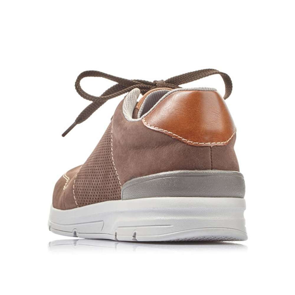 Kožený hnědý svršek je ozdobený prošíváním, které na obuvi vytváří jemné linie a všitou kontrastní částí na patě. Snadné nazouvání a bezvadné přizpůsobení obuvi přímo na Vaši nohu zajistí šněrování.