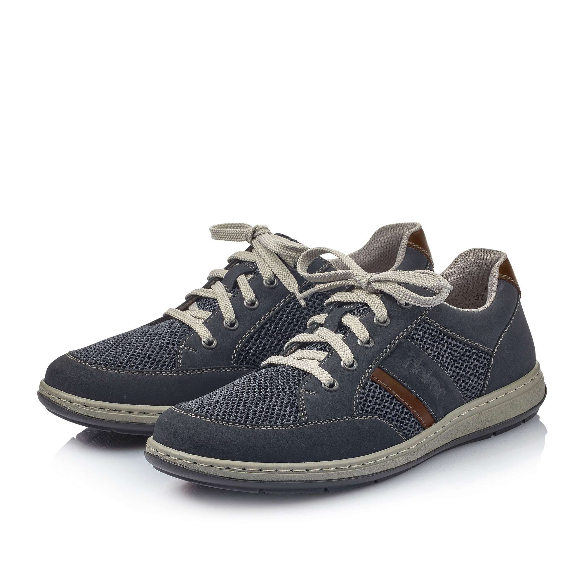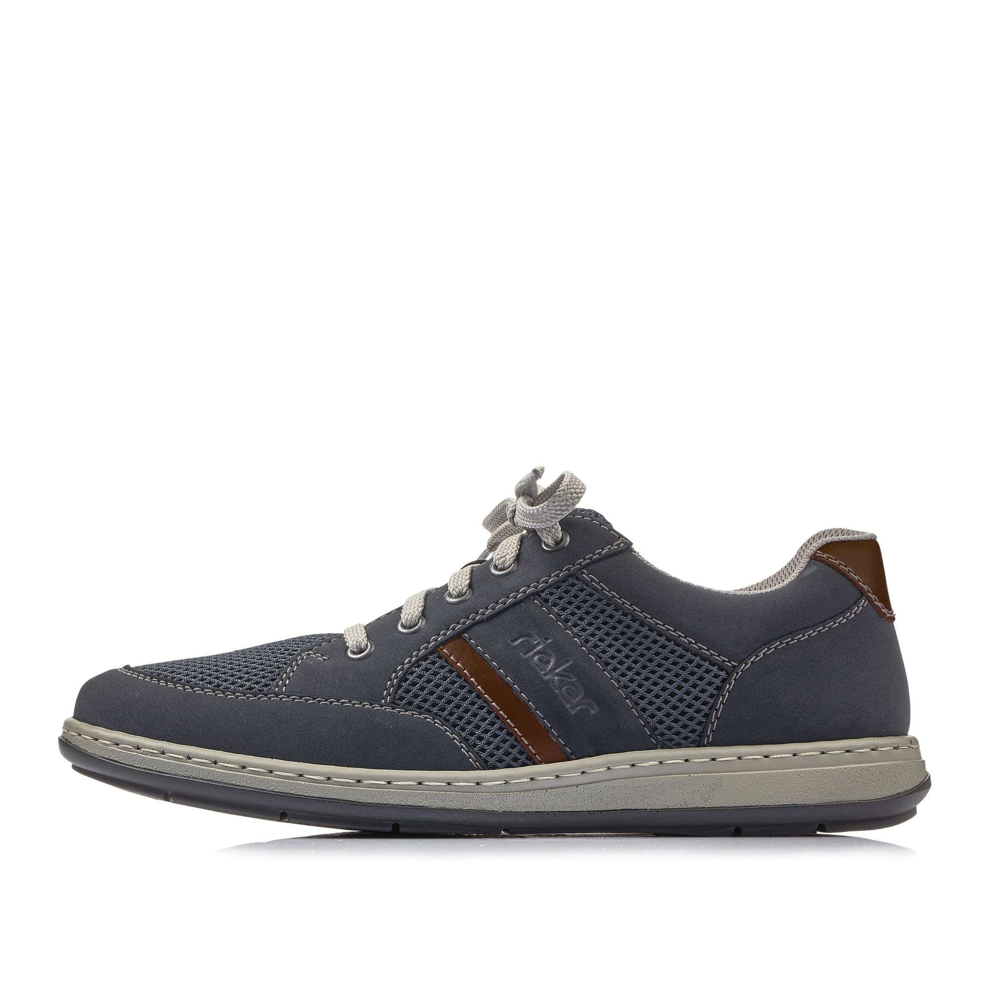 Tyto pánské polobotky značky RIEKER mají sportovnější vzhled. Hladké části svršku se prolínají s částmi z textilní síťoviny, díky které bude vzduch v obuvi příjemně cirkulovat. Snadné nazouvání a přizpůsobení obuvi dle Vašich požadavků zajistí šněrování kontrastními tkaničkami. Kvalitní měkká stélka má šíři H a je pro Vaše pohodlí vyjímatelná. Nízká podešev je se svrškem spojena šitím, což je pro tuto značku typické. Procházky, cestu do práce nebo městem již nebudete chtít absolvovat bez těchto bot.