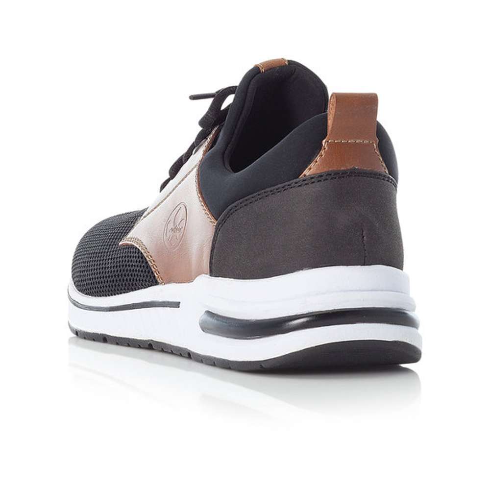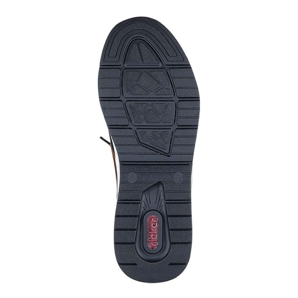 Pánské tenisky značky RIEKER jsou zde přímo pro Vás. Kombinovaný svršek s jemnou perforací v přední části je dozdoben logem značky RIEKER na vnější straně obuvi. Měkká vyjímatelná stélka a podešev vybavená technologií Antistresszajistí komfort při chůzi. Obuv se díky šněrování a pružnému materiálu kolem kotníku skvěle přizpůsobí Vašim nohám. Tyto botky se hodí na pochůzky po městě i na cestu do práce. Technologie: Antistress – podešev je díky této technologii lehká, flexibilní, absorbuje nárazy při došlapu asnadno se přizpůsobí každé noze.