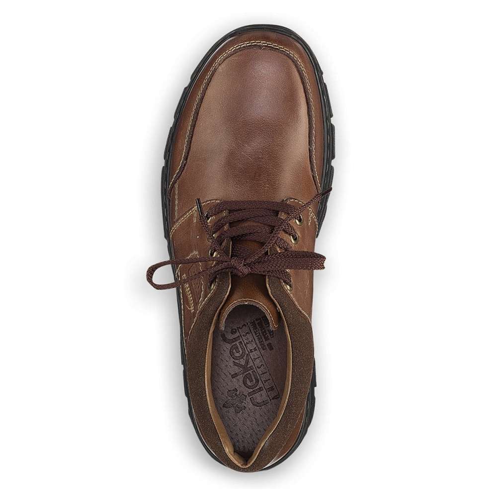 Tato pánská kožená bota značky Rieker dodá Vašemu outfitu tu správnou jiskru. Svršek je z hladkého materiálu, doplněn o jemné prošívání. Šněrování usnadňuje nazouvání a nohu si můžete zpevnit tak, jak je Vám příjemné. Tyto boty můžete vytáhnout buďto do města, nebo do práce.