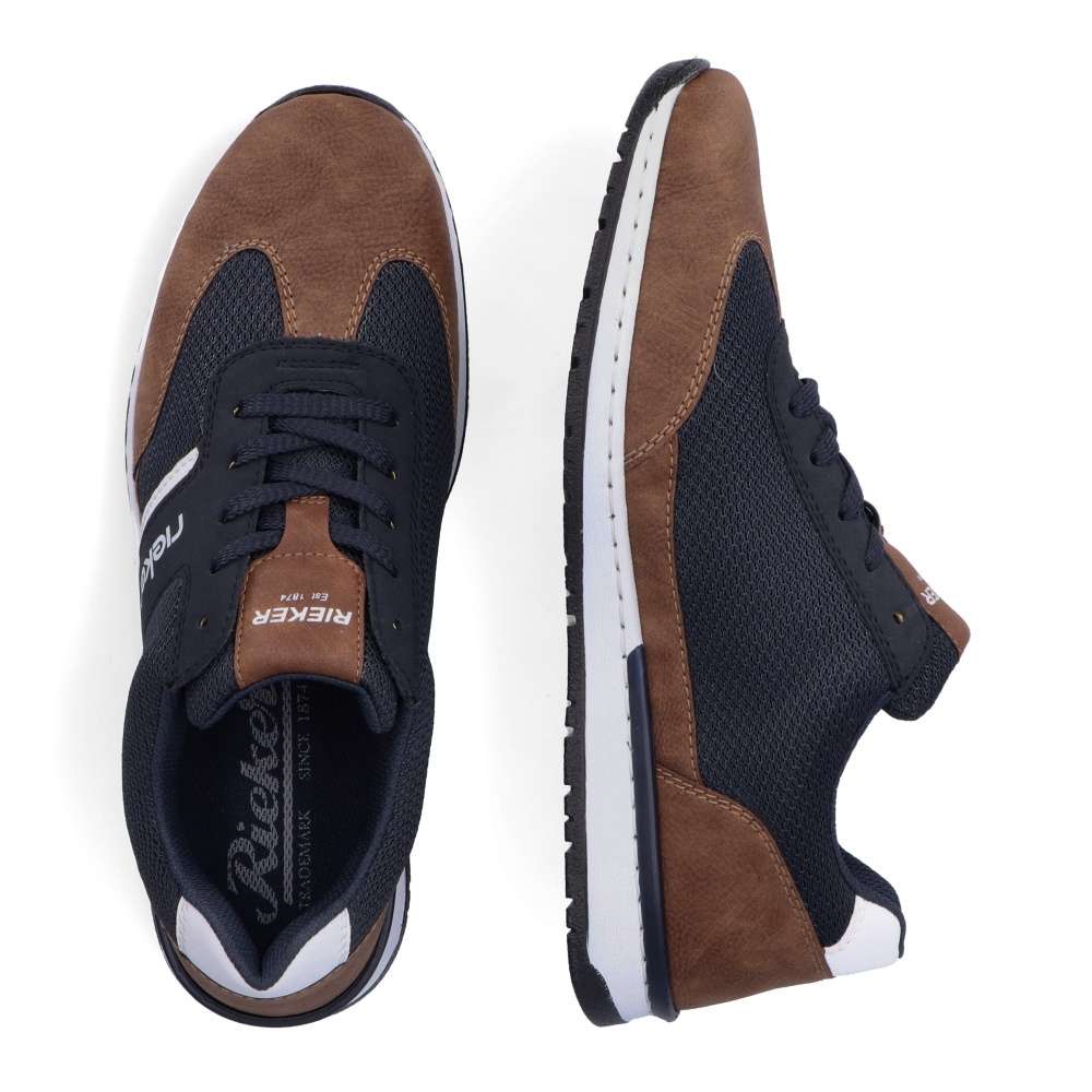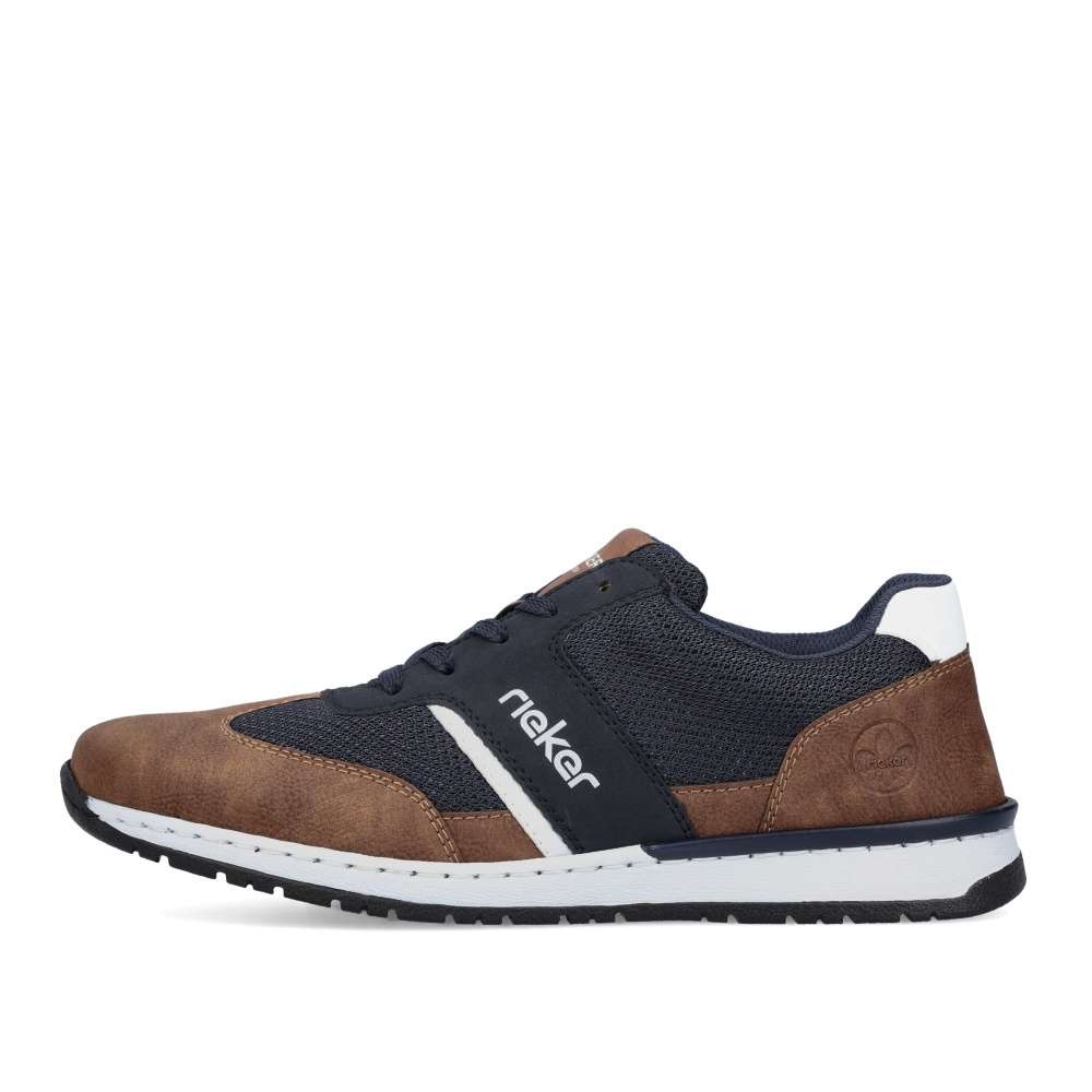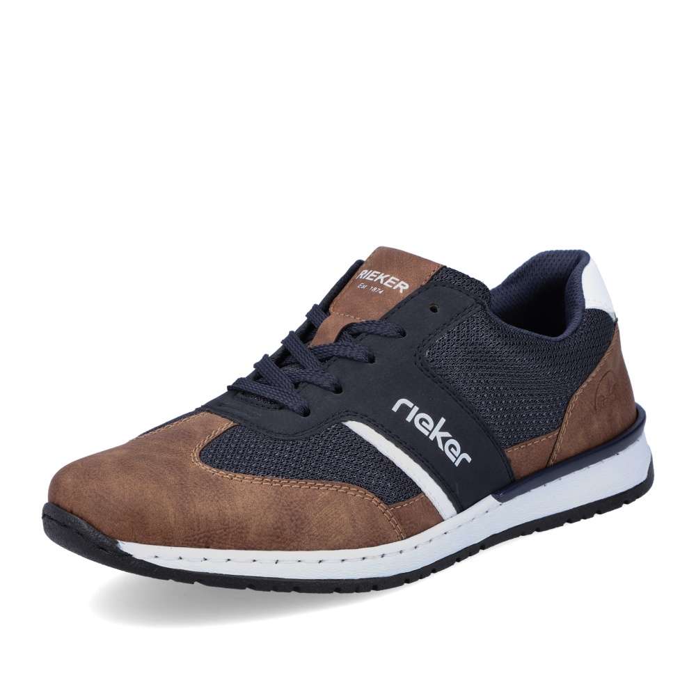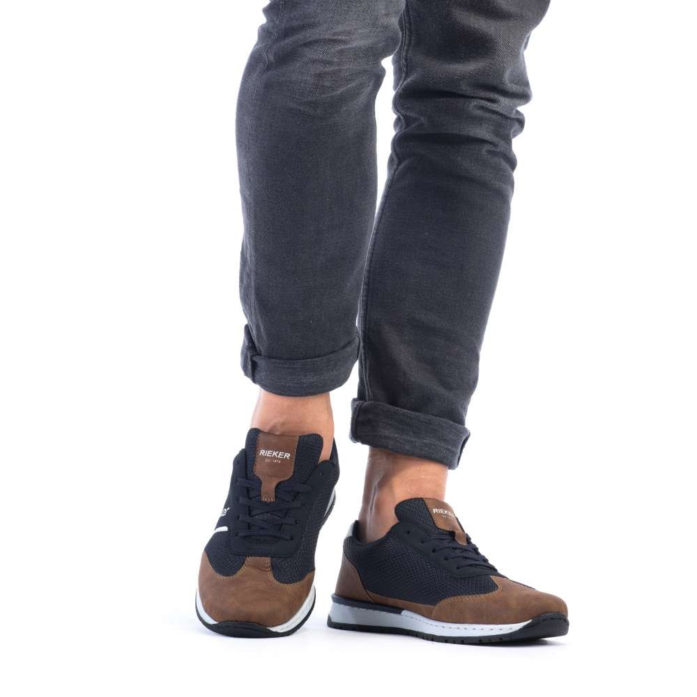 Detailní informace Pánské tenisky značky RIEKER Vás zaujmou svým provedením. Kombinovaný svršek s jemnou perforací zajišťuje obuvi skvělou prodyšnost. Měkká stélka a podešev vybavená technologií Antistress se postará o pohodlí na každém kroku. Pro snadné obutí poslouží šněrování tkaničkami. Tyto tenisky jsou správnou volbou pro každodenní cestu do práce i do města.