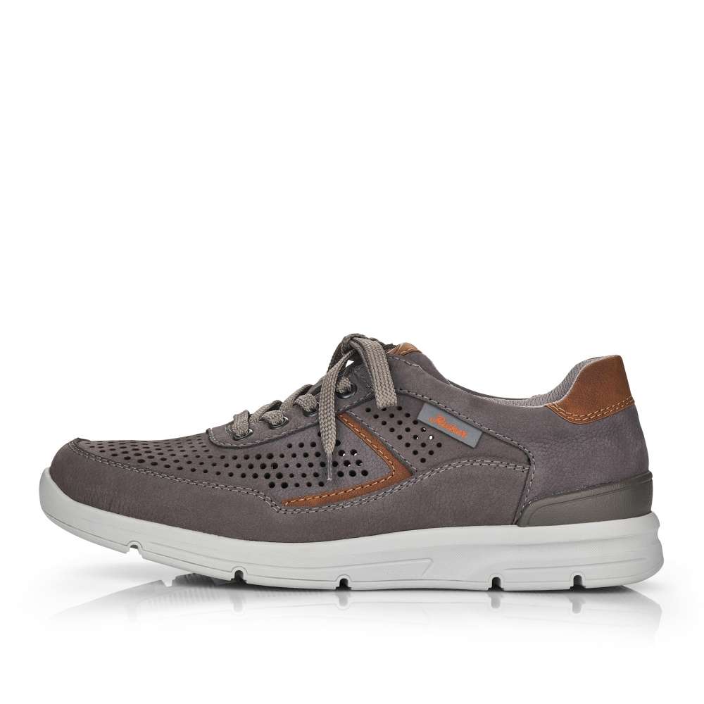 Pánské polobotky značky RIEKER musíte mít. Kožený svršek je zdoben prošíváním a jemnou perforací, která zajistí prodyšnost obuvi. Pro pohodlné obutí poslouží šněrování tkaničkami. Měkká stélka a pohodlná podešev vybavená technologií Antistress zajistí maximální komfort při chůzi. Tento model se skvěle hodí k outfitům do práce i do města.