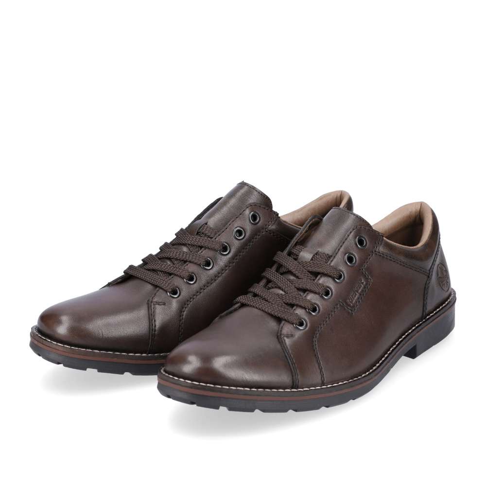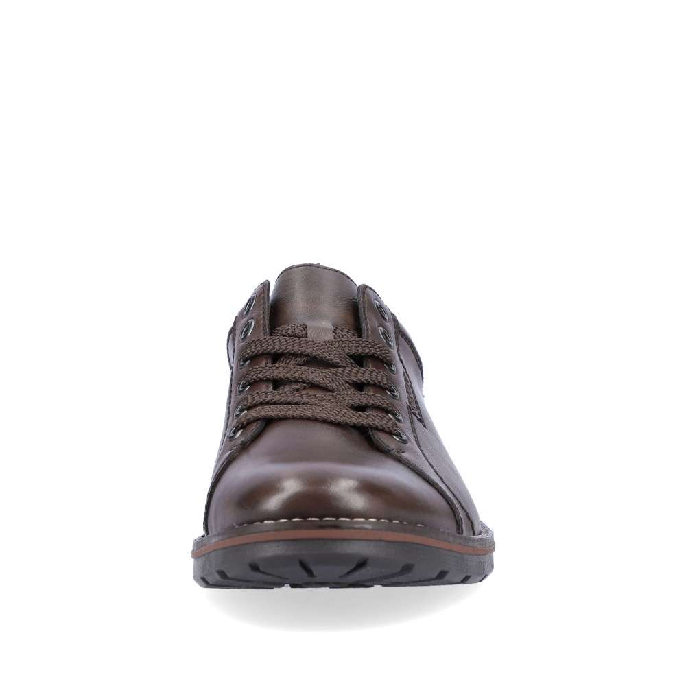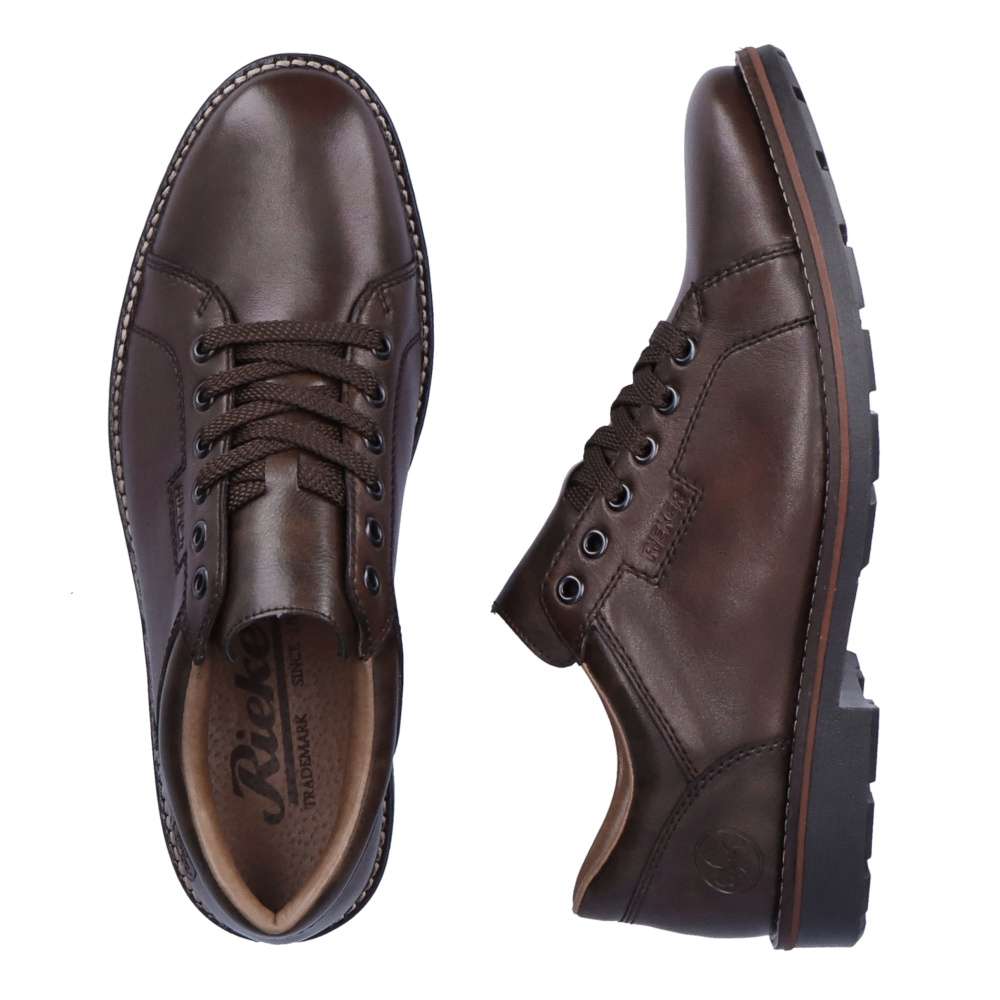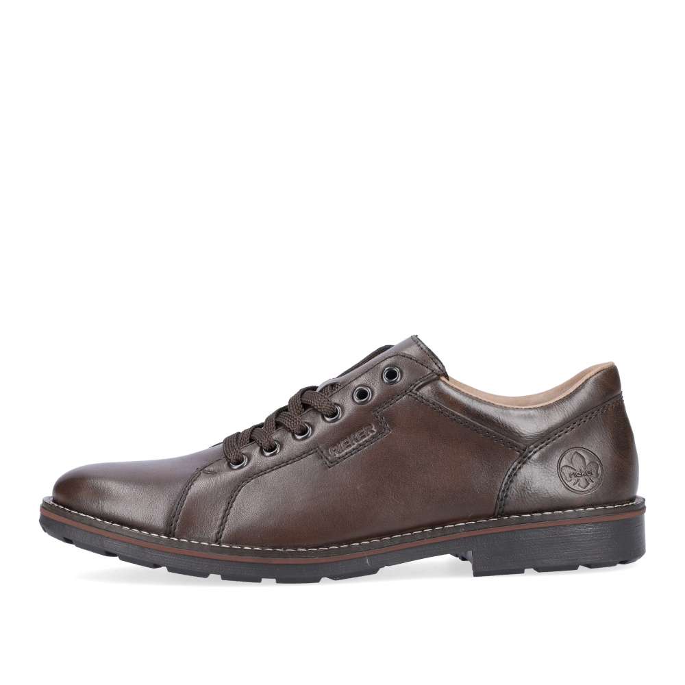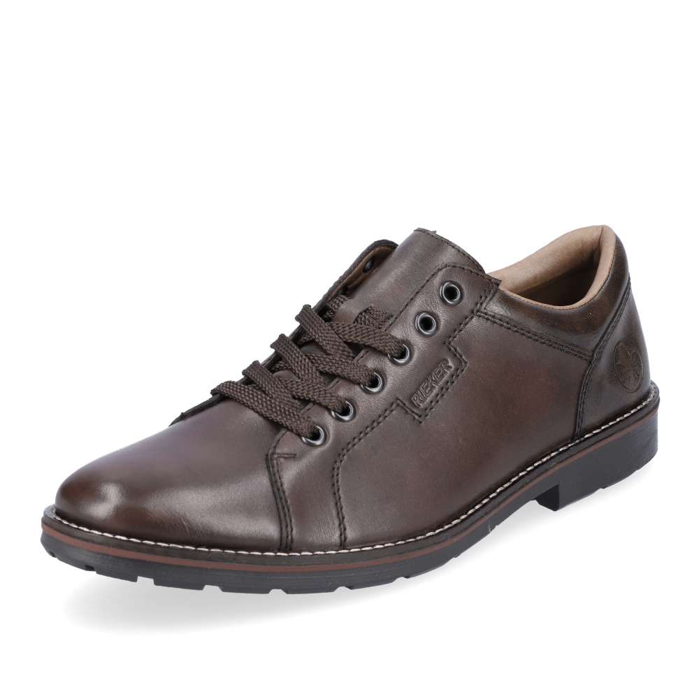 Detailní informace Tato pánská obuv od značky RIEKER je vyrobená převážně z přírodní usně v hnědé barvě a lehce dozdobená nenápadným dvojitým prošitím a lemovanou podešví. Ke snadnému nazutí poslouží tkaničky na šněrování, díky kterým si boty lehce přizpůsobíte na své chodidlo. Pohodlí na každém kroku zajistí měkká stélka. Tento lehce kombinovatelný kousek doladí outfit každého muže.