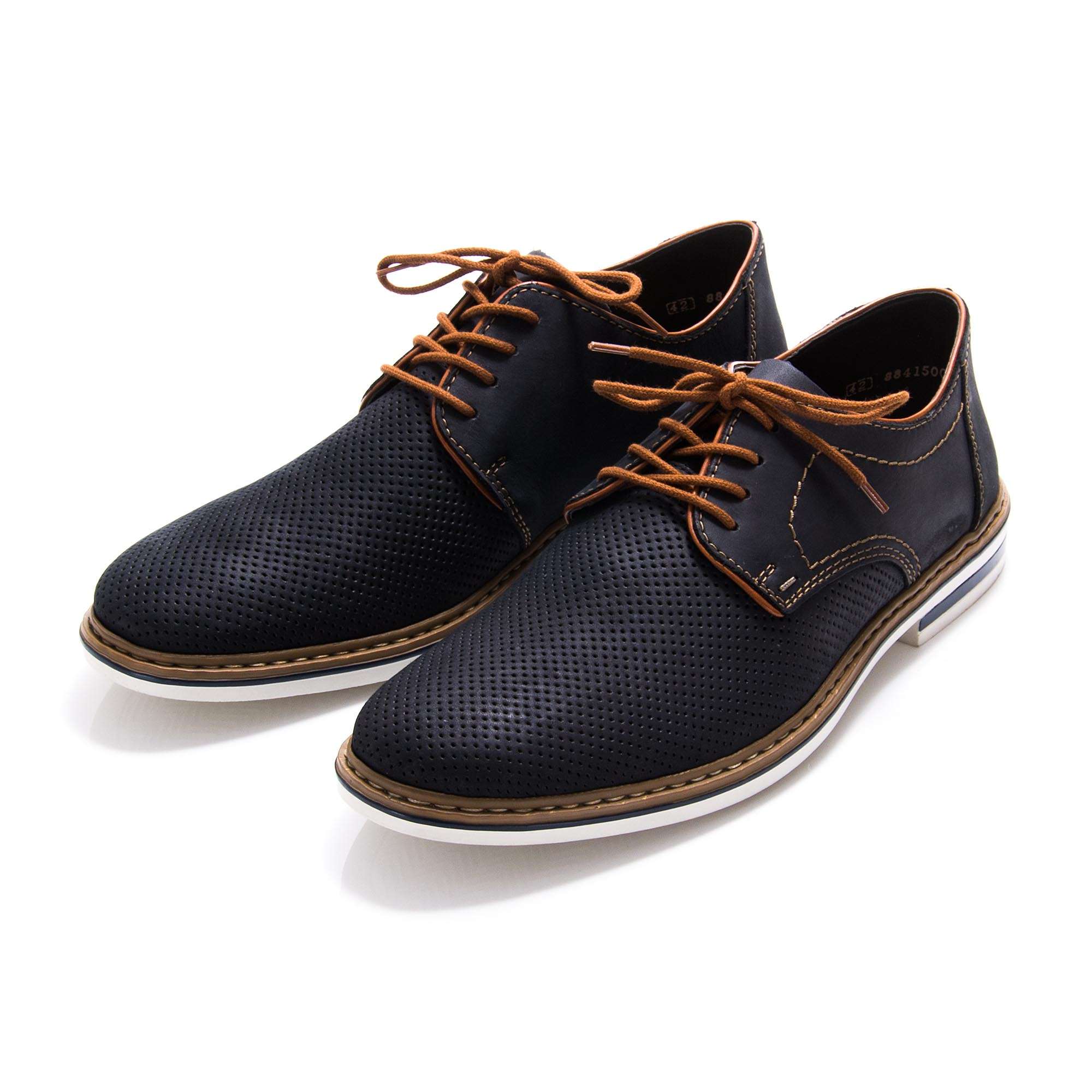 Nádherné kožené polobotky v modré barvě jsou zdobené jemnou perforací v oblasti nártu a špice, obšitím podešve, kontrastním šněrováním a šitím. Tkaničkami si obuv upravíte přímo k vlastní noze. Tento model oceníte při cestě do práce, ale i při běžných pochůzkách.