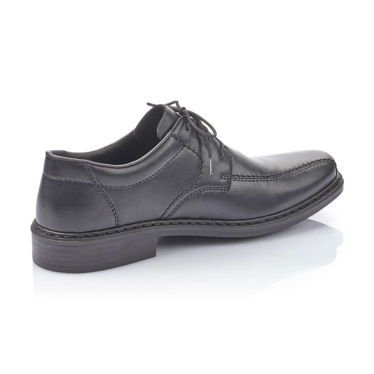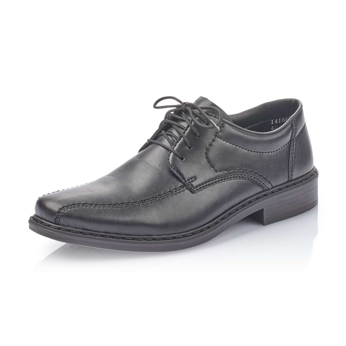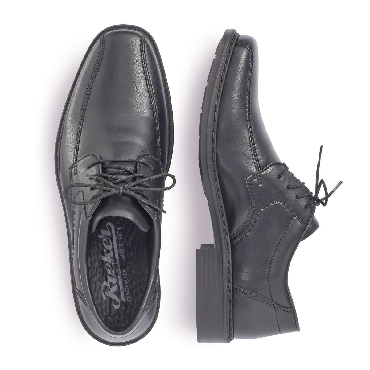 Společenská pánská obuv značky Rieker v černém provedení Vás zaujme svým prošitím a derbovým střihem. Je zkrátka pro moderního muže, který má rád jednoduché elegantní provedení. Šněrováním si obuv přizpůsobíte přímo na Vaši nohu. Tato obuv je díky svému vzhledu vhodná jak k obleku, tak i k obyčejným riflím.