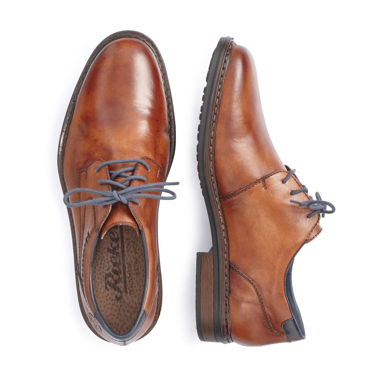 Módní hnědá polobotka s modrými tkaničkami, značky Rieker.