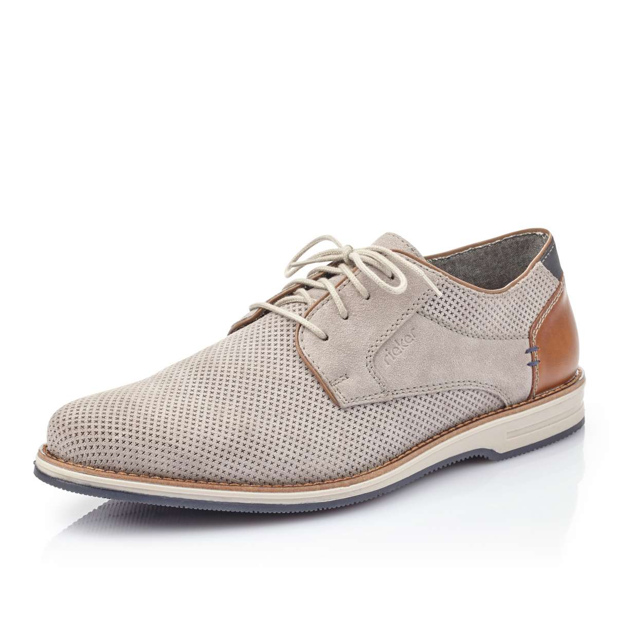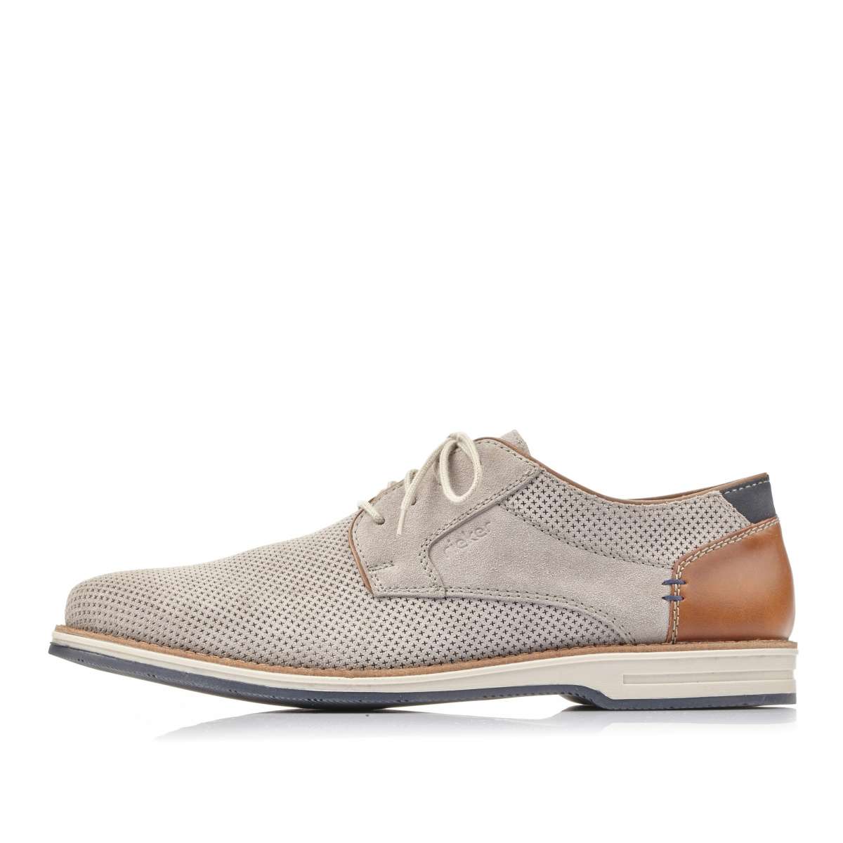Šněrovací pánské polobotky značky RIEKER, které se díky povrchu s perforací skvěle hodí na každodenní nošení. Svršek z broušené kůže má za patou má všitý hnědý hladký kus, který designově boty doladí. Tyto boty můžeme nosit jak do města, tak do kanceláře.