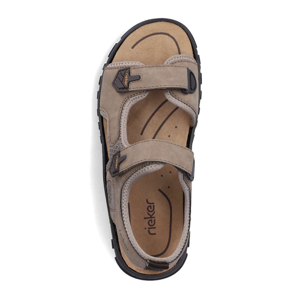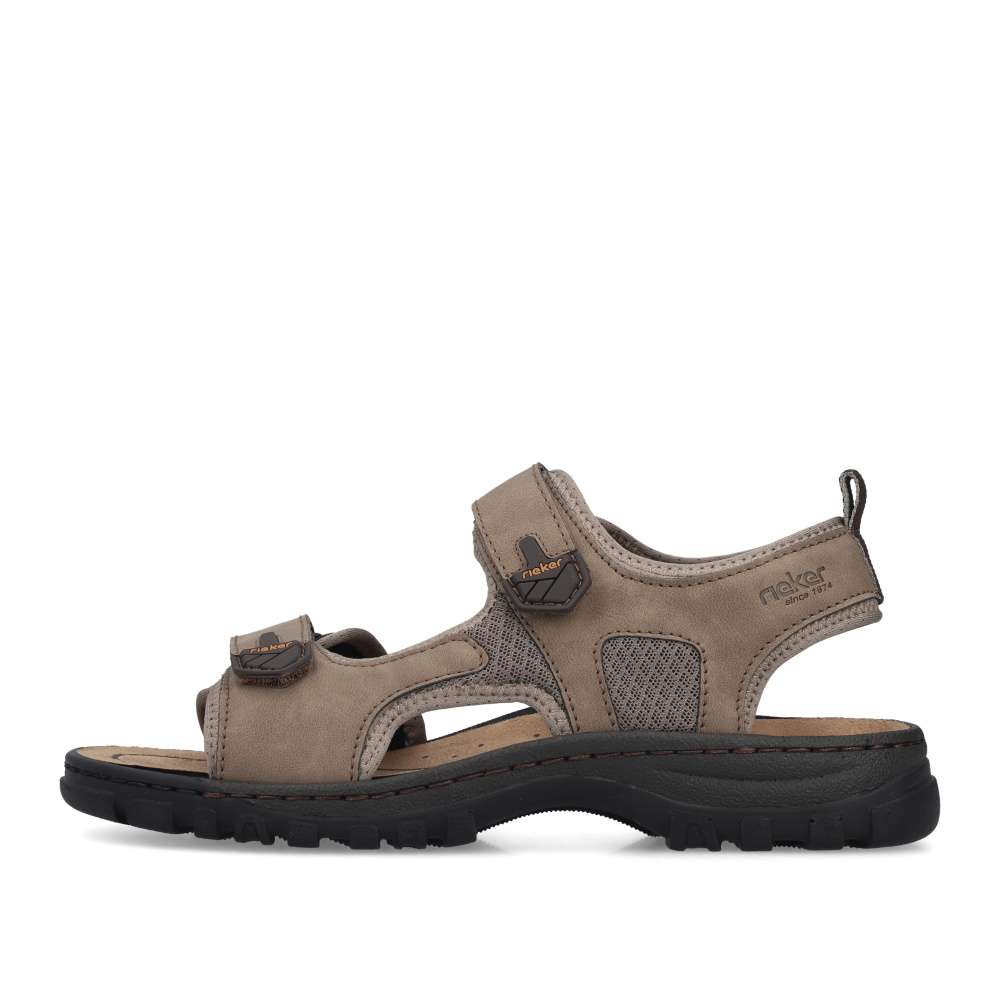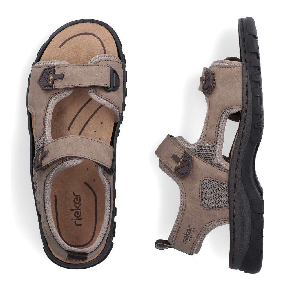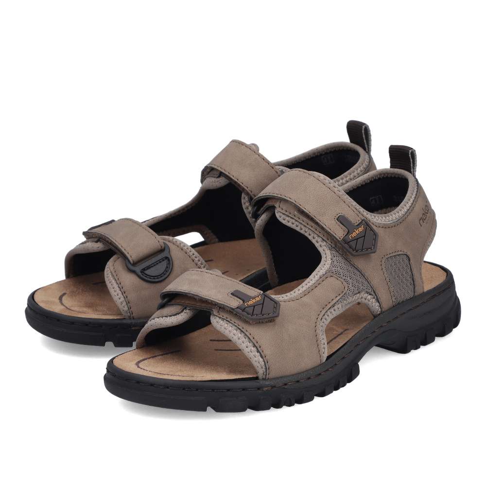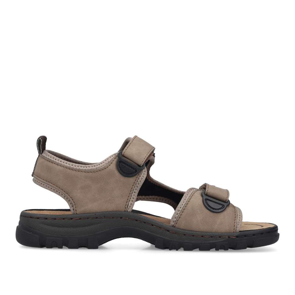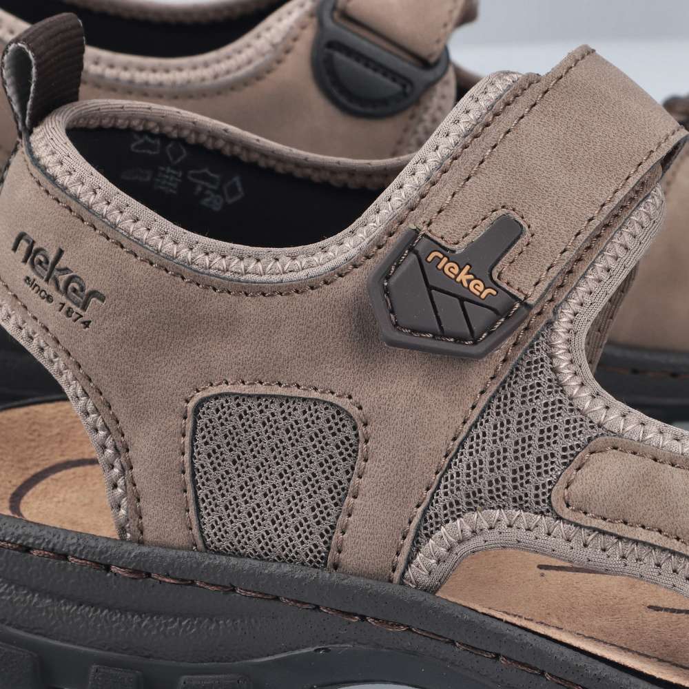 Tento sportovně laděný model sandálů RIEKER představuje ideální spojení pohodlí, funkčnosti a stylového designu – jednoduše kousek, který by neměl chybět v žádném pánském šatníku. Svršek v materiálové kombinaci odstínů světlé barvy působí moderně a zároveň univerzálně, takže se snadno kombinuje s jakýmkoli letním outfitem. Dekorativní prošívání a nápisy značky RIEKER dodávají obuvi dynamický, sportovní charakter, díky čemuž působí svěže a originálně. Praktické dva nastavitelné pásky na suchý zip umožňují přesné přizpůsobení obuvi tvaru chodidla a zaručují pevné, ale zároveň pohodlné usazení nohy. Tento detail oceníte zejména při delších procházkách či aktivních dnech, kdy se komfort stává prioritou. O vaše pohodlí se stará komfortní stélka, která poskytuje oporu při chůzi. Flexibilní podešev s technologií tlumení nárazů zajistí plynulý krok a zároveň chrání vaše klouby i při delším nošení. Tyto sandály jsou jako stvořené pro všestranné využití - skvěle se hodí na procházky městem, dovolené i výlety do přírody.