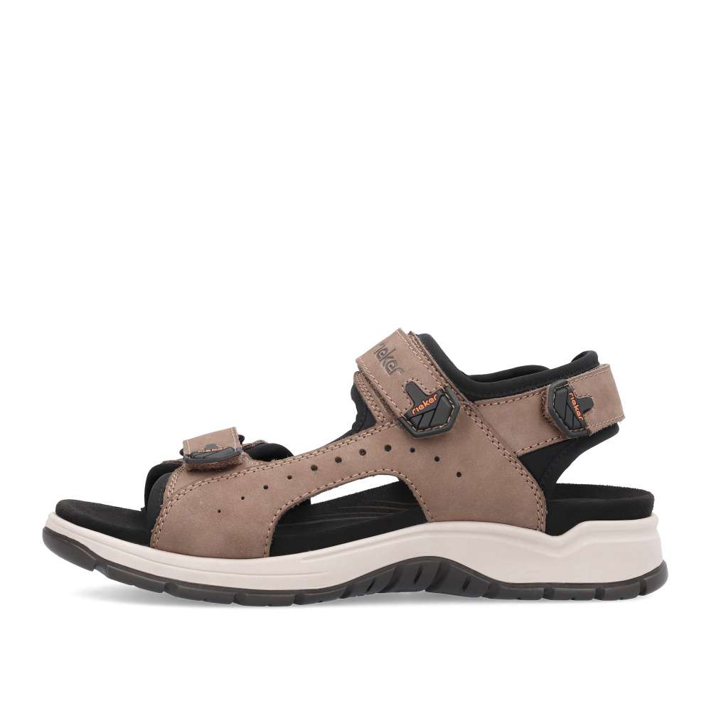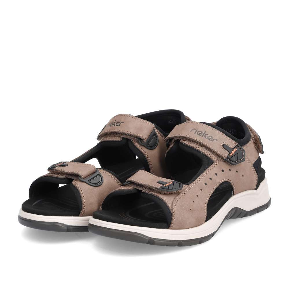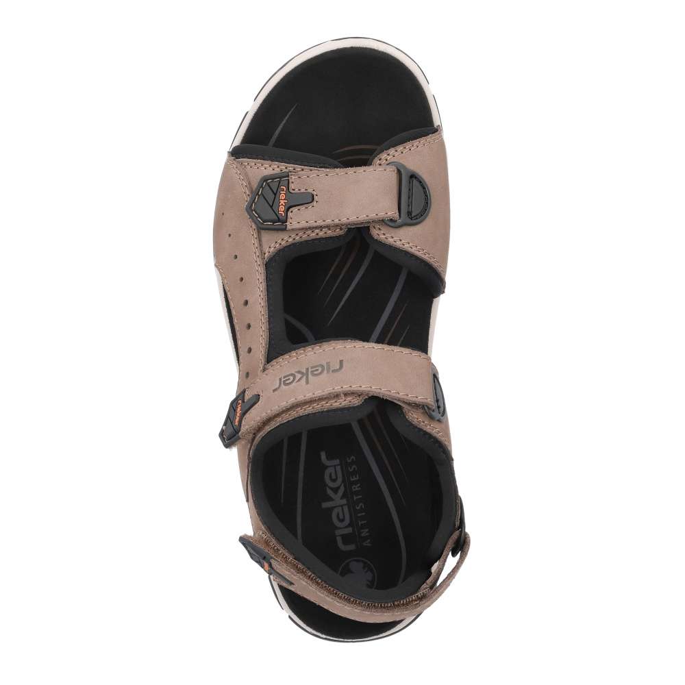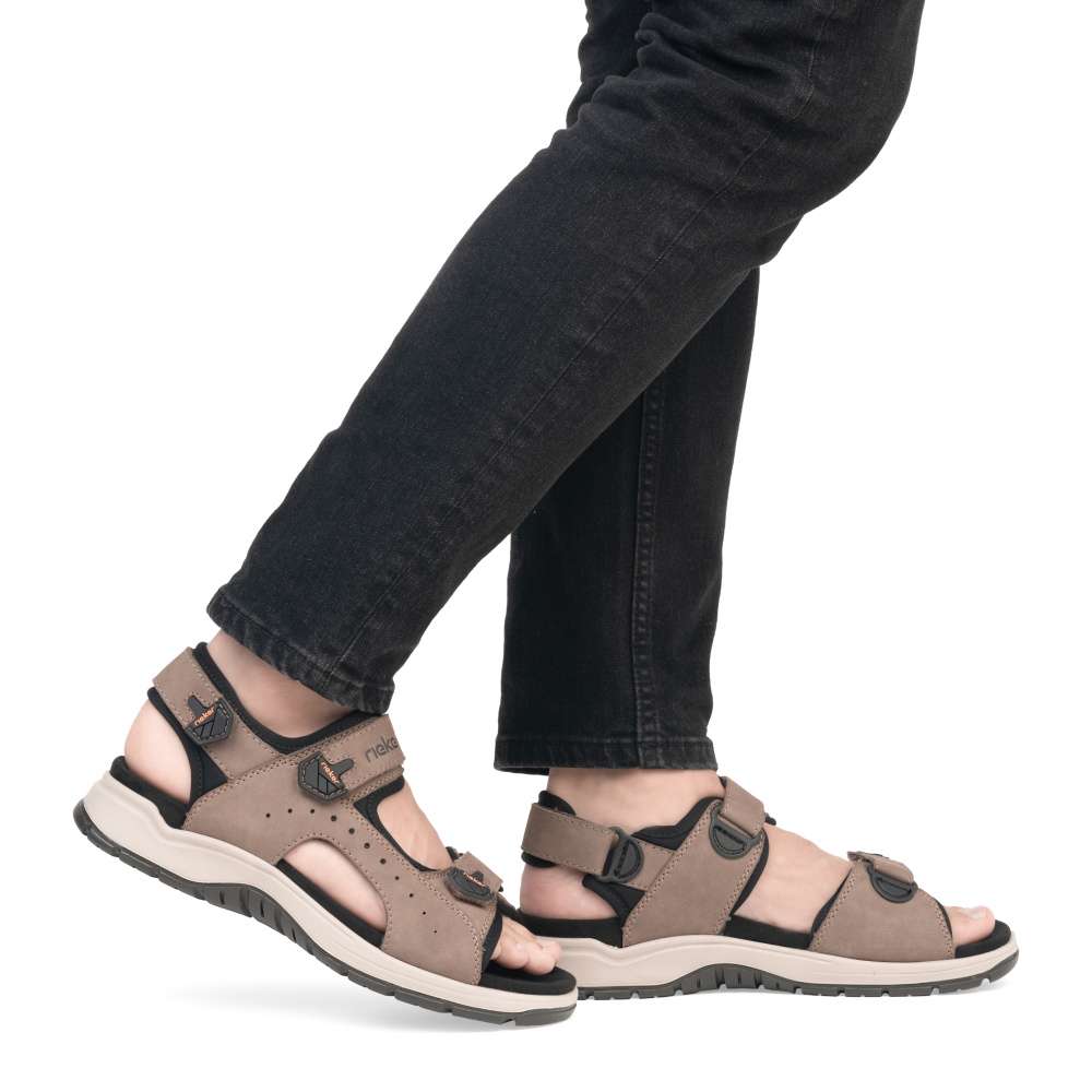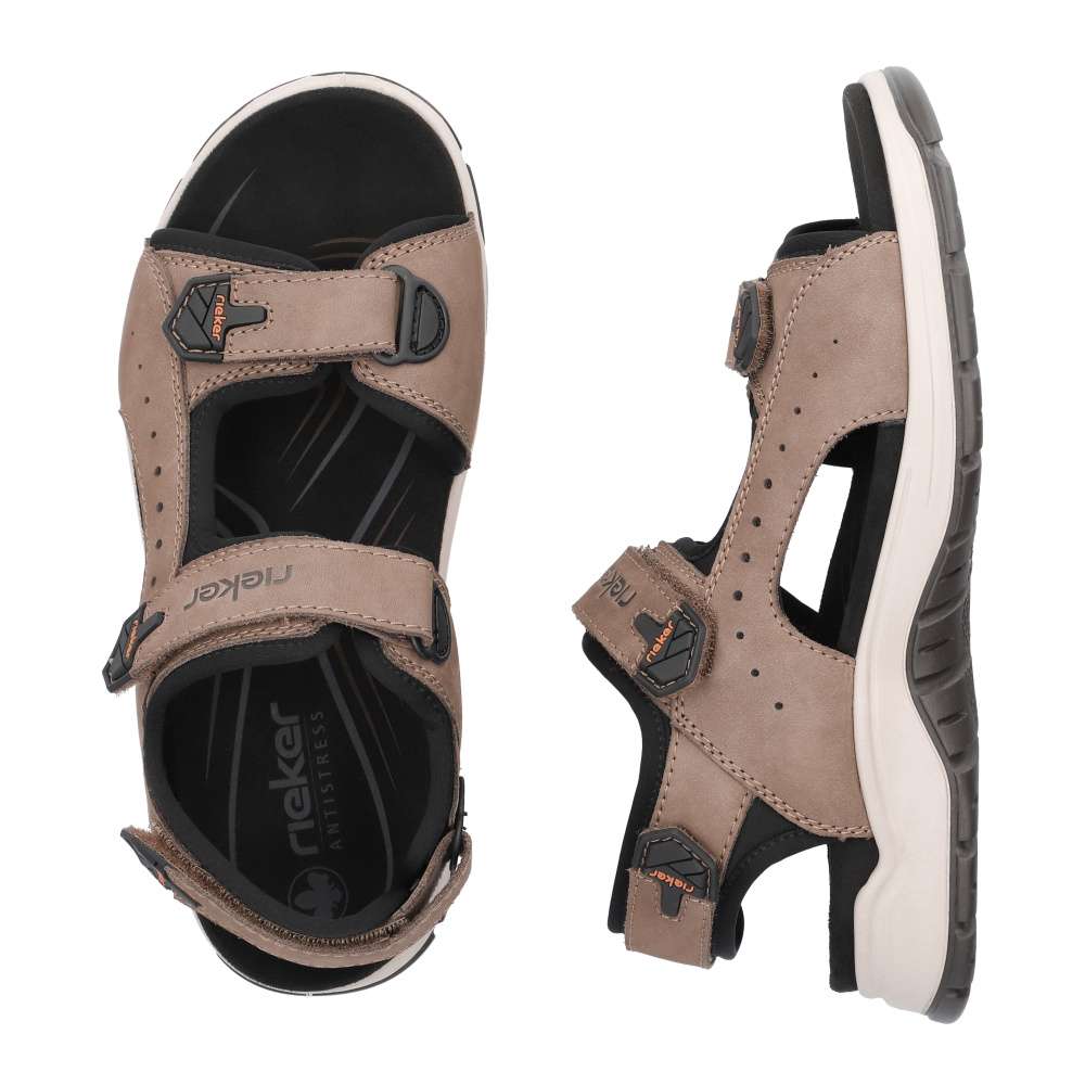 Zažijte letní pohodlí s pánskými sandály značky RIEKER! S hnědým svrškem a černými akcenty vytvářejí sandály stylový vzhled a budou ideální volbou pro každodenní nošení. Pásky jsou opatřeny praktickým suchým zipem, což umožňuje dokonalé přizpůsobení potřebám vaší nohy. Příjemná stélka a podešev tlumící nárazy zajišťují maximální komfort při každém kroku. Vychutnejte si léto ve stylu a pohodlí. Technologie: Antistress – díky čtyřem antistresovým vlastnostem – lehkosti, pružnosti, prostornosti a vynikající absorpci nárazů – vám boty RIEKER nabídnou komfortnější chůzi.