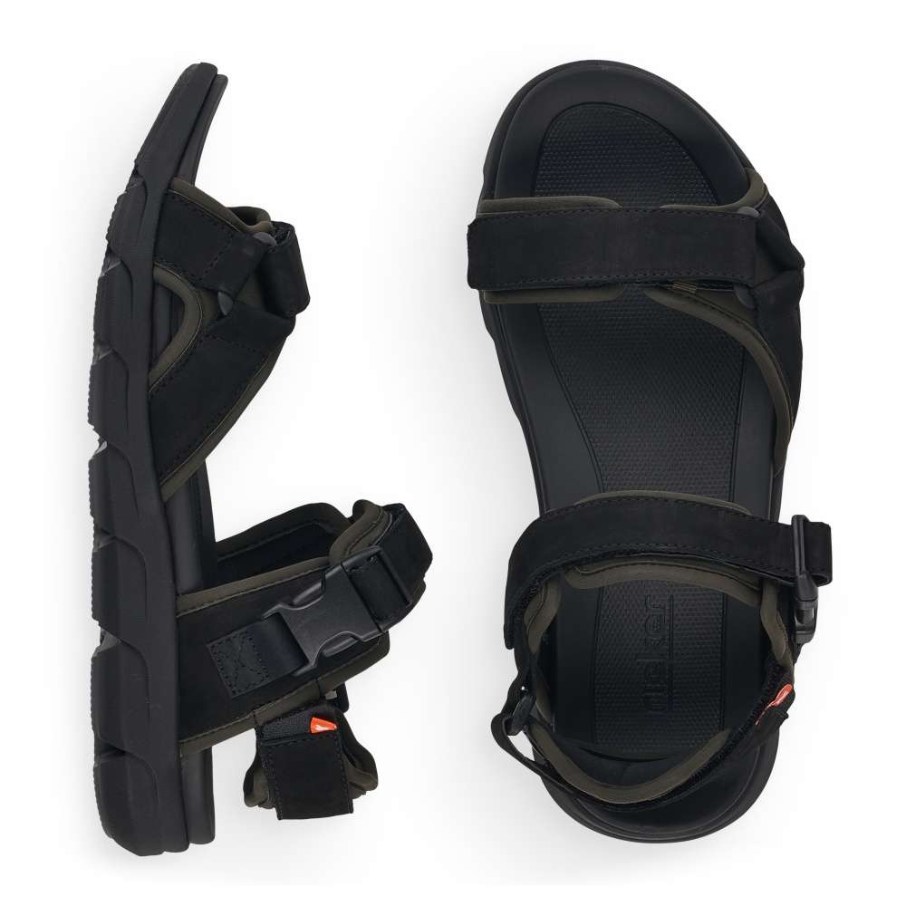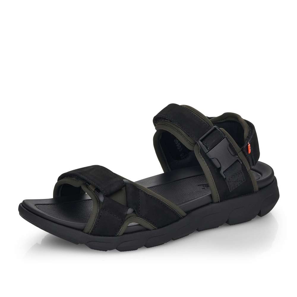 Rieker Revolution je nová řada moderní sportovní obuvi s obrovským důrazem na komfort a pohodlí i při celodenním nošení. Pánské sandále značky RIEKER jsou ideálním obutím do letních dnů. Strukturovaný syntetický a textilní materiál, dodává botě styl. Pásky na suchý zip upevní chodidlo přesně tak, jak budete potřebovat. Pásky jsou zakončeny ozdobnou koncovkou značky RIEKER. Hodí se nejen na procházky přírodou, ale i do města nebo na dovolenou. Technologie: Antistress – podešev je díky této technologii lehká, flexibilní, absorbuje nárazy při došlapu a snadno se přizpůsobí každé noze.