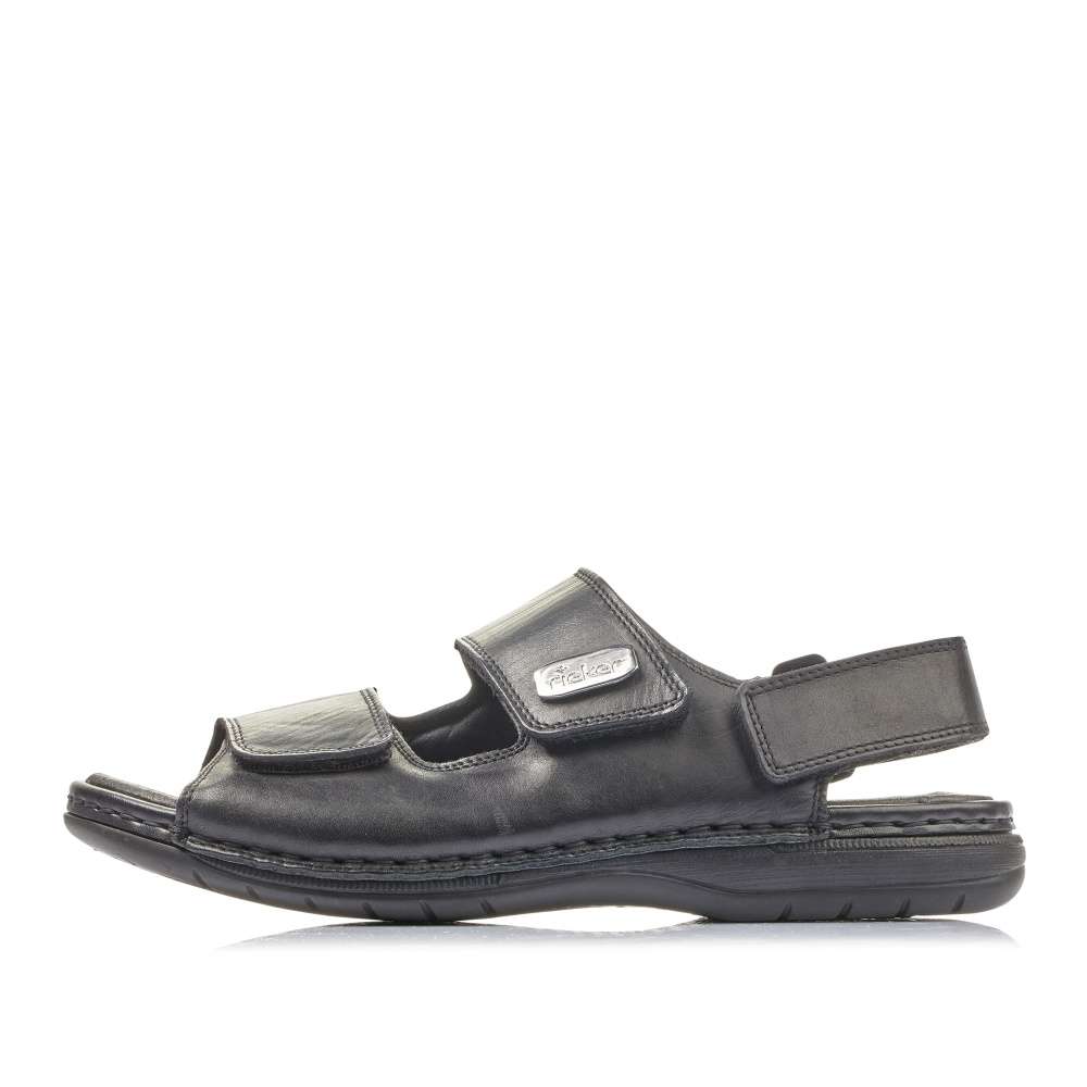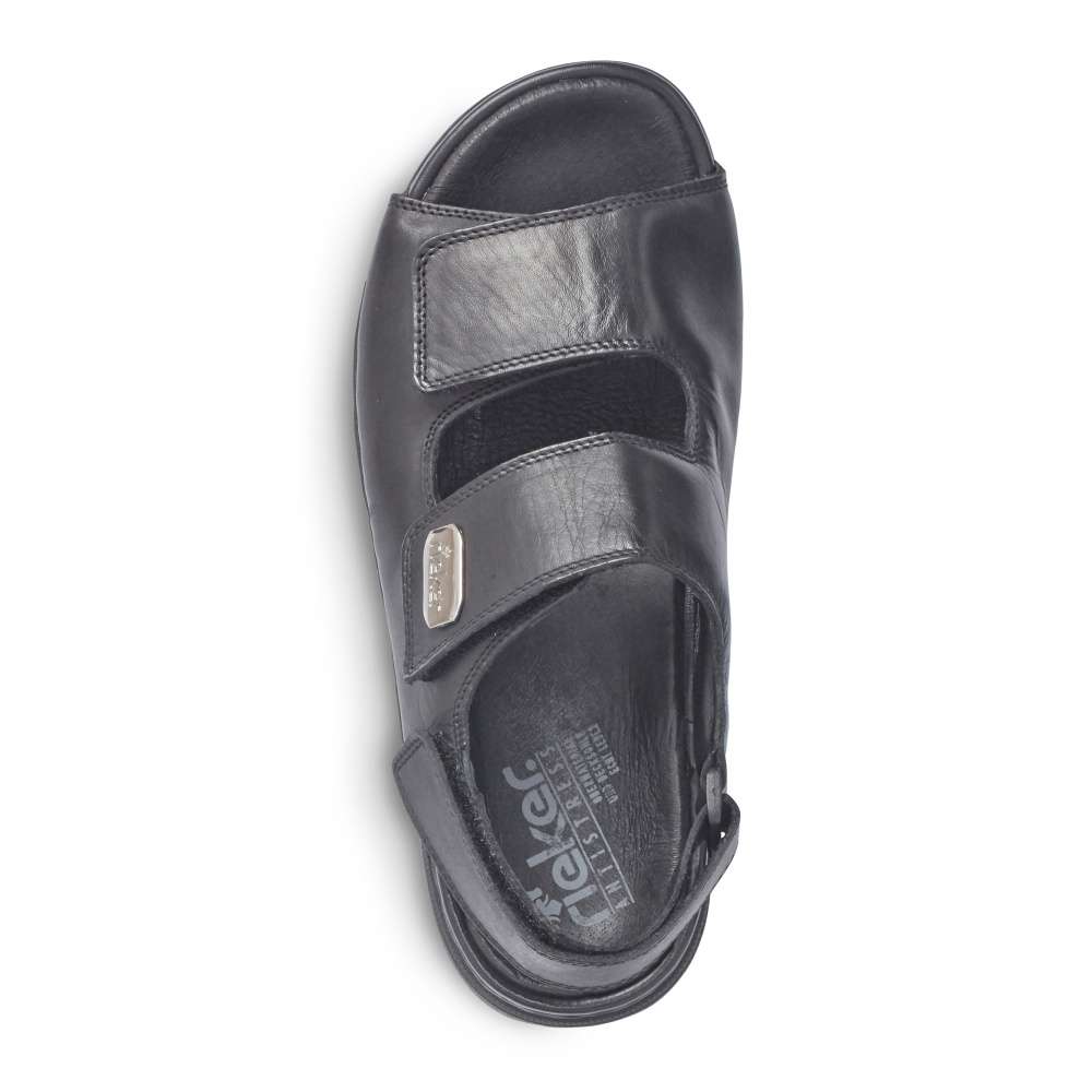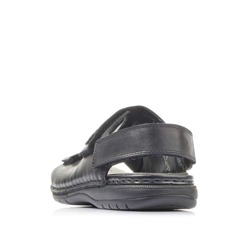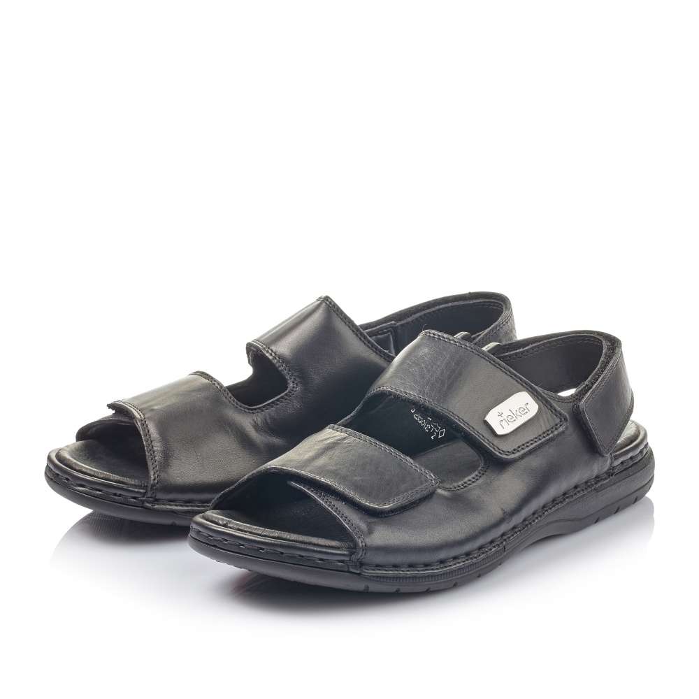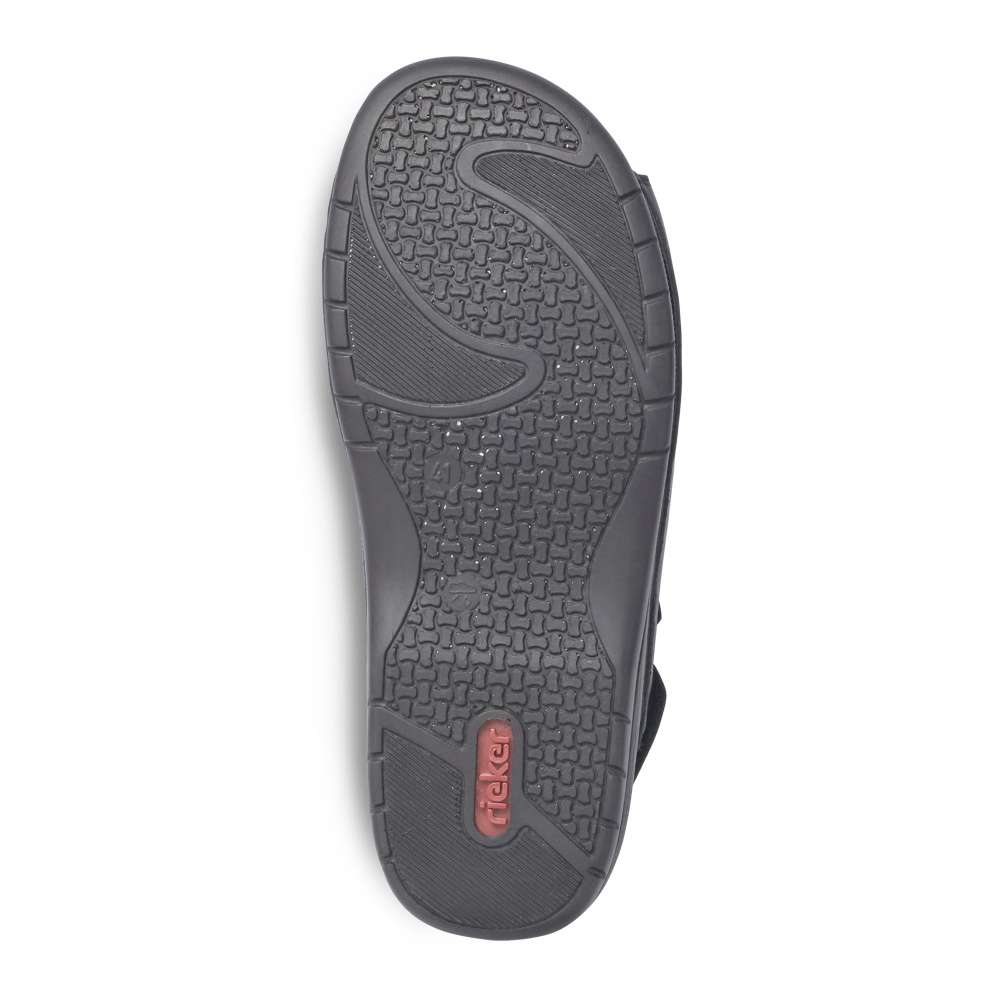 Jednoduchá elegance těchto sandálů značky RIEKER Vás upoutá na první pohled. Hladký kožený svršek černé barvy je zdobný pouze jemným prošíváním a stříbrnou aplikací s názvem značky. Široké pásky jak přes nárt, tak i kolem paty jsou snadno nastavitelné díky zapínání na suchý zip. Pohodlná měkká stélka společně s flexibilní podešví se postarají o maximální komfort na každém kroku. Je jedno zdali si je vezmete na cestu do práce či na posezení s přáteli, vždy je snadno sladíte s Vašimi outfity.
