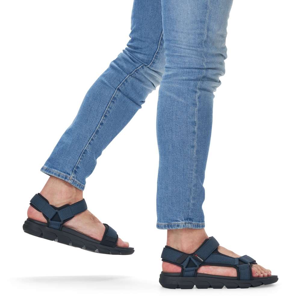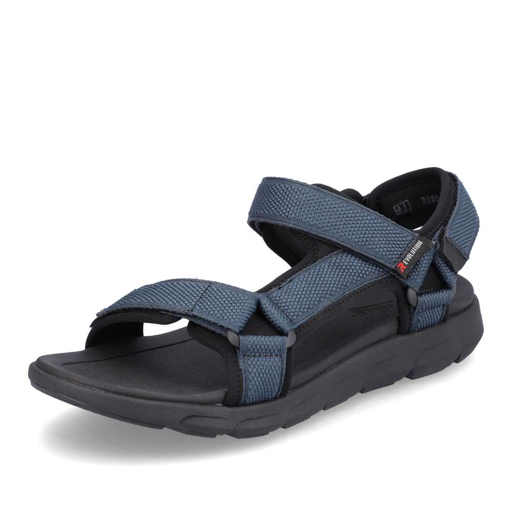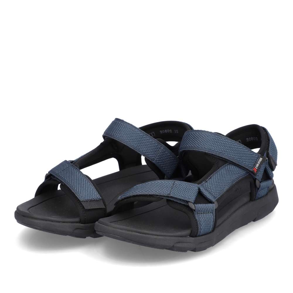 Rieker Revolution je nová řada moderní sportovní obuvi s obrovským důrazem na komfort a pohodlí i při celodenním nošení. Tyto pánské sandály značky RIEKER budou tou správnou volbou pro horké letní dny. Strukturovaný syntetický a textilní materiál, dodává botě styl. Vaši pozornost si získají svým dokonalým zpracováním a dobrou fixaci nohy pomocí suchých zipů, které jsou zakončeny ozdobnou koncovkou značky RIEKER. Díky jejich designu je můžete využít jak na volný čas, tak do práce. Technologie: Antistress – podešev je díky této technologii lehká, flexibilní, absorbuje nárazy při došlapu a snadno se přizpůsobí každé noze.