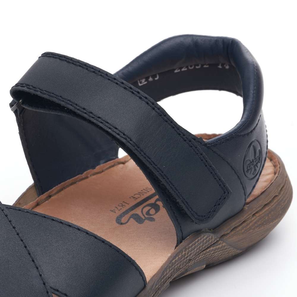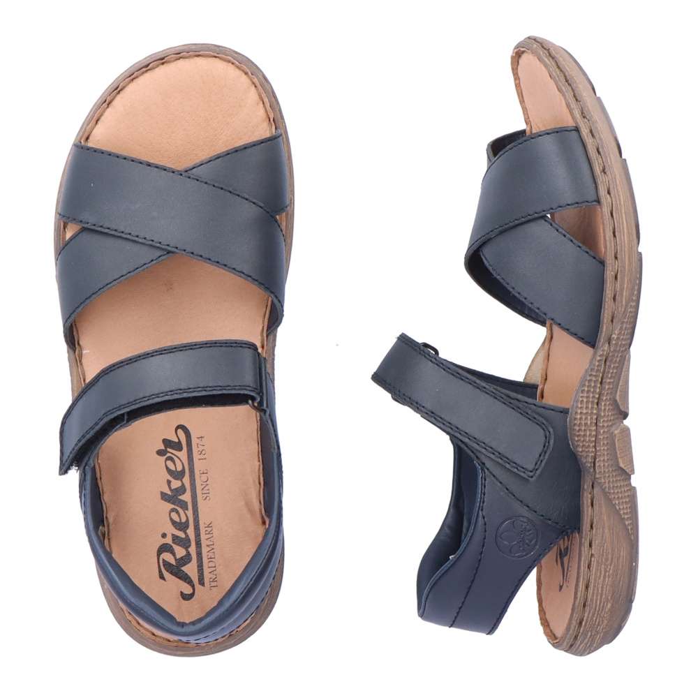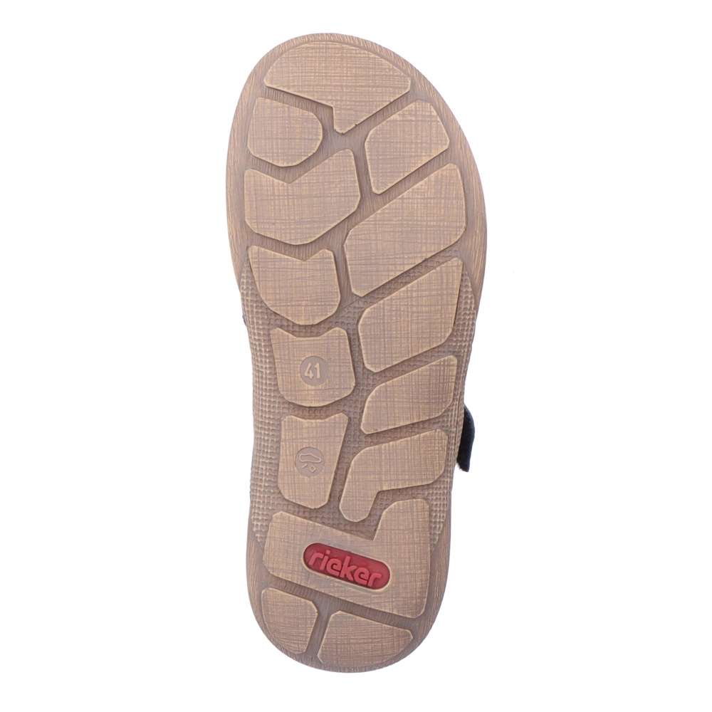 Tento model sandálů značky RIEKER bude tou správnou volbou na Vaše letní procházky. Pásky jsou vyrobeny z pravé hladké kůže a jsou na špičce jednoduše překříženy. Snadné nazouvání a přizpůsobení dle Vašich požadavků zajistí pásek přes nárt, který se zapíná na suchý zip. Měkká kožená stélka zajistí pohodlí na každém kroku a podešev svým designem podtrhuje vzhled obuvi. Tyto sandály se budou hodit k Vašim jak pracovním, tak volnočasovým outfitům.