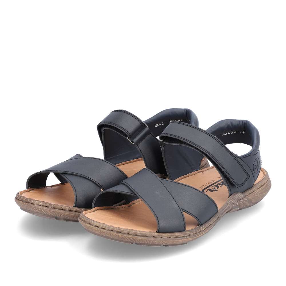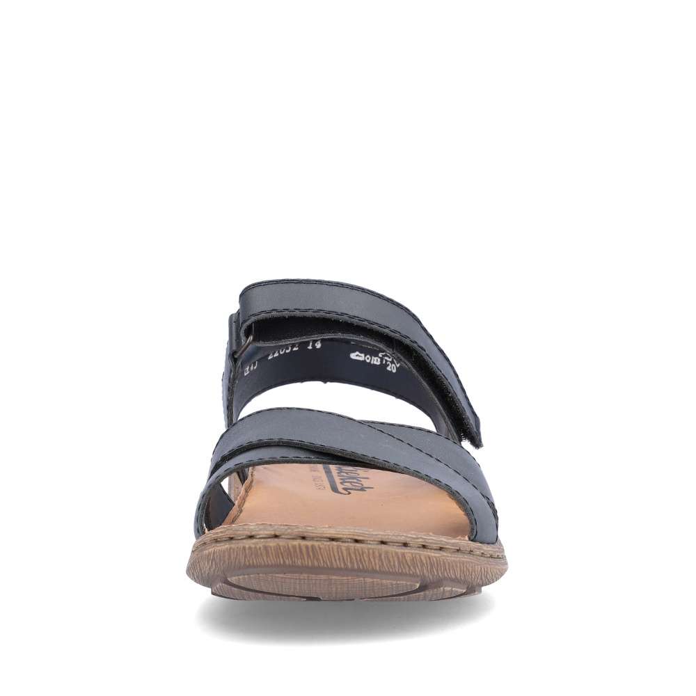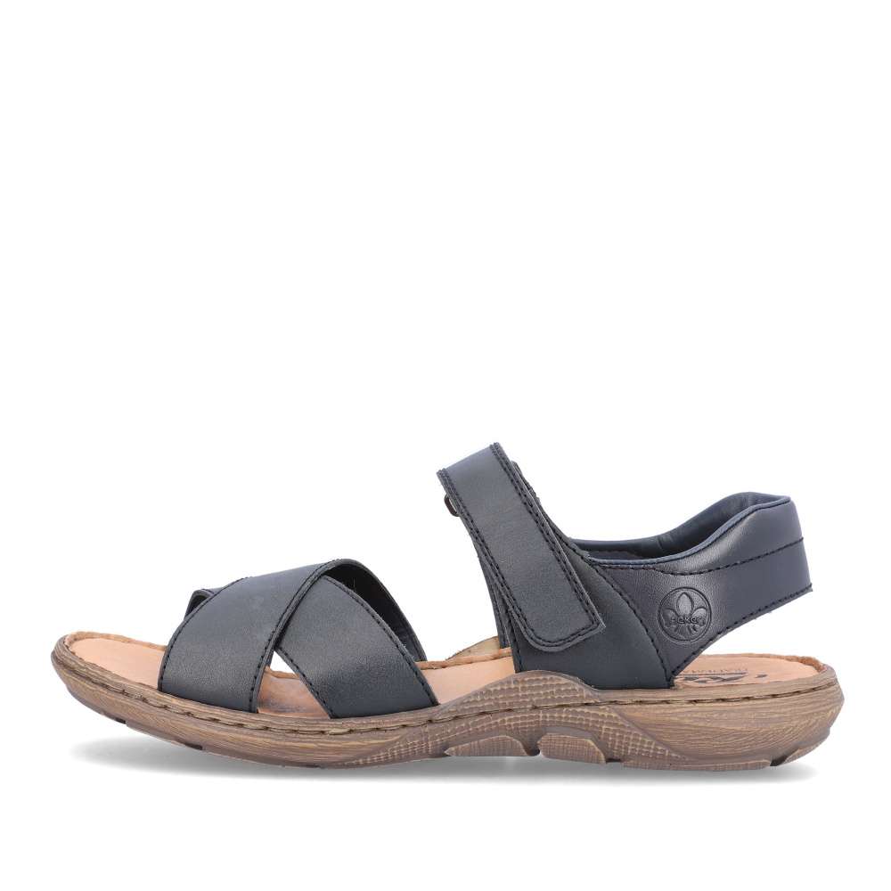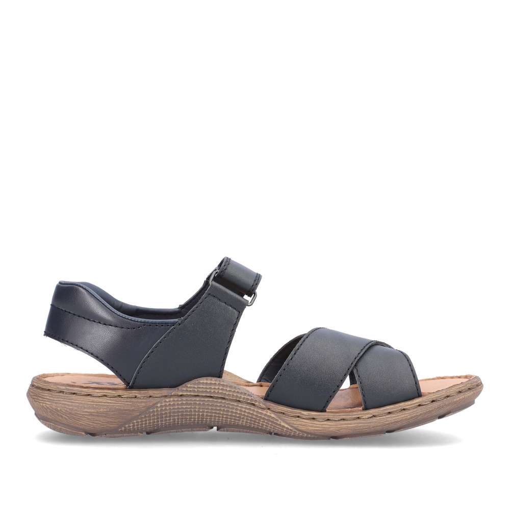Tento model sandálů značky RIEKER bude tou správnou volbou na Vaše letní procházky. Pásky jsou vyrobeny z pravé hladké kůže a jsou na špičce jednoduše překříženy. Snadné nazouvání a přizpůsobení dle Vašich požadavků zajistí pásek přes nárt, který se zapíná na suchý zip. Měkká kožená stélka zajistí pohodlí na každém kroku a podešev svým designem podtrhuje vzhled obuvi. Tyto sandály se budou hodit k Vašim jak pracovním, tak volnočasovým outfitům.
