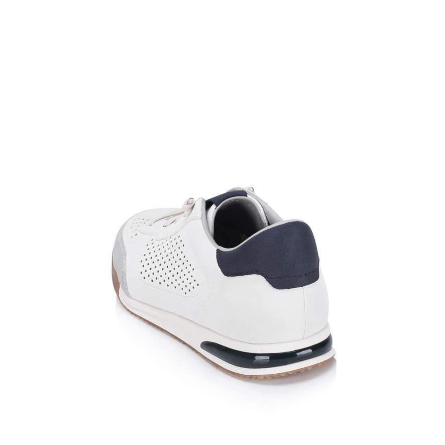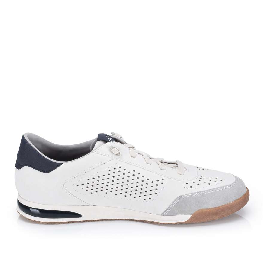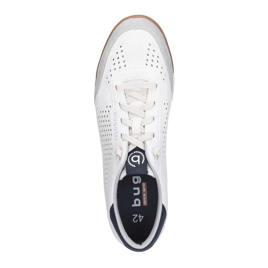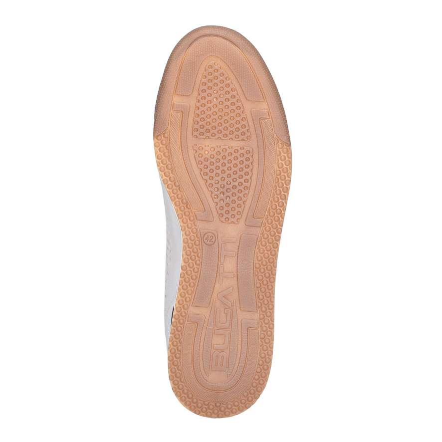 Boty BUGATTI jsou zárukou pohodlí i moderního vzhledu, který skvěle doplní váš každodenní styl. Bílý svršek se vzorem perforace a kontrastně modrými aplikacemi působí jedinečně a zároveň zajišťuje lepší prodyšnost, což přispívá k příjemnému pocitu při nošení. Praktická pružná gumička namísto šněrovaní umožňuje jednoduché nazutí a přizpůsobení tvaru nohy. Stélka je příjemně měkká a flexibilní podešev poskytuje potřebnou pružnost při každém kroku, takže se můžete spolehnout na pohodlí po celý den. Boty BUGATTI jsou skvělou volbou pro muže, kteří hledají stylovou a pohodlnou obuv pro každodenní nošení.