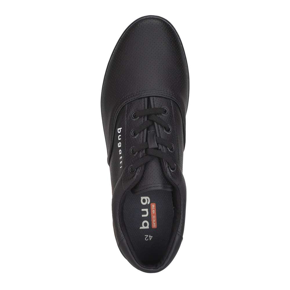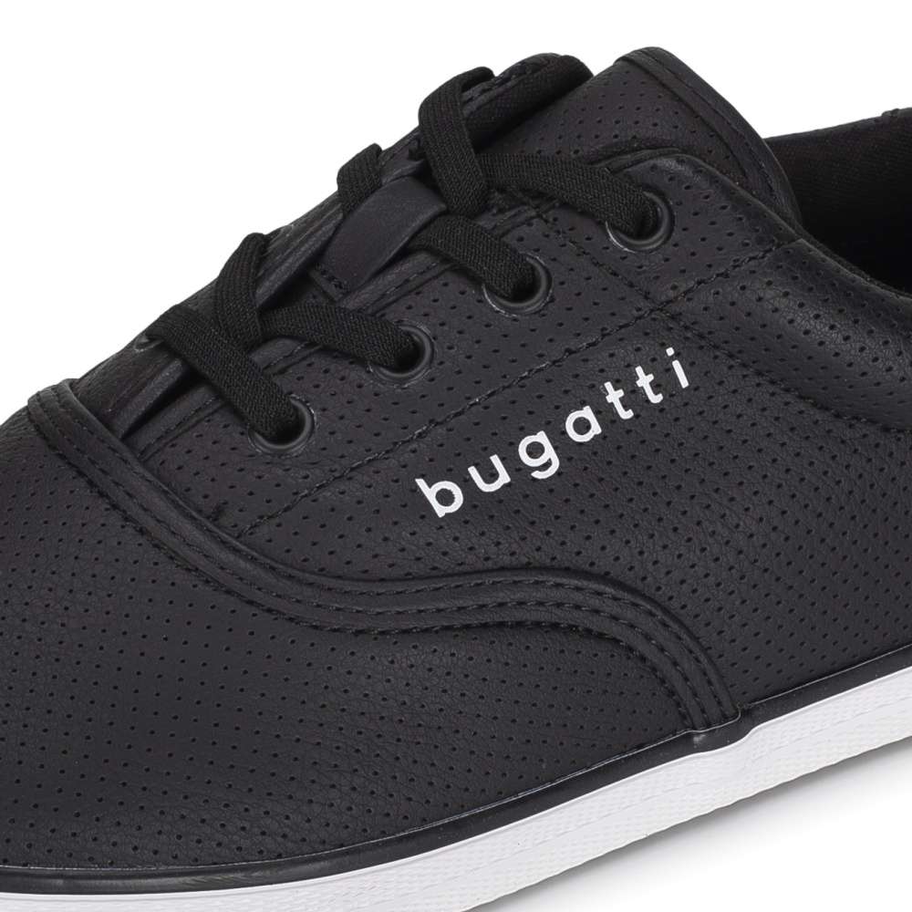 Pánské tenisky značky Bugatti jsou stylovým a zároveň praktickým doplňkem do vašeho botníku. Černý svršek zdobí minimalistický vzor a logo značky umístěné na vnější straně dodává teniskám prémiový akcent. Díky klasickému šněrování si obuv snadno přizpůsobíte tvaru nohy, což zajišťuje pohodlí po celý den. Univerzální design umožňuje snadné kombinování s různými outfity – ať už vyrážíte do práce, do města nebo na volnočasové procházky.