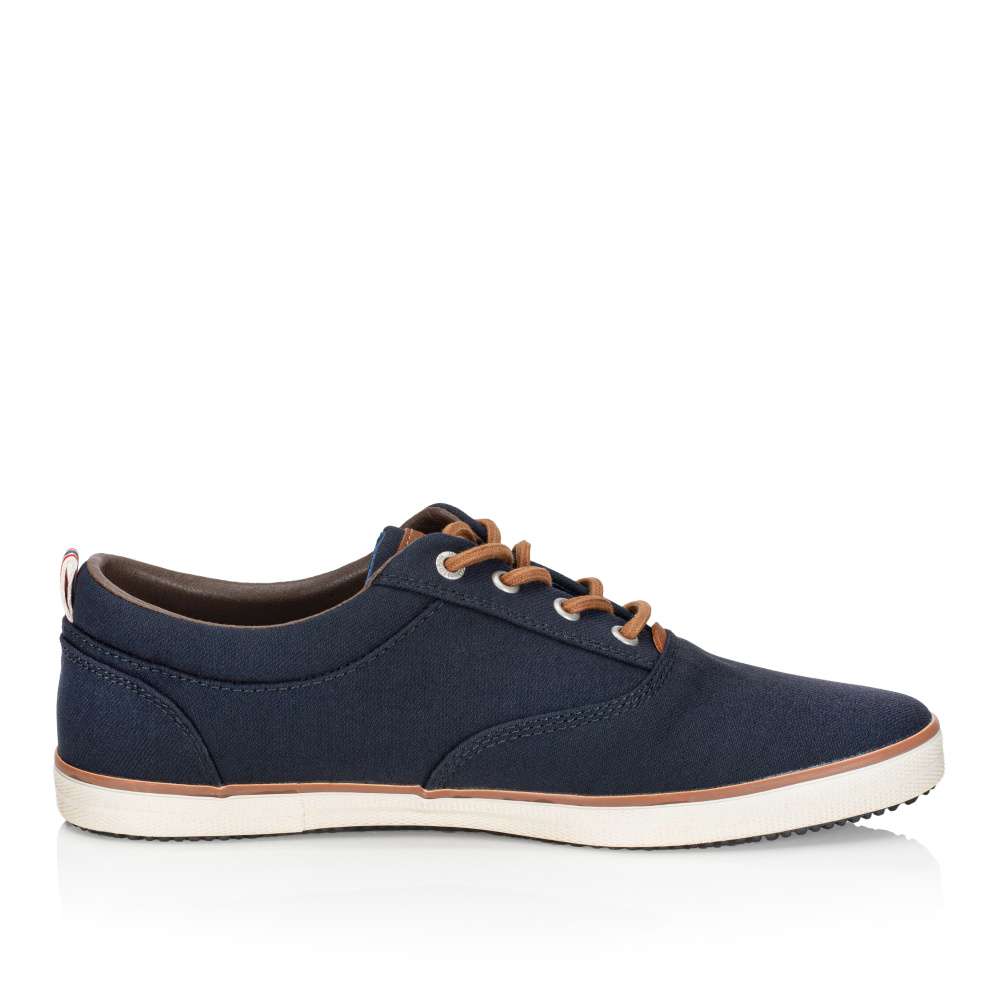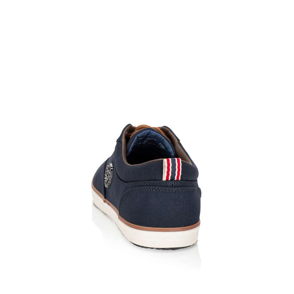 Tato pánská teniska je vyrobena v elegantním tmavě modrém provedení. Jejími zdobnými prvky jsou lemování kontrastní podešve, hnědé šněrování, kterým si obuv přizpůsobíte přesně dle svých požadavků, nebo také logo značky na vnější straně obuvi. Tato obuv krásně doplní jakýkoliv outfit a proto by neměla chybět ve Vašem botníku.