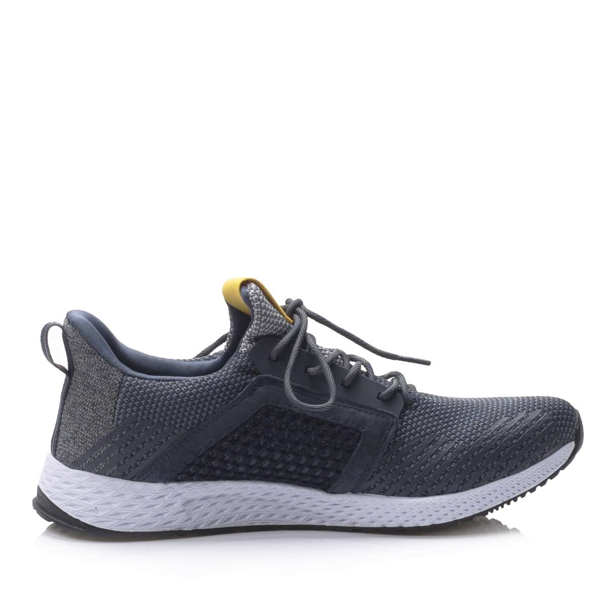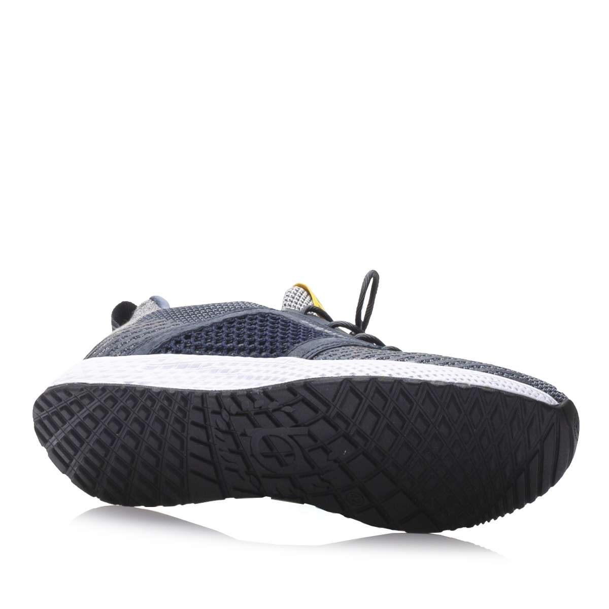 Pružný textilní svršek je doplněn tmavě modrými prvky, nápisem s názvem značky, žlutou nášivkou a šněrování tkaničkami zajistí snadné nazouvání.