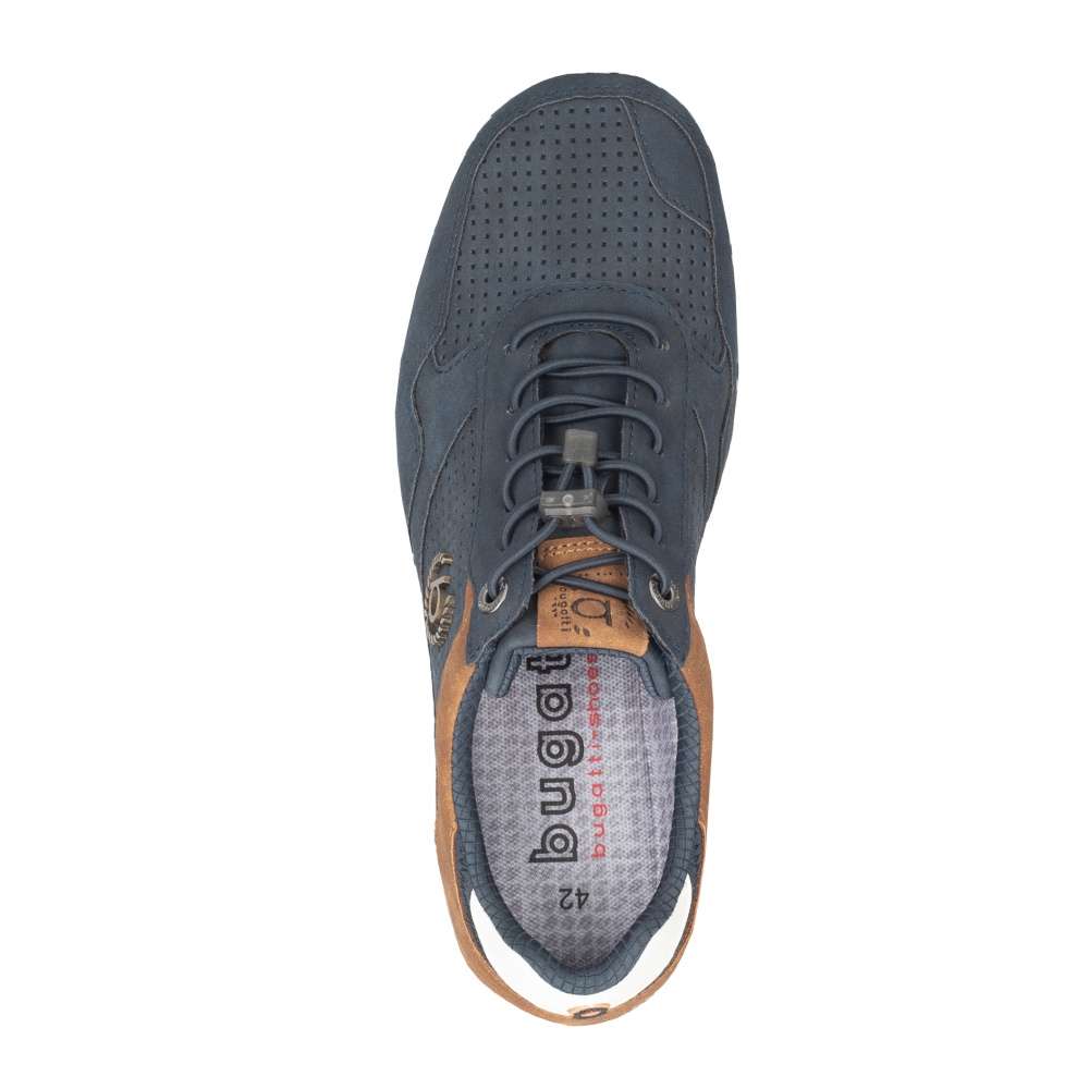 Detailní informace Pánské tenisky značky BUGATTI Vás zaujmou na první pohled. Svršek je unikátní díky barevnému spojení, perforaci, která zajistí odvětrávání a prošití, které spojuje svršek s podešví. Šněrováním pružnou gumičkou si pak obuv upravíte dle Vašich požadavků. Pohodlí na každém kroku Vám zajistí měkká stélka vyrobená z paměťové pěny, která je navíc vyjímatelná. Vy tak tento jednoduchý model unosíte jak do práce, tak na procházky městem.