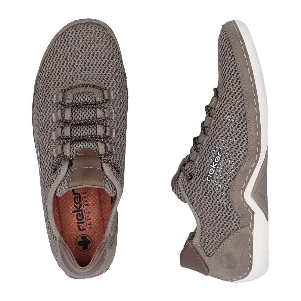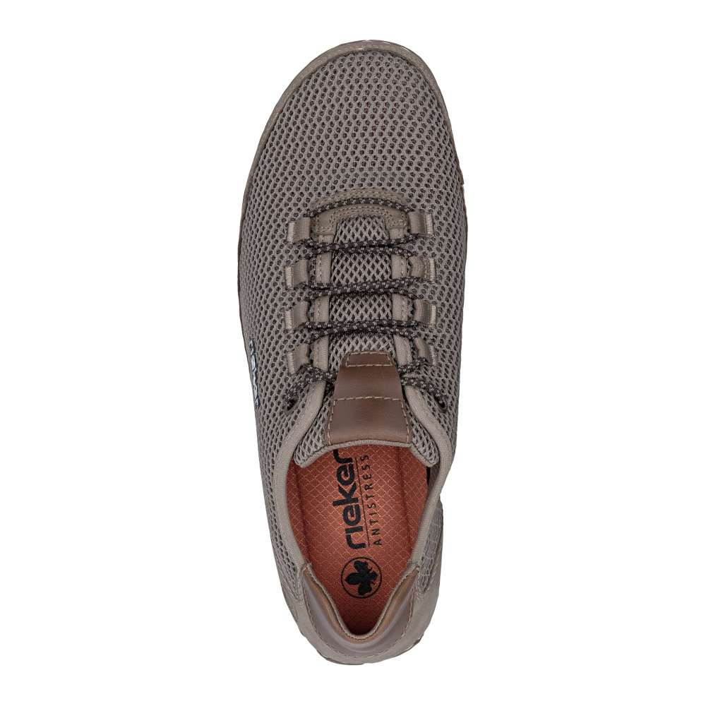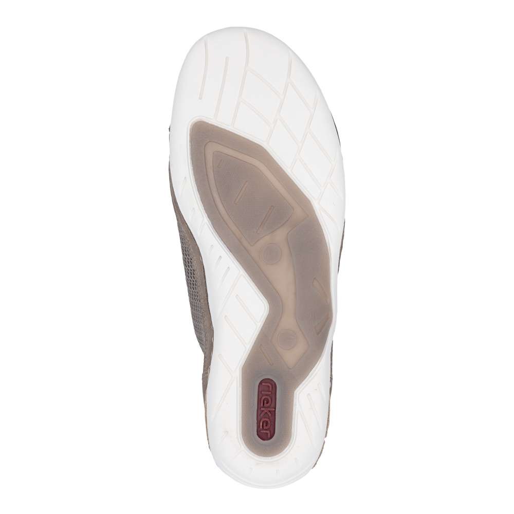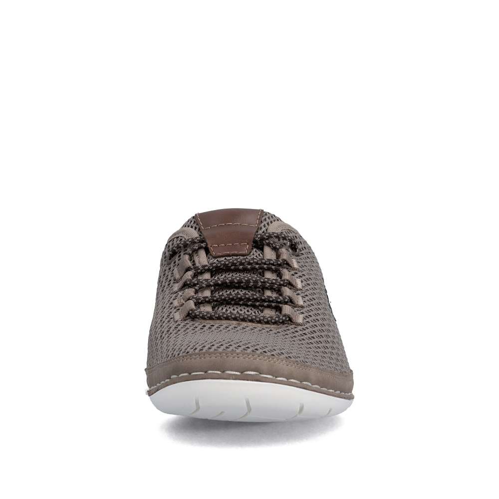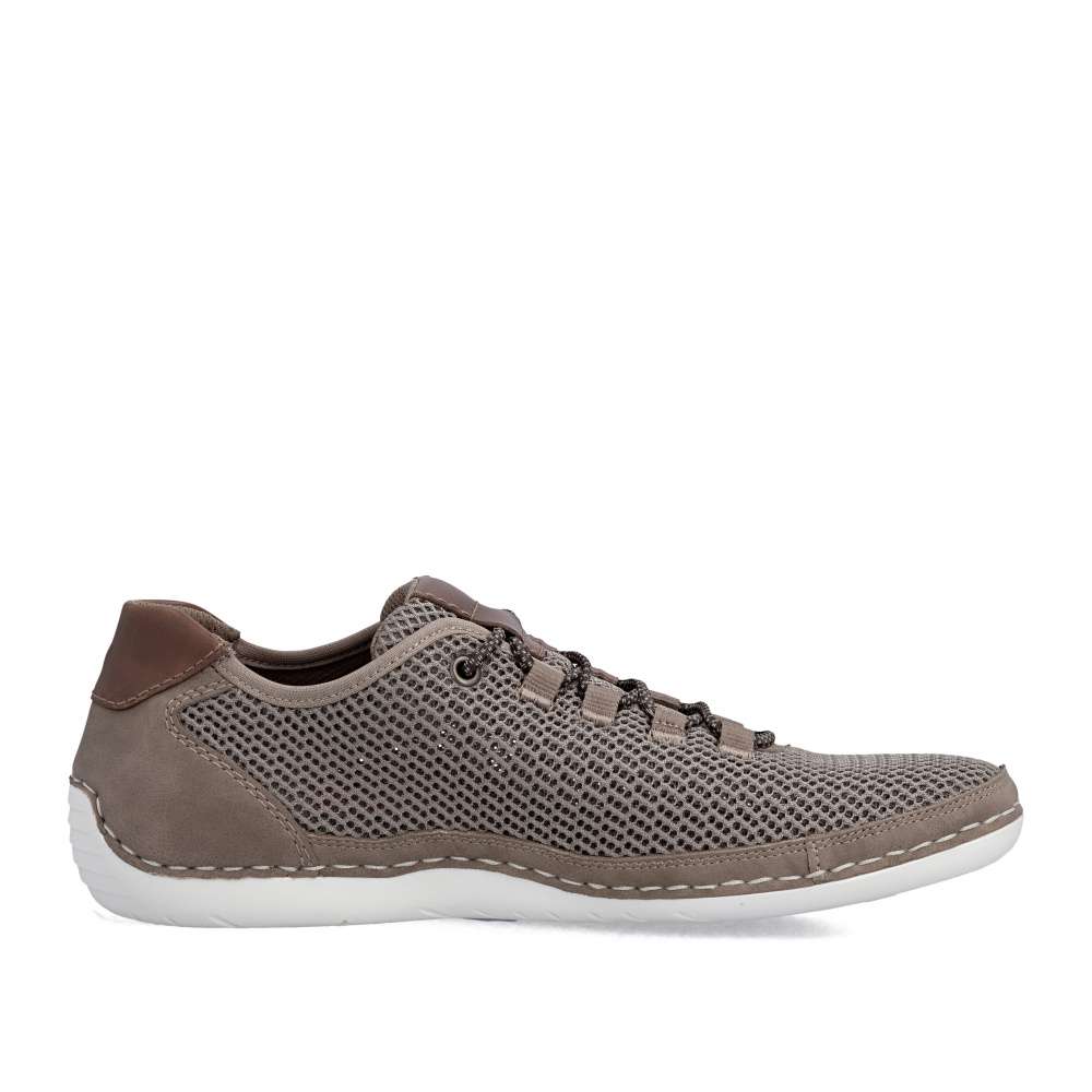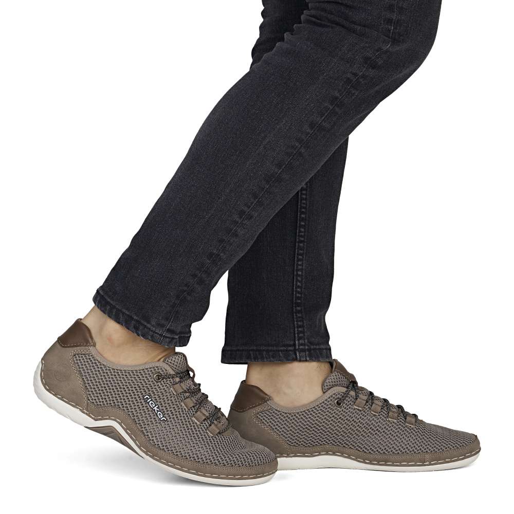 Módní styl a vzdušnost - heslo, které vystihuje tyto tenisky RIEKER do posledního detailu. Tato obuv je stvořená pro muže, kteří chtějí spojit moderní vzhled, lehkost a maximální komfort i během teplejších dní. Svršek boty je vyroben z prodyšného materiálu s efektně zpracovanou strukturou, která umožňuje dokonalé odvětrávání nohy a zároveň působí stylově. Loga značky RIEKER jemně dekorují povrch boty a dodávají jí typický charakter značkové kvality. Působivým prvkem je také šněrování pružnou gumičkou zajišťující snadné nazutí a přizpůsobení se tvaru nohy. Měkká a pohodlná stélka zaručuje příjemný pocit při každém kroku, navíc je vyjímatelná, což usnadňuje její údržbu a umožňuje individuální přizpůsobení. Nízká, flexibilní podešev, spojená se svrškem precizním šitím – pro značku RIEKER charakteristickým prvkem – poskytuje stabilitu, měkkost a dlouhotrvající odolnost. Tyto lehké a stylové boty jsou dokonalým společníkem pro každodenní nošení. Ať už se vydáte do města, na procházku nebo jen chcete doladit svůj outfit ležérním, ale promyšleným stylem, tento model vám zaručí pohodlí a svěžest během celého dne.