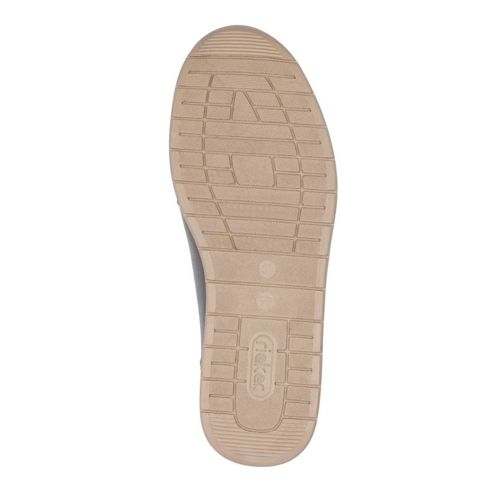 Tento model tenisek značky RIEKER čeká v naší nabídce přímo na Vás. Hladký svršek s jemným prošíváním je zdobný kontrastními prvky a dokonalý vzhled doplňuje bílá podešev. Tkaničkami společně s funkčním zipem si obuv snadno nazujete a přizpůsobíte dle požadavků. Tento model je vhodný jak k pracovním povinnostem, tak k volnočasovým procházkám. Technologie: Antistress – podešev je díky této technologii lehká, flexibilní, absorbuje nárazy při došlapu a snadno se přizpůsobí každé noze.