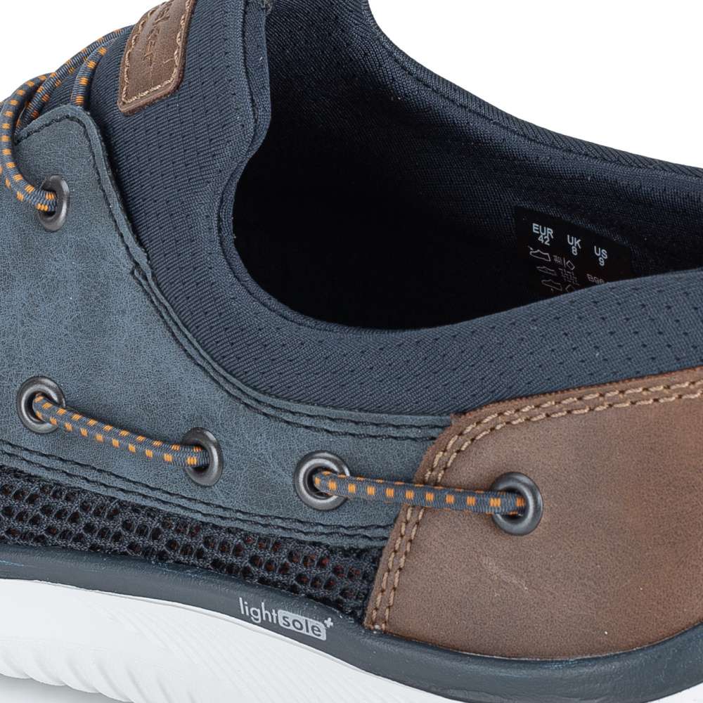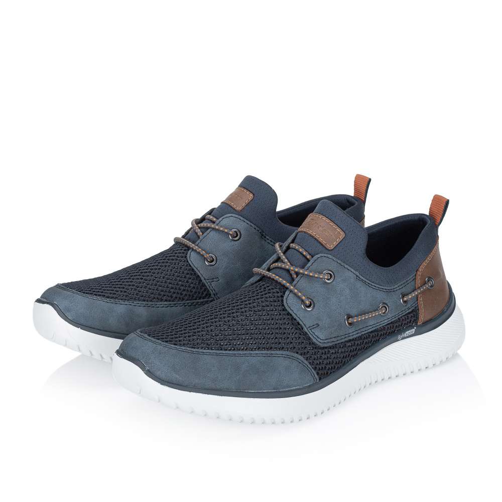 Tyto pánské boty RIEKER jsou ztělesněním módního stylu v pohodlném provedení, které zaručí nejen atraktivní vzhled, ale také maximální komfort během celého dne. Svršek je vytvořen z harmonické kombinace barev a struktur materiálů, což dodává botám originální a moderní charakter. Přičemž textilní materiál dodává obuvi lehkost a vzdušnost, kterou oceníte zejména v teplých dnech. Obouvání je rychlé a snadné díky textilnímu materiálu horní části bot, přičemž gumička přes nárt je pouze věcí dekorace. Uvnitř se nachází textilní stélka, která poskytuje výjimečný komfort a pocit měkkosti při došlapu. Propracovaná podešev s nárazy tlumícím efektem zaručí pohodlí při každém kroku a zároveň přidává botám na stylovém vzhledu. Je lehká, flexibilní a přizpůsobená dynamickému pohybu, což činí z těchto bot ideálního společníka na celodenní nošení – ať už se vydáte na procházku městem, do práce nebo na volnočasové aktivity. Dokonalá souhra moderního vzhledu a maximálního pohodlí díky funkčním technologiím to jsou boty RIEKER Sport.