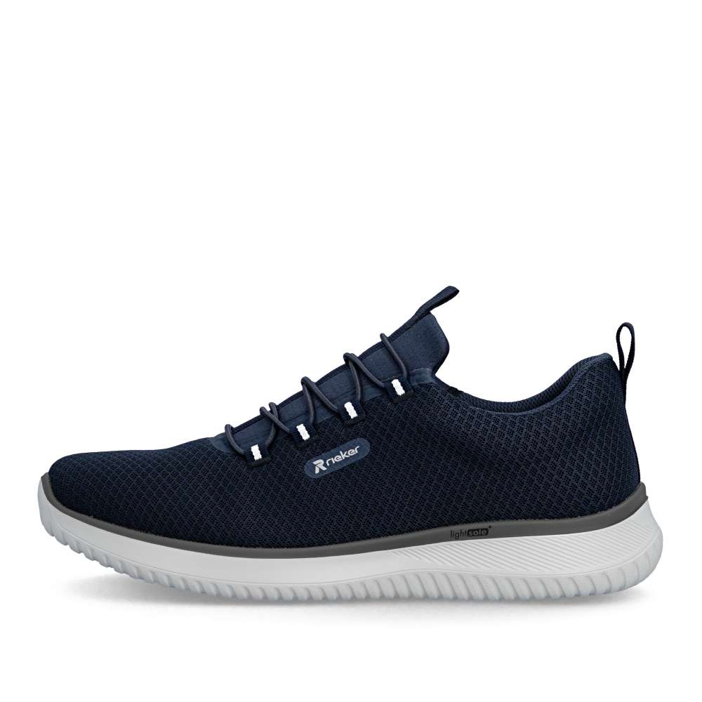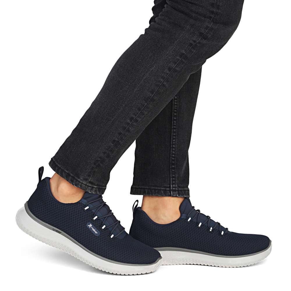 Tyto tenisky RIEKER představují ideální volbu pro každého moderního muže, který oceňuje nadčasový design a pohodlí. Tmavě modrý textilní svršek působí nejen univerzálně a nadčasově, což umožňuje snadné kombinování s různými outfity, ale zároveň poskytuje prodyšnost a pohodlí během celého dne. Logo značky slouží také jako stylový detail, který dokonale doplňuje univerzální textilní svršek, zvyšuje vizuální atraktivitu a zdůrazňuje autenticitu značky. Namísto klasického šněrování je model vybaven pružnou gumičkou, která umožňuje snadné a rychlé obouvání a zároveň se přizpůsobí tvaru chodidla. Měkká textilní stélka zajišťuje pohodlí na každém kroku a příjemný pocit při celodenním nošení. Flexibilní podešev tlumí nárazy a zaručuje stabilní a bezpečný krok, ať už ve městě nebo při volnočasových aktivitách. Kombinace lehkosti, komfortu a moderního stylu činí tyto tenisky skvělým doplňkem každého pánského šatníku, vhodným pro každodenní nošení i aktivní životní styl. Dokonalá souhra moderního vzhledu a maximálního pohodlí díky funkčním technologiím to jsou boty RIEKER Sport. Technologie: Antistress – díky čtyřem antistresovým vlastnostem – lehkosti, pružnosti, prostornosti a vynikající absorpci nárazů – vám boty RIEKER nabídnou komfortnější chůzi. RIEKER Lite - maximální komfort při nošení vytváří kombinace lehké podešve, velmi příjemných materiálů a komfortní stélky.