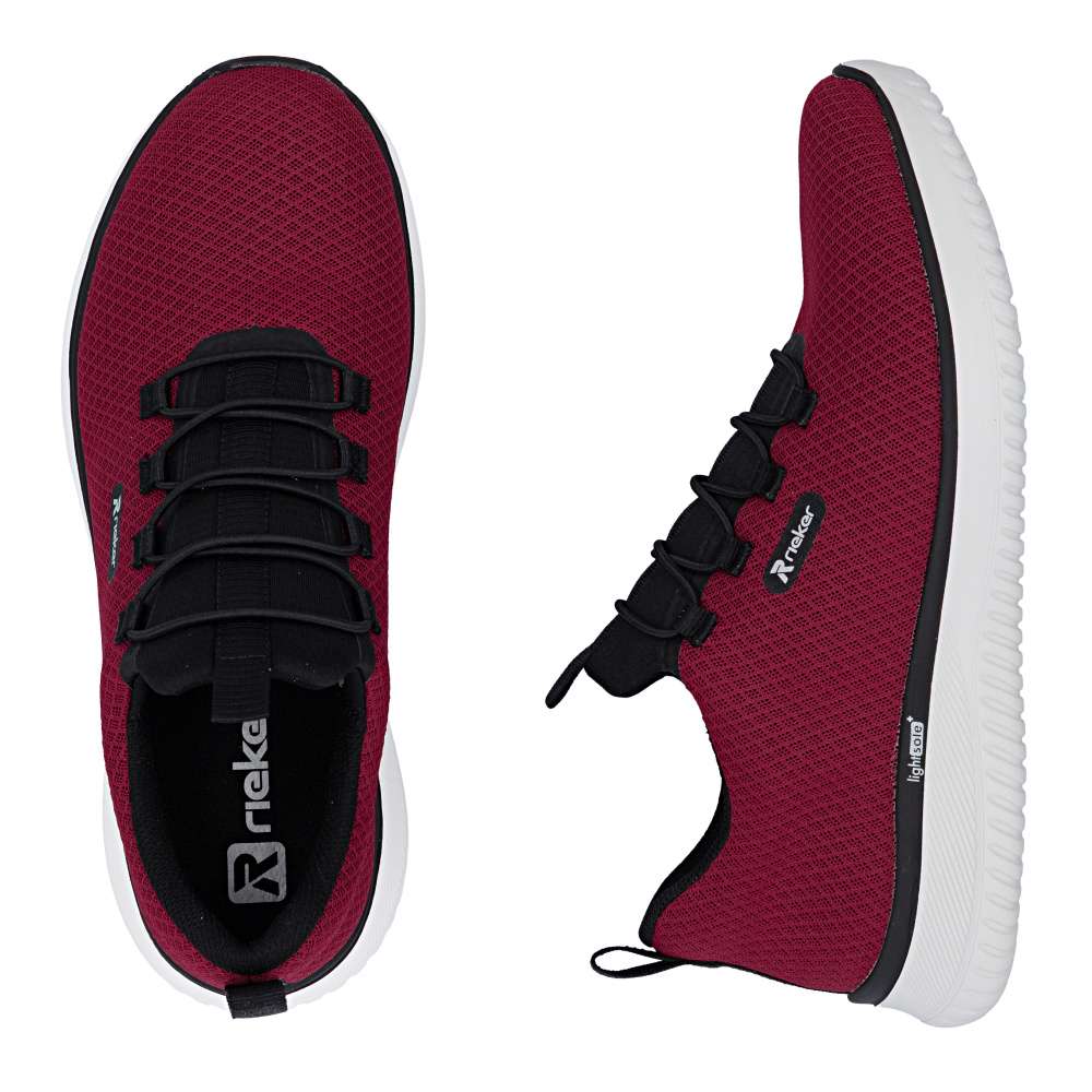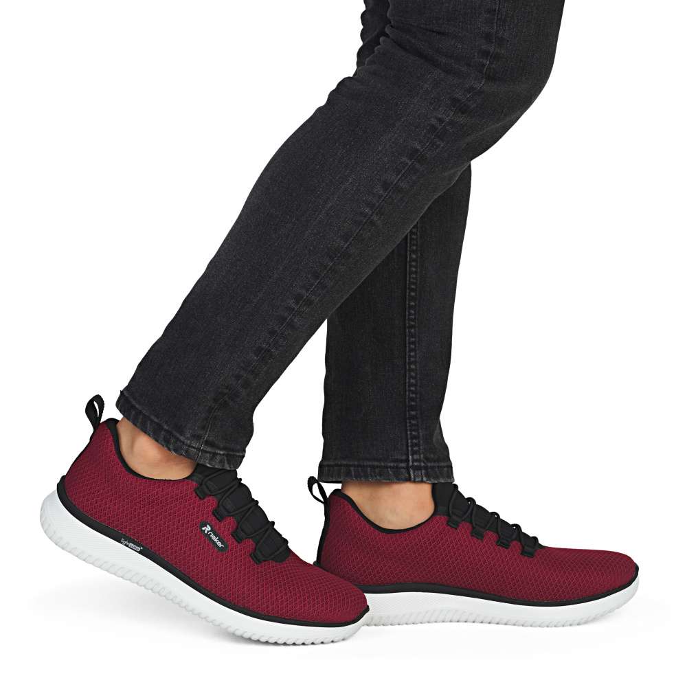 Tyto tenisky RIEKER představují ideální volbu pro každého moderního muže, který oceňuje módní design a pohodlí. Červený textilní svršek, doplněný kontrastně tmavými částmi, poskytuje nejen svěží a moderní vzhled, ale také prodyšnost a pohodlí během celého dne. Logo značky slouží jako stylový detail, zvyšuje vizuální atraktivitu a zdůrazňuje autenticitu značky. Namísto klasického šněrování je model vybaven pružnou gumičkou, která umožňuje snadné a rychlé obouvání a zároveň se přizpůsobí tvaru chodidla. Měkká textilní stélka zajišťuje pohodlí na každém kroku a příjemný pocit při celodenním nošení. Flexibilní podešev tlumí nárazy a zaručuje stabilní a bezpečný krok, ať už ve městě nebo při volnočasových aktivitách. Kombinace lehkosti, komfortu a moderního stylu činí tyto tenisky skvělým doplňkem každého pánského šatníku, vhodným pro každodenní nošení i aktivní životní styl. Dokonalá souhra moderního vzhledu a maximálního pohodlí díky funkčním technologiím to jsou boty RIEKER Sport.