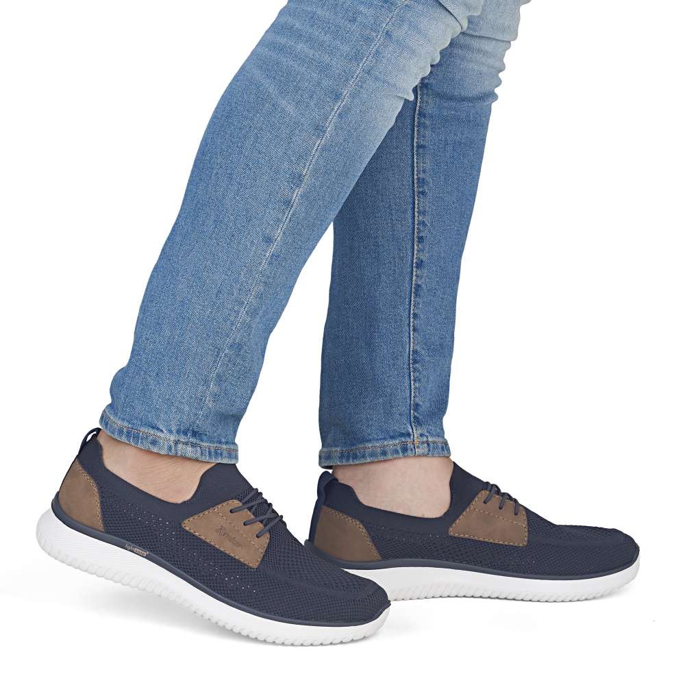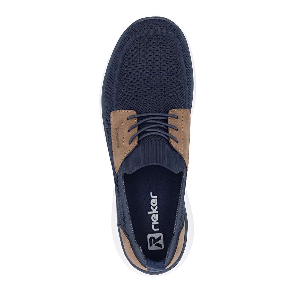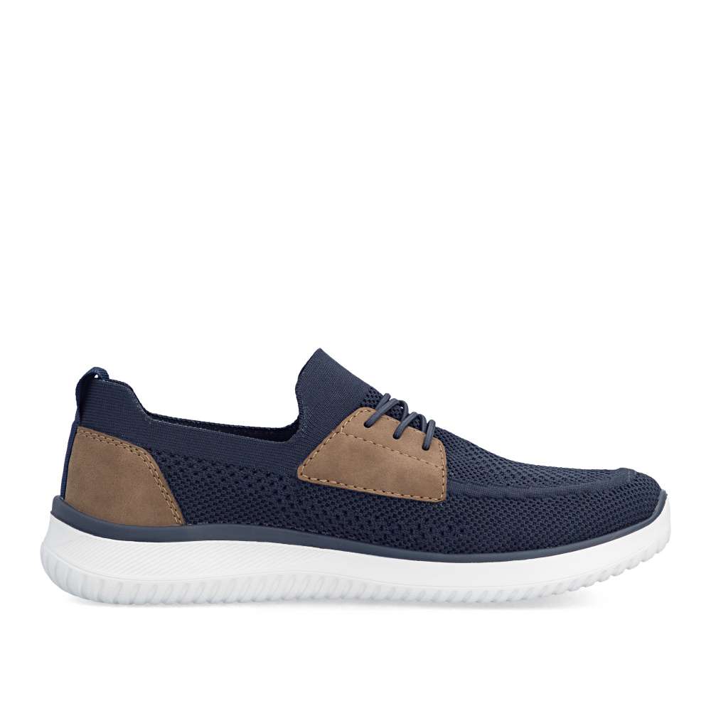 Tyto boty RIEKER představují ideální volbu pro moderního muže, který hledá spojení módního vzhledu a komfortu. Textilní svršek tmavě modré barvy působí nadčasově, snadno se kombinuje s různými outfity a zároveň poskytuje prodyšnost a pohodlí během celého dne. Hnědé aplikace a logo značky jsou působivými detaily, které zvýrazňují autenticitu a styl bot. Jednoduché nazutí zajišťuje pružný lem horního okraje, který se dokonale přizpůsobí tvaru nohy. Gumička přes nárt slouží především jako dekorativní prvek, který doplňuje moderní vzhled bot, přičemž nenarušuje komfort ani flexibilitu při obouvání. Uvnitř se nachází textilní stélka, která poskytuje výjimečný komfort a pocit měkkosti při došlapu. Flexibilní podešev tlumí nárazy, zajišťuje stabilitu a bezpečný krok, ať už při procházce městem nebo během volnočasových aktivit. Kombinace lehkosti, komfortu a moderního designu činí tyto tenisky RIEKER nenahraditelným doplňkem každého pánského šatníku, vhodným pro každodenní nošení i aktivní životní styl. Dokonalá souhra moderního vzhledu a maximálního pohodlí díky funkčním technologiím to jsou boty RIEKER Sport.
