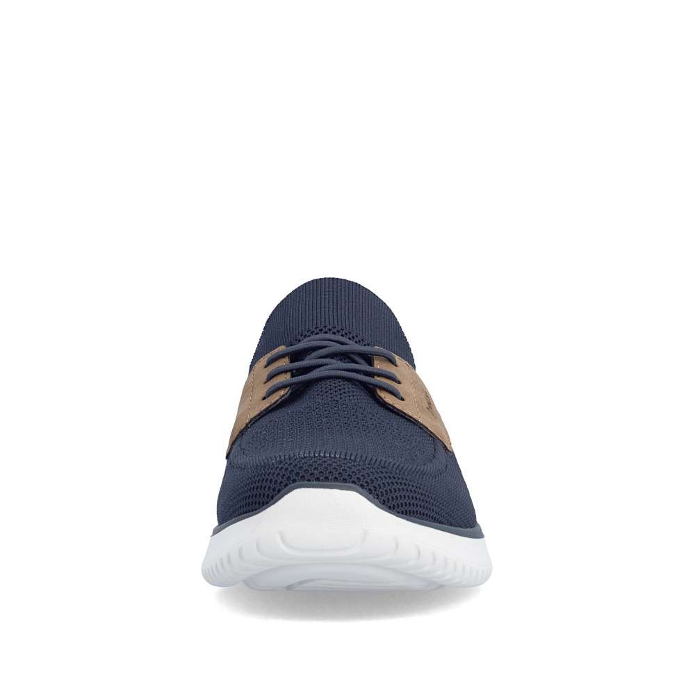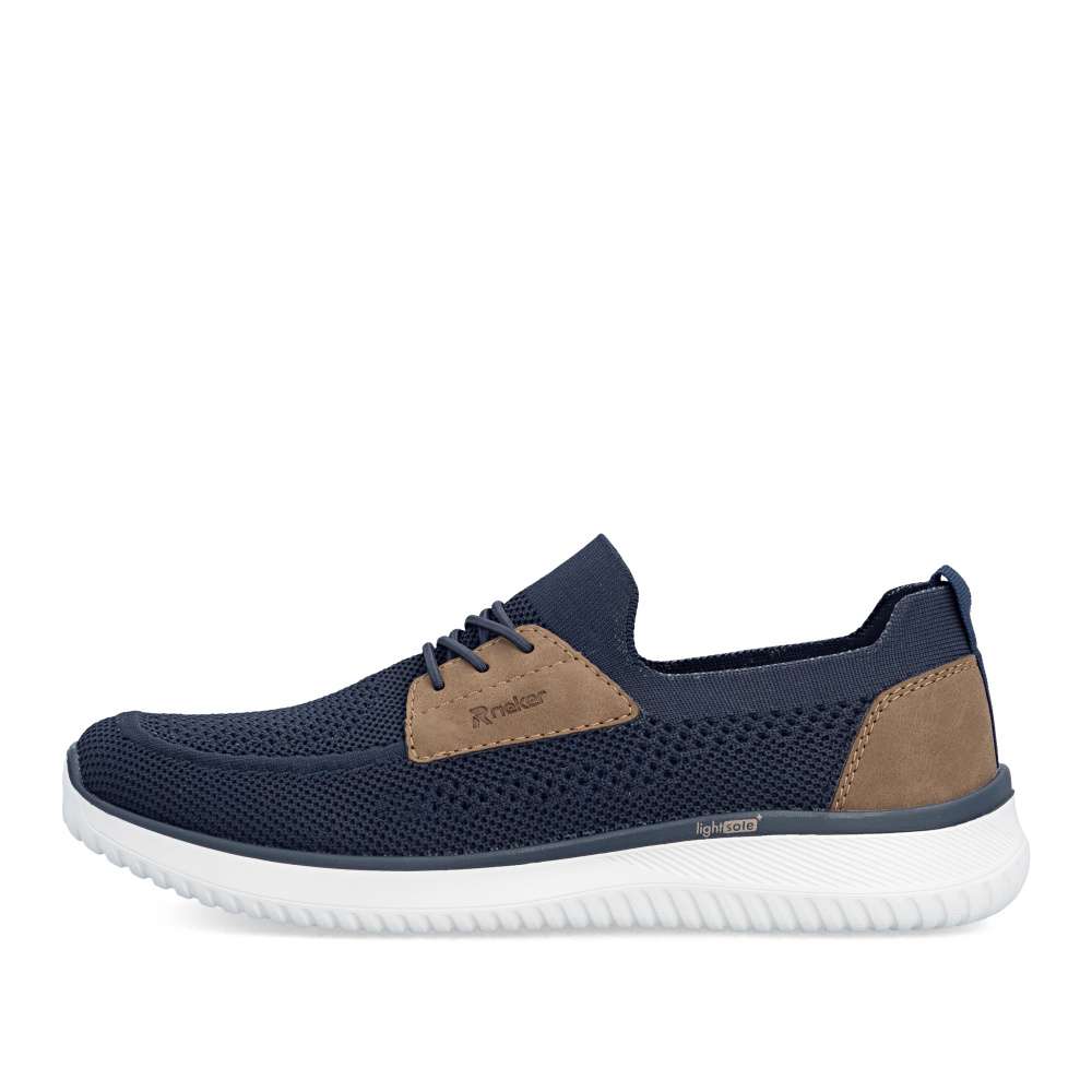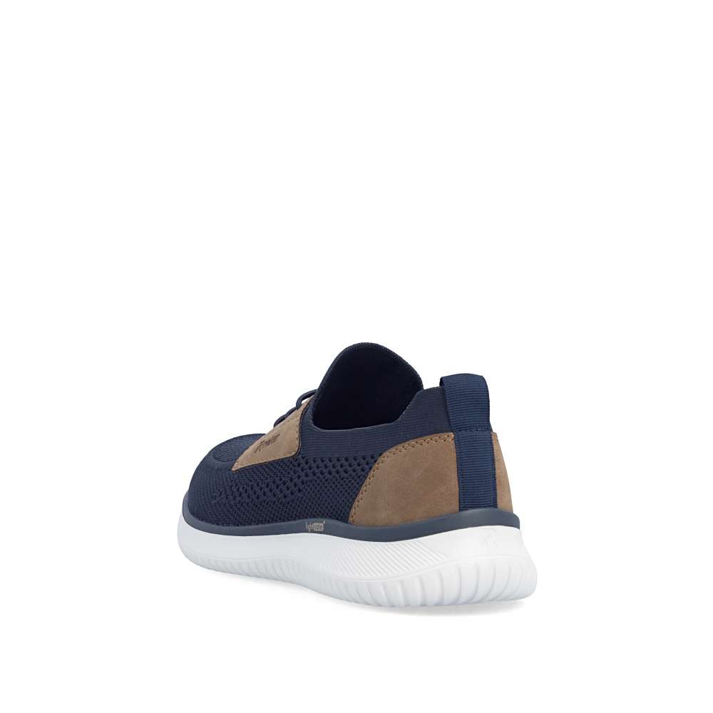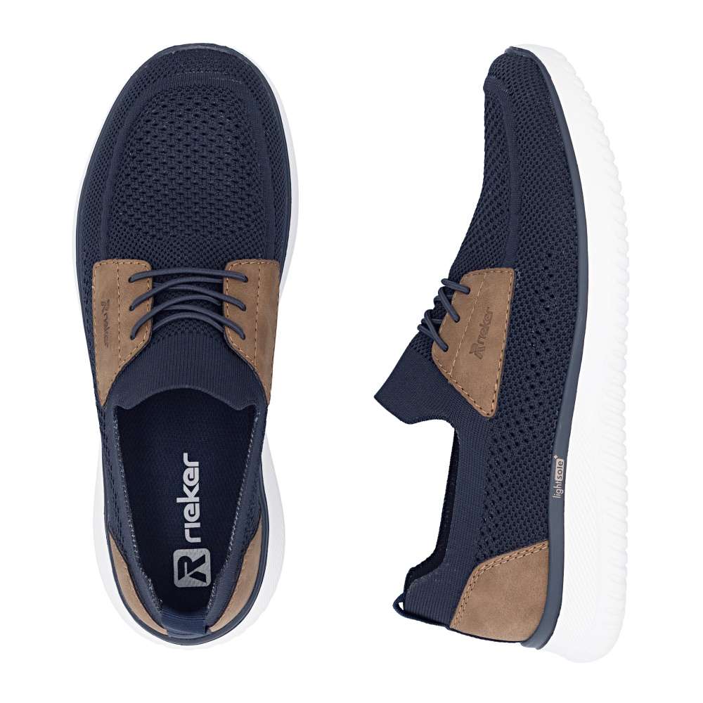 Tyto boty RIEKER představují ideální volbu pro moderního muže, který hledá spojení módního vzhledu a komfortu. Textilní svršek tmavě modré barvy působí nadčasově, snadno se kombinuje s různými outfity a zároveň poskytuje prodyšnost a pohodlí během celého dne. Hnědé aplikace a logo značky jsou působivými detaily, které zvýrazňují autenticitu a styl bot. Jednoduché nazutí zajišťuje pružný lem horního okraje, který se dokonale přizpůsobí tvaru nohy. Gumička přes nárt slouží především jako dekorativní prvek, který doplňuje moderní vzhled bot, přičemž nenarušuje komfort ani flexibilitu při obouvání. Uvnitř se nachází textilní stélka, která poskytuje výjimečný komfort a pocit měkkosti při došlapu. Flexibilní podešev tlumí nárazy, zajišťuje stabilitu a bezpečný krok, ať už při procházce městem nebo během volnočasových aktivit. Kombinace lehkosti, komfortu a moderního designu činí tyto tenisky RIEKER nenahraditelným doplňkem každého pánského šatníku, vhodným pro každodenní nošení i aktivní životní styl. Dokonalá souhra moderního vzhledu a maximálního pohodlí díky funkčním technologiím to jsou boty RIEKER Sport.
