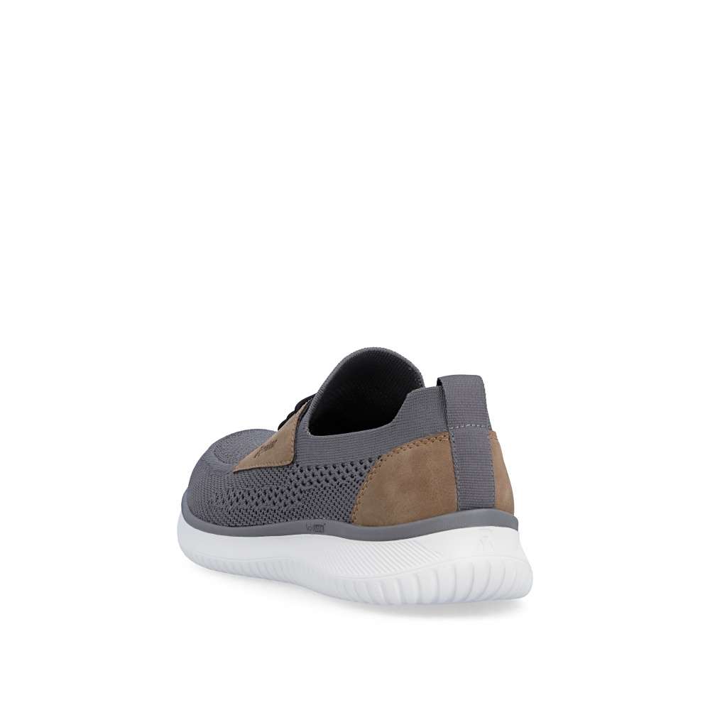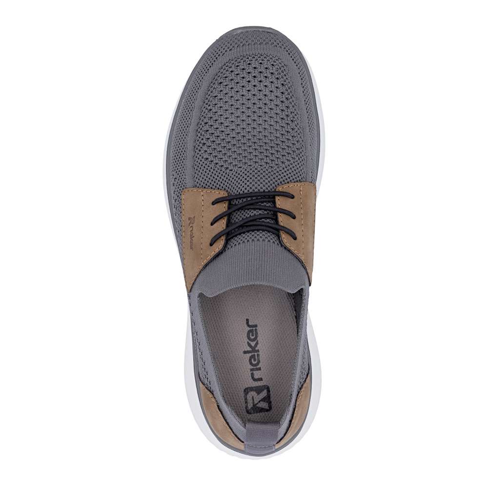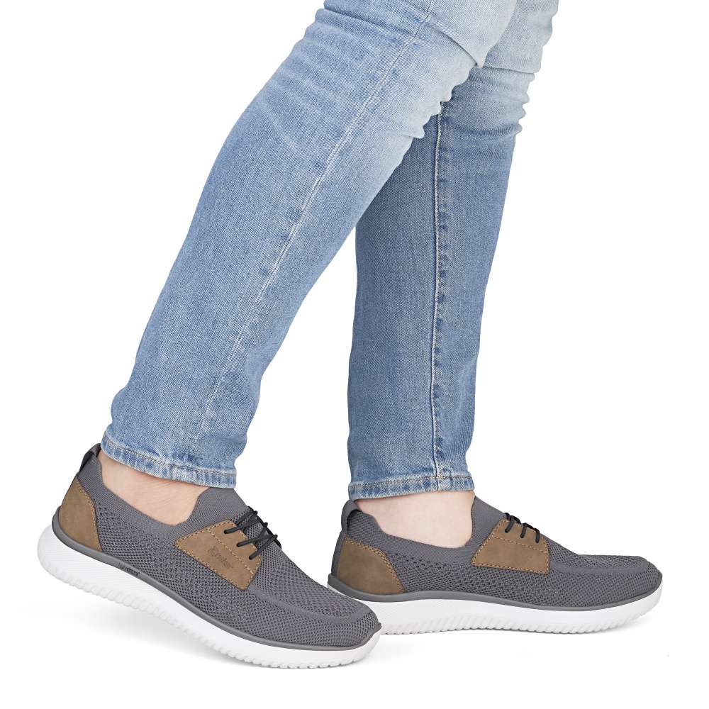 Tyto boty RIEKER představují ideální volbu pro moderního muže, který hledá spojení módního vzhledu a komfortu. Textilní svršek šedé barvy působí nadčasově, snadno se kombinuje s různými outfity a zároveň poskytuje prodyšnost a pohodlí během celého dne. Hnědé aplikace a logo značky jsou působivými detaily, které zvýrazňují autenticitu a styl bot. Jednoduché nazutí zajišťuje pružný lem horního okraje, který se dokonale přizpůsobí tvaru nohy. Gumička přes nárt slouží především jako dekorativní prvek, který doplňuje moderní vzhled bot, přičemž nenarušuje komfort ani flexibilitu při obouvání. Uvnitř se nachází textilní stélka, která poskytuje výjimečný komfort a pocit měkkosti při došlapu. Flexibilní podešev tlumí nárazy, zajišťuje stabilitu a bezpečný krok, ať už při procházce městem nebo během volnočasových aktivit. Kombinace lehkosti, komfortu a moderního designu činí tyto tenisky RIEKER nenahraditelným doplňkem každého pánského šatníku, vhodným pro každodenní nošení i aktivní životní styl. Dokonalá souhra moderního vzhledu a maximálního pohodlí díky funkčním technologiím to jsou boty RIEKER Sport.