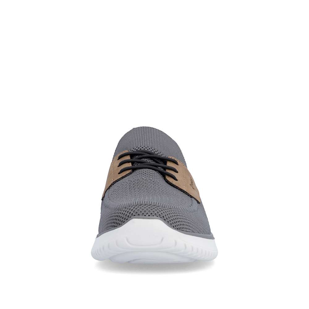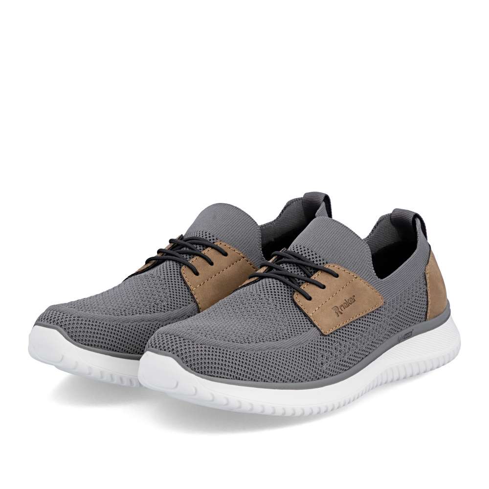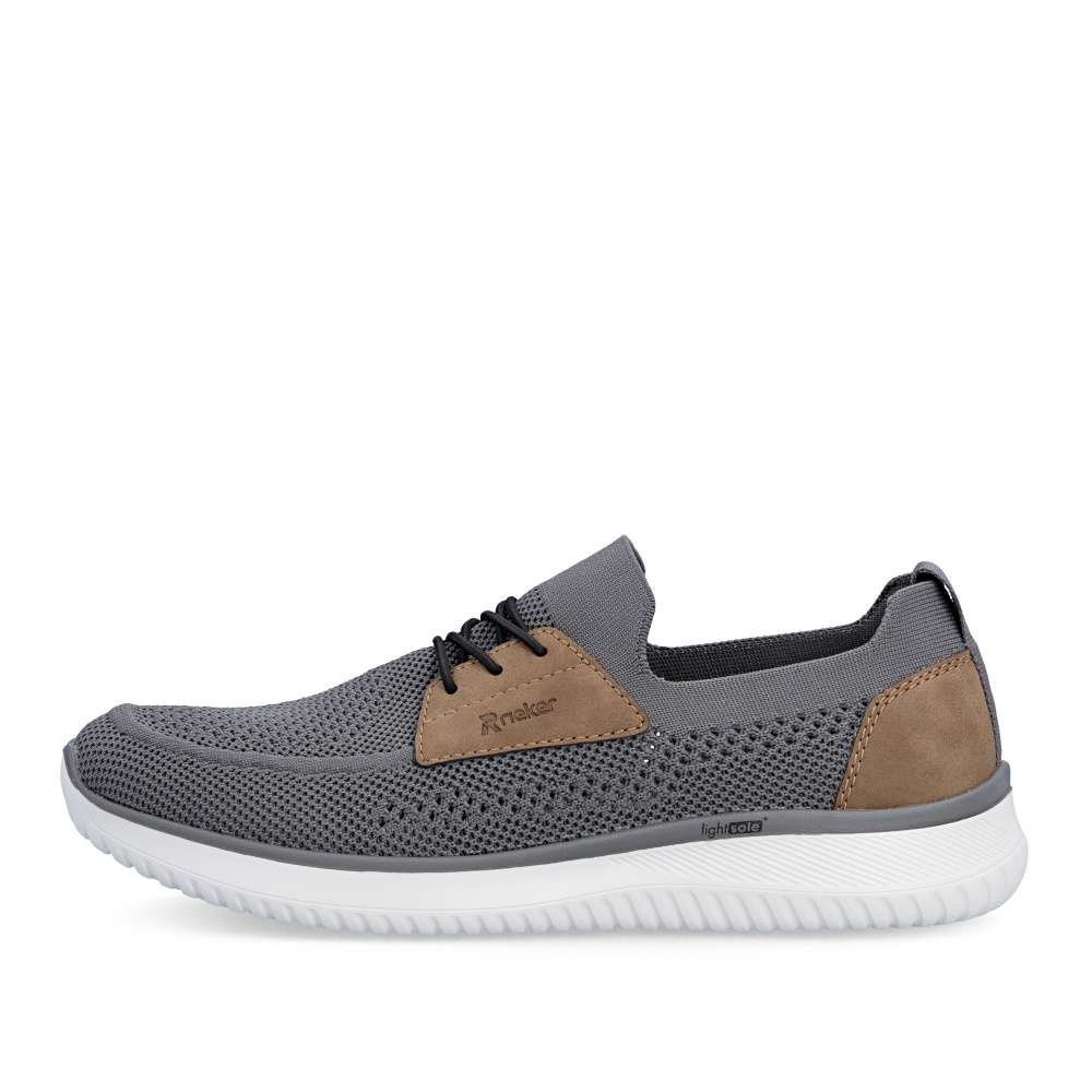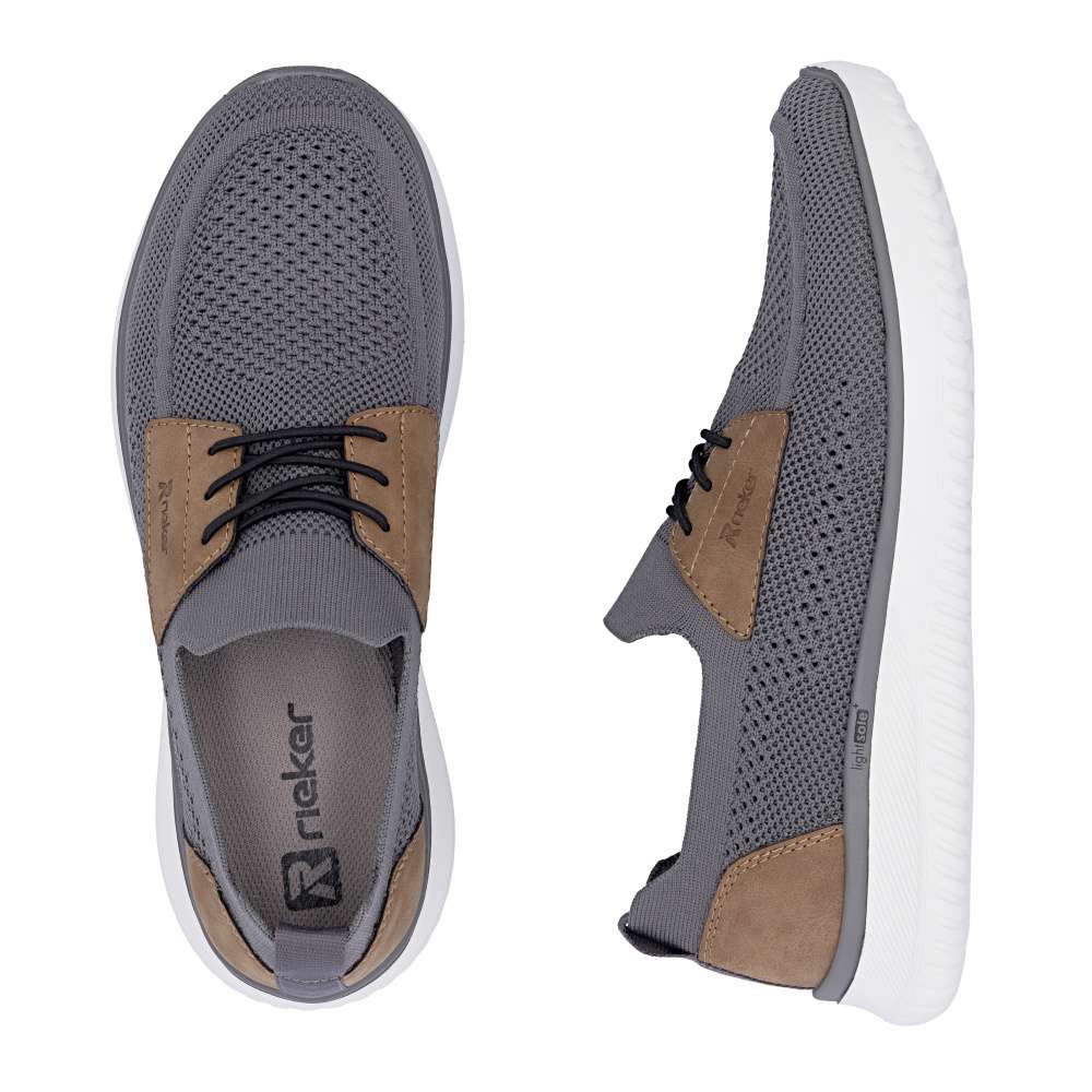 Tyto boty RIEKER představují ideální volbu pro moderního muže, který hledá spojení módního vzhledu a komfortu. Textilní svršek šedé barvy působí nadčasově, snadno se kombinuje s různými outfity a zároveň poskytuje prodyšnost a pohodlí během celého dne. Hnědé aplikace a logo značky jsou působivými detaily, které zvýrazňují autenticitu a styl bot. Jednoduché nazutí zajišťuje pružný lem horního okraje, který se dokonale přizpůsobí tvaru nohy. Gumička přes nárt slouží především jako dekorativní prvek, který doplňuje moderní vzhled bot, přičemž nenarušuje komfort ani flexibilitu při obouvání. Uvnitř se nachází textilní stélka, která poskytuje výjimečný komfort a pocit měkkosti při došlapu. Flexibilní podešev tlumí nárazy, zajišťuje stabilitu a bezpečný krok, ať už při procházce městem nebo během volnočasových aktivit. Kombinace lehkosti, komfortu a moderního designu činí tyto tenisky RIEKER nenahraditelným doplňkem každého pánského šatníku, vhodným pro každodenní nošení i aktivní životní styl. Dokonalá souhra moderního vzhledu a maximálního pohodlí díky funkčním technologiím to jsou boty RIEKER Sport.