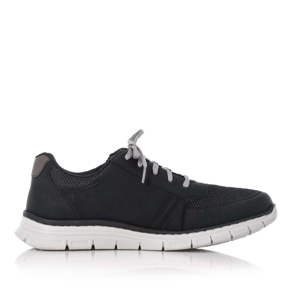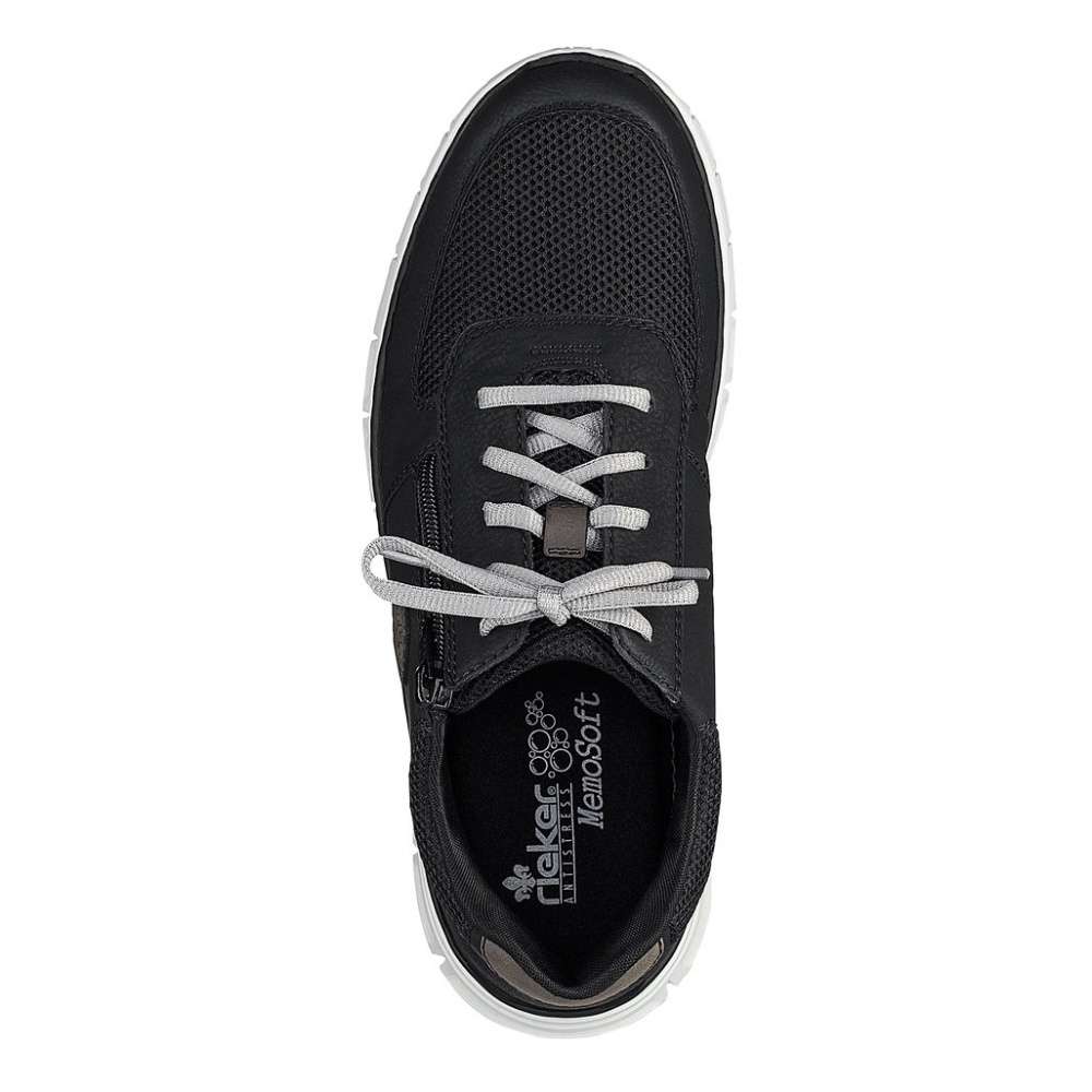 Pánské šněrovací tenisky od německé značky RIEKER v tmavých barvách s kontrastními detaily, které obuv krásně rozzáří.
