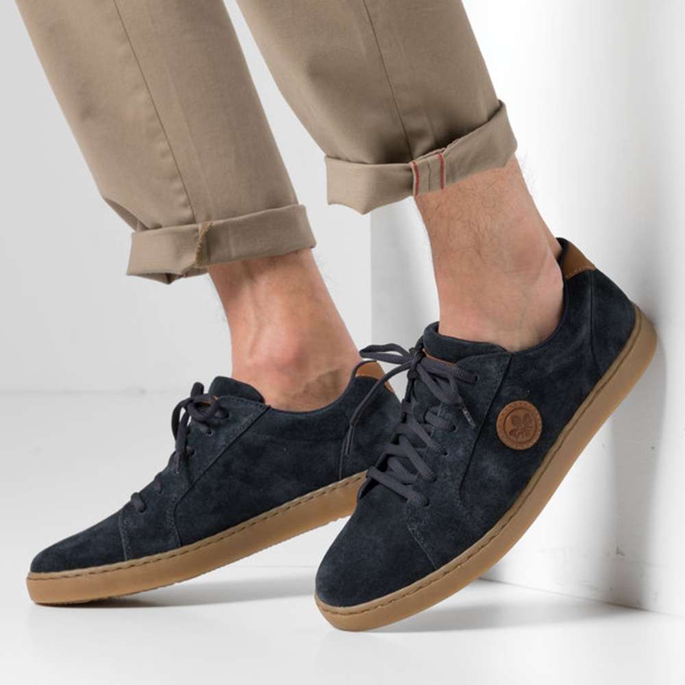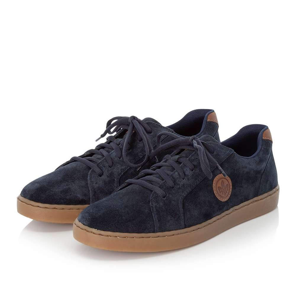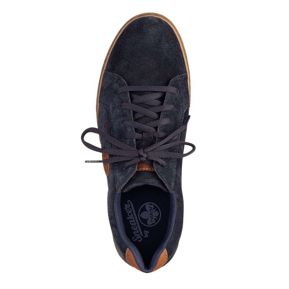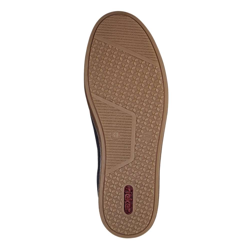 Pánské kožené šněrovací tenisky od německé značky RIEKER v tmavé barvě, nesmí chybět ve Vašem botníku. Boty jsou vybaveny tkaničkami, díky kterým si obuv utáhnete přesně podle Vašich představ. Podešev je tvořena jemným vzorem a to Vám zajistí jistotu každého kroku. Jistě také oceníte měkkou textilní stélku, která se postará a pohodlnou chůzi během celého dne. Vkusný model, jenž můžete obout ke každému sportovnímu outfitu.