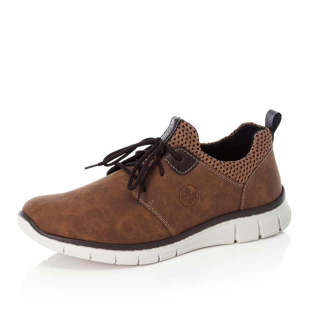 Sportovní polobotky značky RIEKER jsou zde přímo pro Vás. Zdobené jsou tmavými tkaničkami a pružným materiálem kolem kotníku. Šněrováním si pak obuv upravíte přesně dle svých požadavků. Kontrastní podešev a jemné šití jej doladí k dokonalosti. Tento model je vhodný jak k pracovním povinnostem, tak k volnočasovým procházkám.