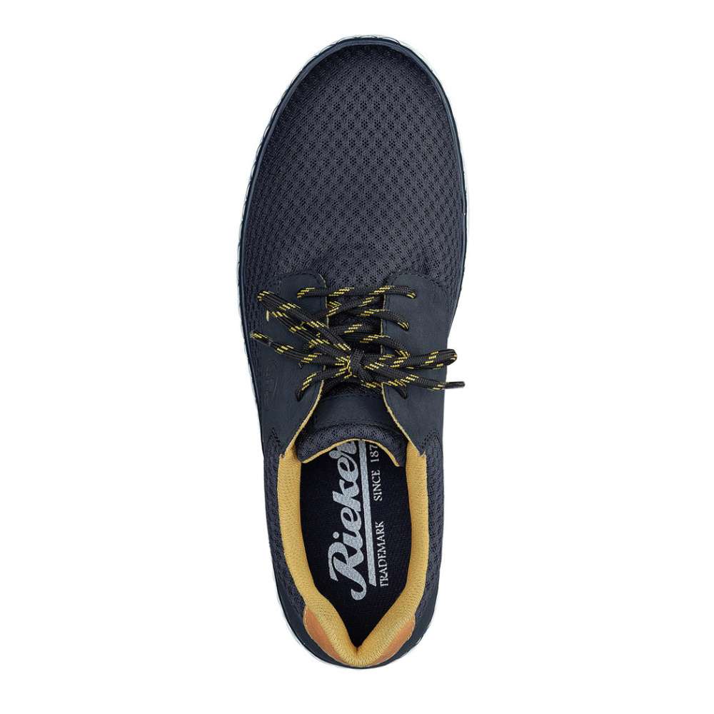 Svršek z prodyšného materiálu v kombinaci hnědožluté barvičky a logo značky RIEKER, to je to, co nebudete chtít zout. Šněrováním si pak obuv upravíte dle svých požadavků.