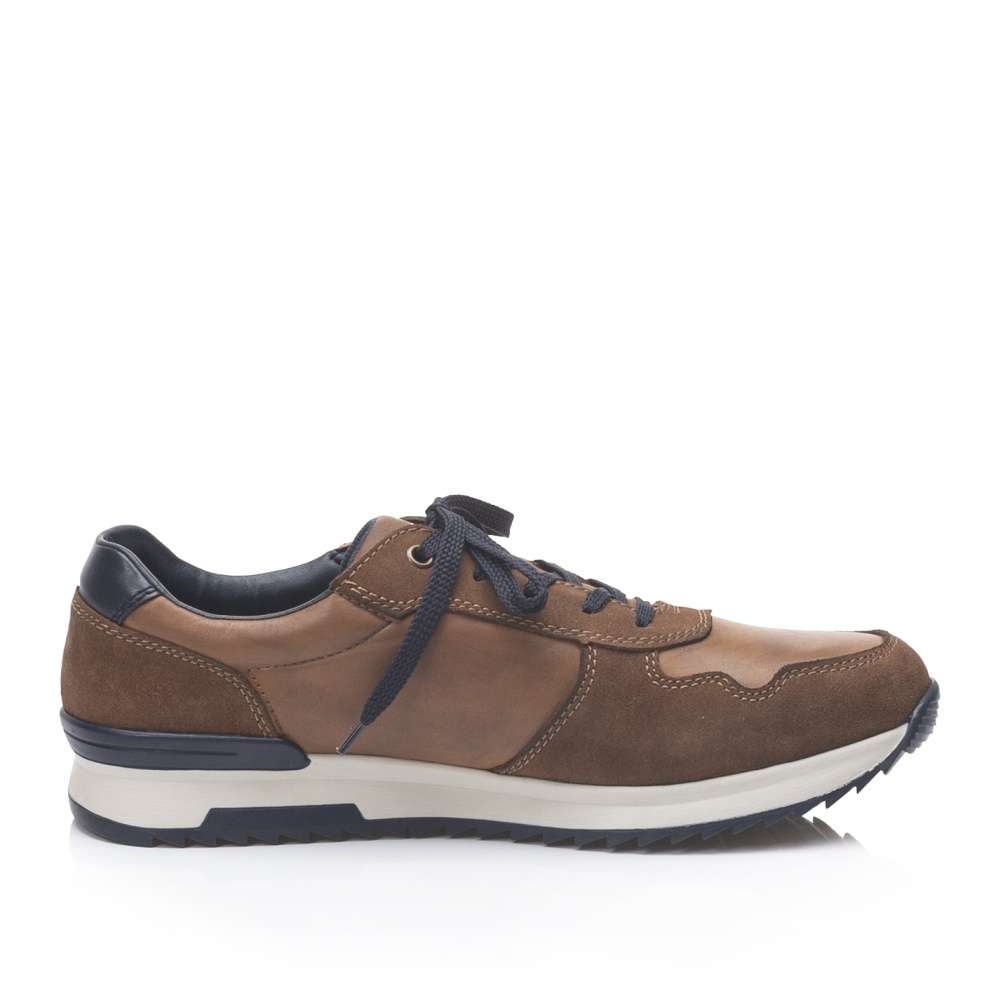 Praktická obuv s logem značky Rieker Vás na první pohled zaujme kombinací hladkého a broušeného materiálu ve dvou barevných variantách. Tkaničkami na šněrování si je můžete utáhnout přesně podle Vašich představ.