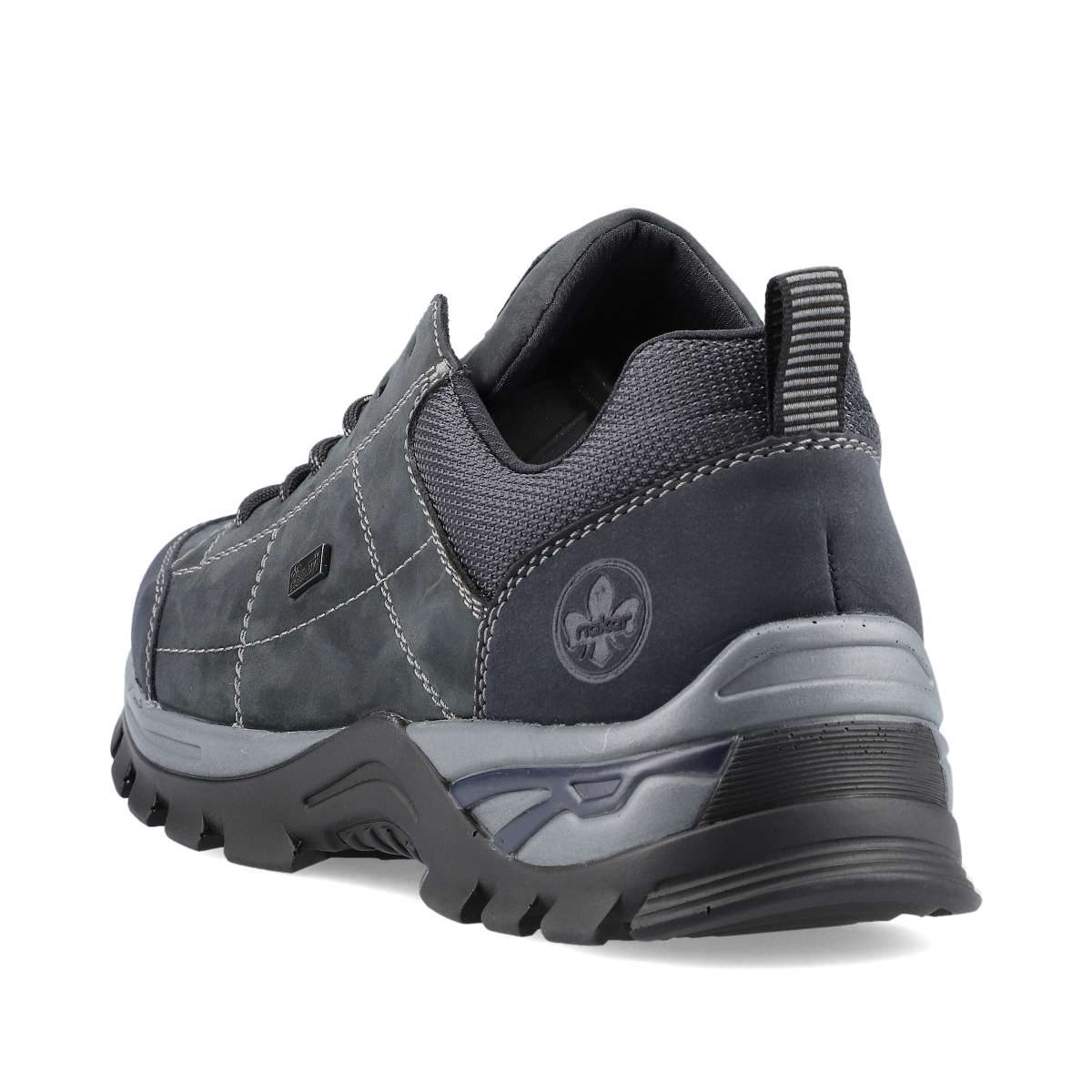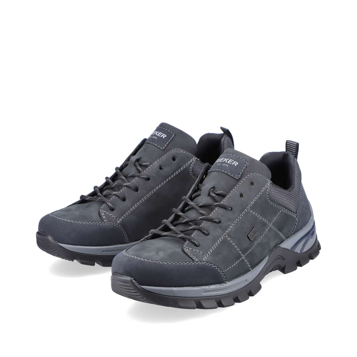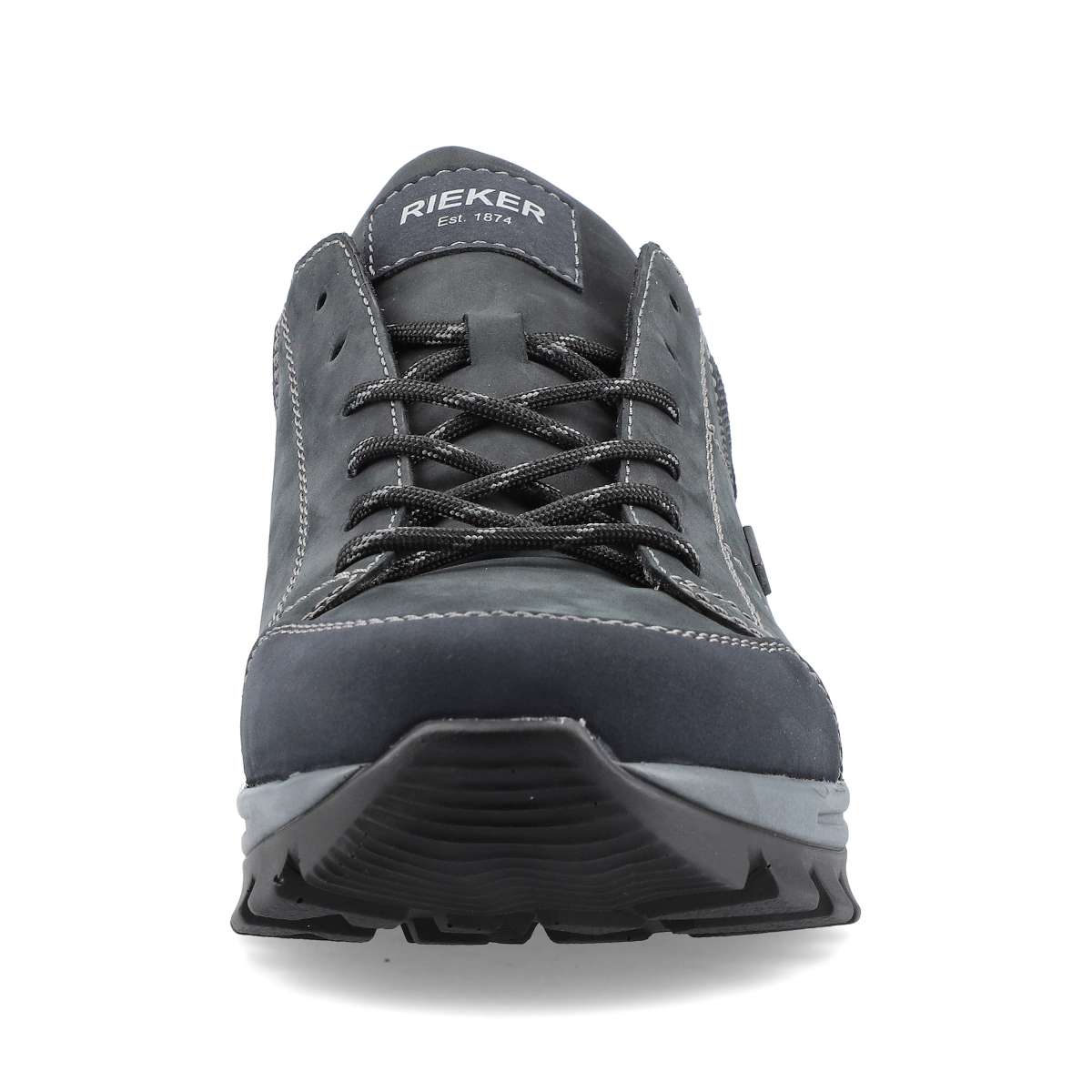 Pokud hledáte obuv na procházky v přírodě, tak tento model značky RIEKER bude tou správnou volbou. Tmavě modrý svršek je ozdoben černými prvky, kontrastním prošíváním, vytlačeným logem značky a textilní částí v oblasti kotníku. Díky šněrování tkaničkami si obuv přizpůsobíte tak, jak potřebujete a TEXová funkční vrstva se postará o to, aby obuv byla nepromokavá, ale přesto prodyšná. Měkká vyjímatelná stélka bude dobrý společník při každém kroku a flexibilní podešev má hrubší vzorek, který Vás podrží i v terénu. Pánskou trekovou obuv využijete jak na běžné procházky, tak na lehkou turistiku. Technologie: Rieker TEX – funkční vrstva, díky které je bota nepromokavá a přesto prodyšná. Tato bota je vybavena vyjímatelnou stélkou. Antistress – podešev je díky této technologii lehká, flexibilní, absorbuje nárazy při došlapu a snadno se přizpůsobí každé noze.