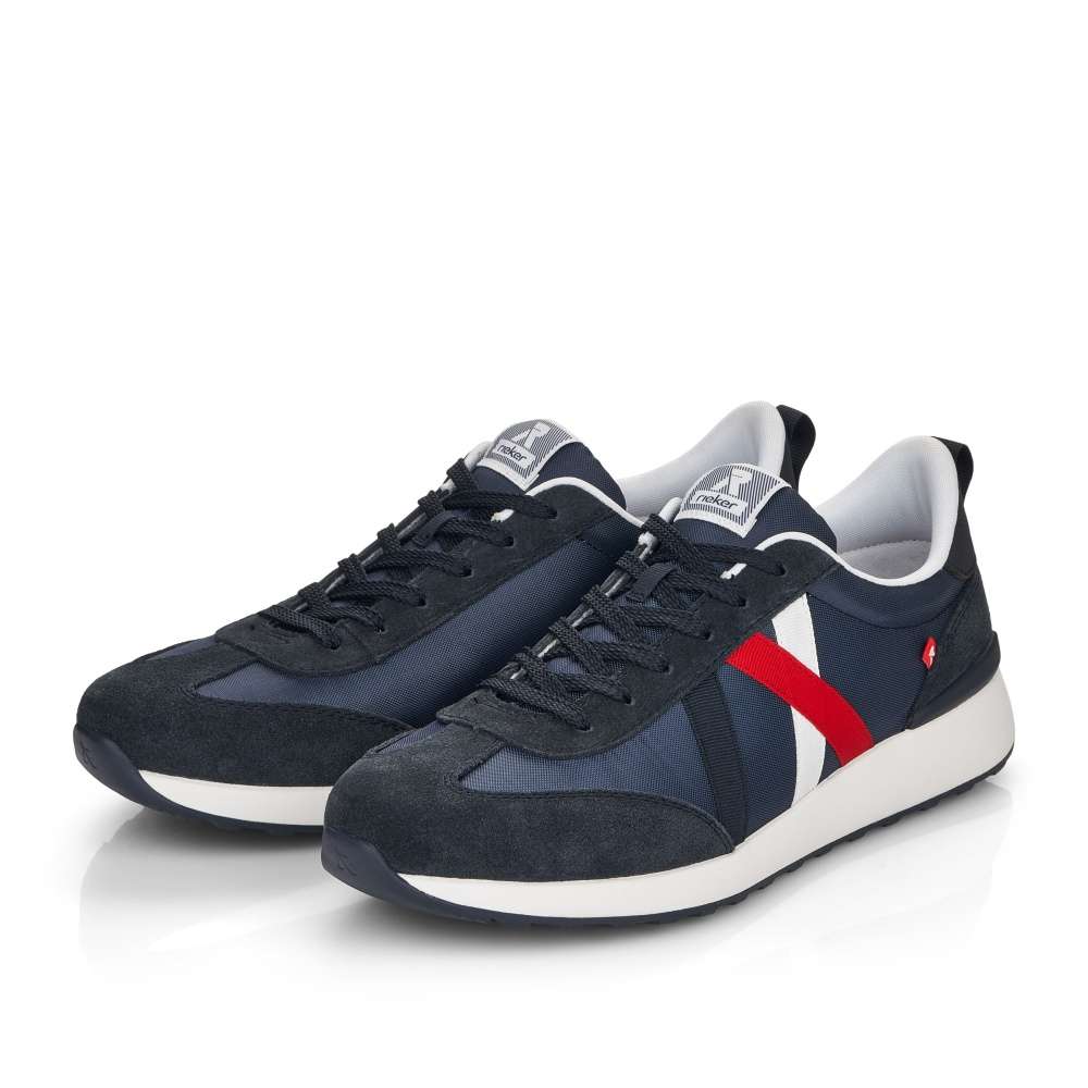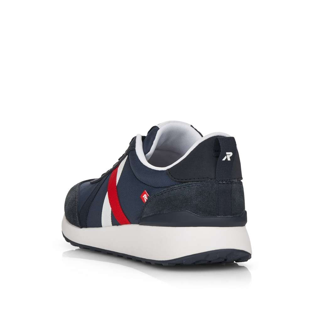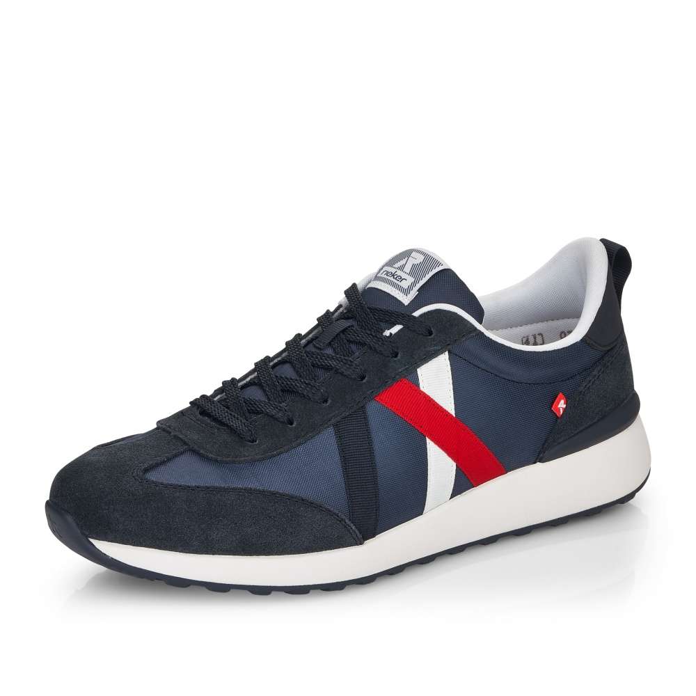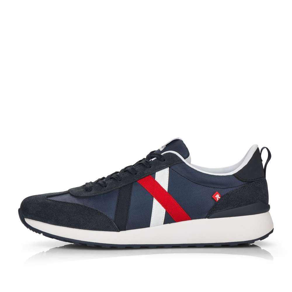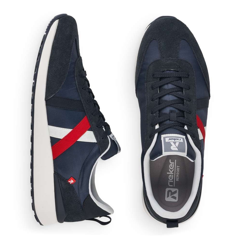 Jste vyznavačem sportovní a originální módy? Pak jsou tyto tenisky navrženy přímo pro Vás. Svršek je vytvořen kombinací kožených a syntetických materiálů. Pruhy v kontrastních barvách zaujmou na první pohled. Dalšími ozdobnými prvky jsou loga značky Rieker. Příjemnou chůzi Vám zajistí nejen jemně vyvýšená podrážka, ale také vyjímatelná stélka z paměťové pěny. Díky šněrování můžete botu zcela přizpůsobit Vaší noze. Kombinace těchto vlastností Vám zaručí pohodlí a komfort po celý den, zatímco výrazné detaily zajistí exkluzivní vzhled.