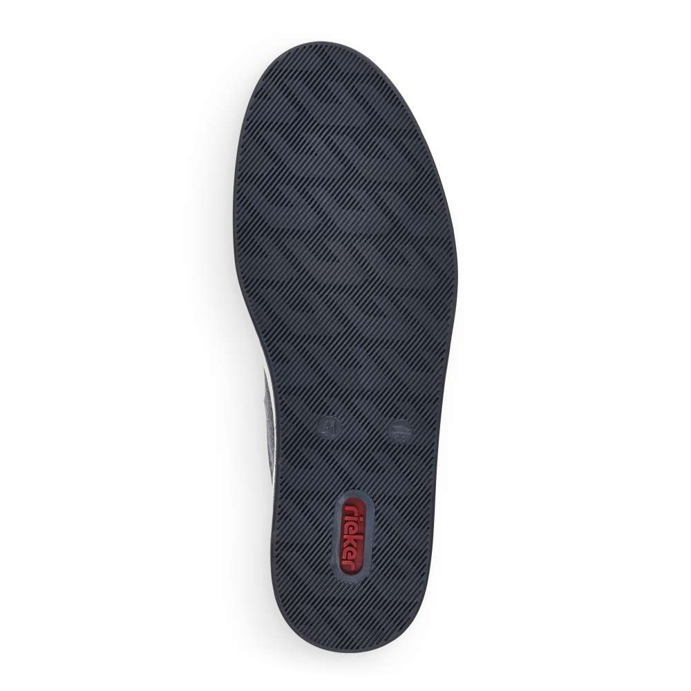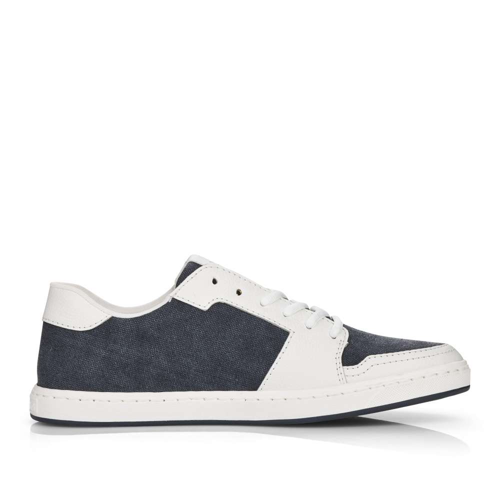 V tomto modelu tenisek značky RIEKER se budete cítit šik při každé příležitosti. Dominantní bílou barvu svršku šikovně doplňují části jeansového vzhledu, vytlačená loga značky a jemné prošívání. Snadno si obuv nazujete a přizpůsobíte šněrováním. Stélka je pro Vaše pohodlí vyrobena z měkkého materiálu a podešev je se svrškem spojena šitím, díky kterému je obuv lehká a flexibilní. Kalhoty či kraťase, s tímto modelem nemusíte přemýšlet, zda se k nim obuv bude hodit. Technologie: Antistress – podešev je díky této technologii lehká, flexibilní, absorbuje nárazy při došlapu a snadno se přizpůsobí každé noze.