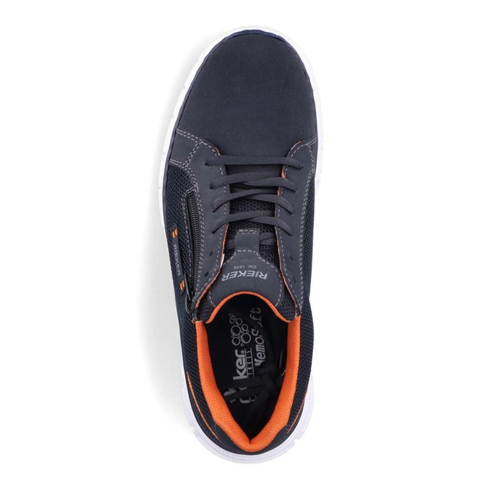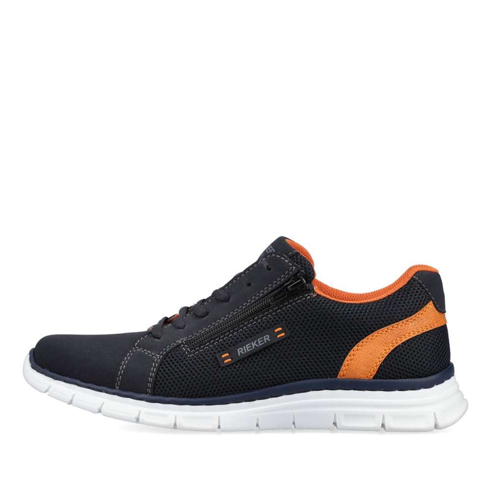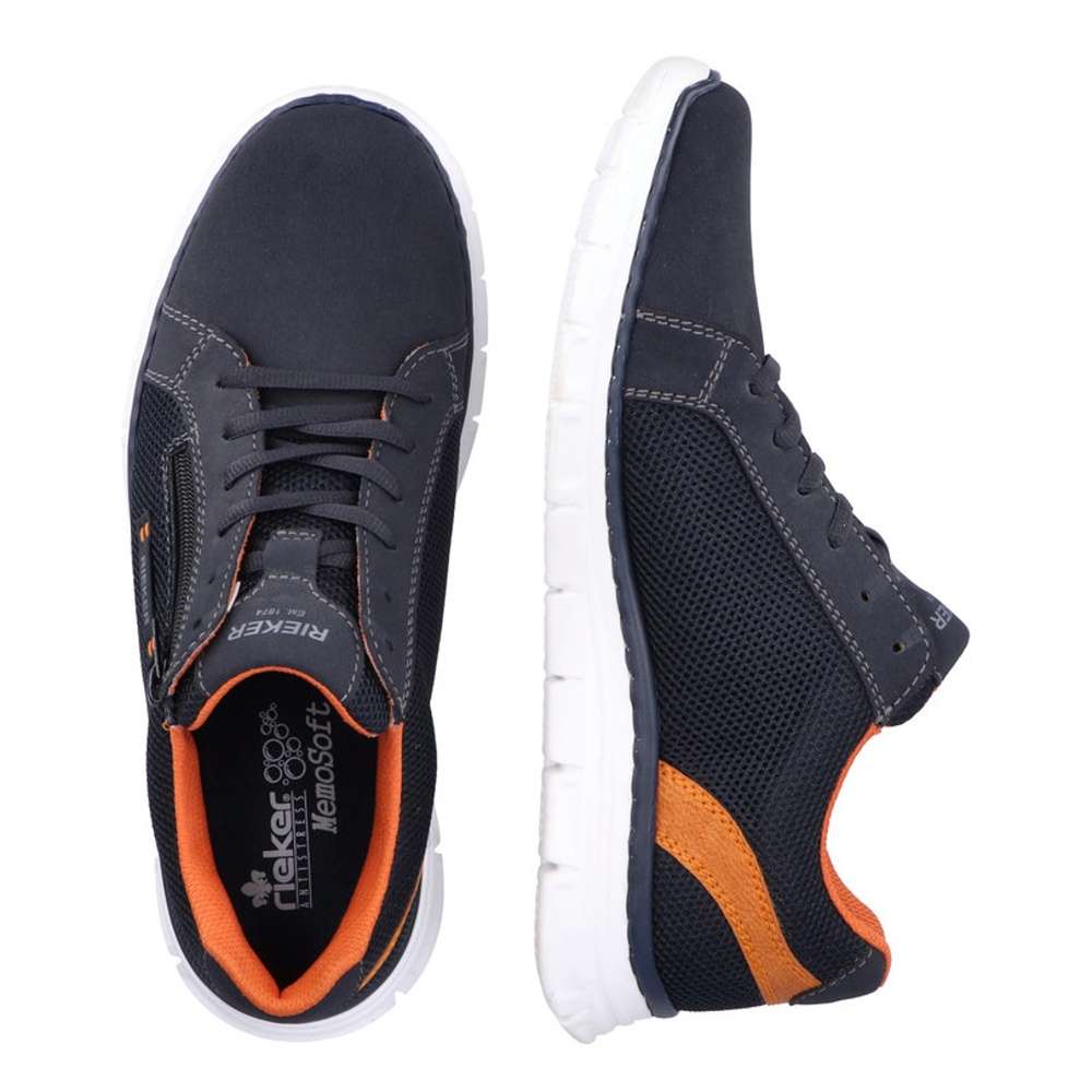 Tyto pánské tenisky značky RIEKER jsou univerzálním kouskem do Vašeho botníku. Kombinovaný svršek s jemnou perforací zajistí prodyšnost obuvi. Stélka s technologií MemoSoft a odlehčená podešev zajistí maximální komfort při chůzi. Pro snadné obutí slouží zip na vnější straně a šněrování, díky kterému se obuv skvěle přizpůsobí Vašim nohám. Tento model se hodí na procházky i na cestu do práce. Technologie: MemoSoft – unikátní stélka z paměťové pěny, která změkčuje došlap, ale také se maximálně přizpůsobí tvaru Vašeho chodidla.