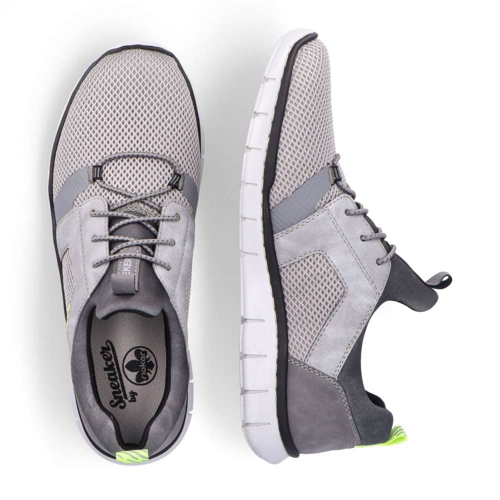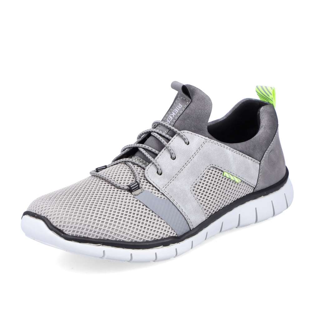 Detailní informace Tyto sportovní tenisky značky Rieker Vás mohou zaujmout svým neotřelým zevnějškem, a to nejen díky módní šedé barvě, ale také díky neonově zeleným detailům, které dodávají obuvi mladistvý vzhled. Kvalitní textilní svršek je prodyšný, a je doplněn hladkými částmi pro větší zdobnost. Pružné gumičky, které nahrazují klasické šňůrky dovedou tenisky k úplné dokonalosti. Měkká stélka Vám zaručí maximální pohodlí i při dlouhodobé chůzi. Tyto boty jsou vhodné jak při sportovních aktivitách, tak i při procházkách do přírody, i města.