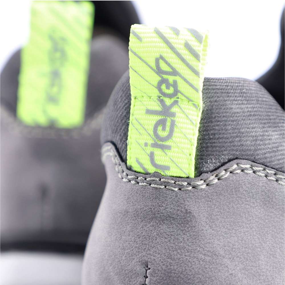 Tyto sportovní tenisky značky Rieker Vás mohou zaujmout svým neotřelým zevnějškem, a to nejen díky módní šedé barvě, ale také díky neonově zeleným detailům, které dodávají obuvi mladistvý vzhled. Kvalitní textilní svršek je prodyšný, a je doplněn hladkými částmi pro větší zdobnost. Pružné gumičky, které nahrazují klasické šňůrky dovedou tenisky k úplné dokonalosti. Měkká stélka Vám zaručí maximální pohodlí i při dlouhodobé chůzi. Tyto boty jsou vhodné jak při sportovních aktivitách, tak i při procházkách do přírody, i města. Technologie: Antistress – podešev je díky této technologii lehká, flexibilní, absorbuje nárazy při došlapu a snadno se přizpůsobí každé noze.