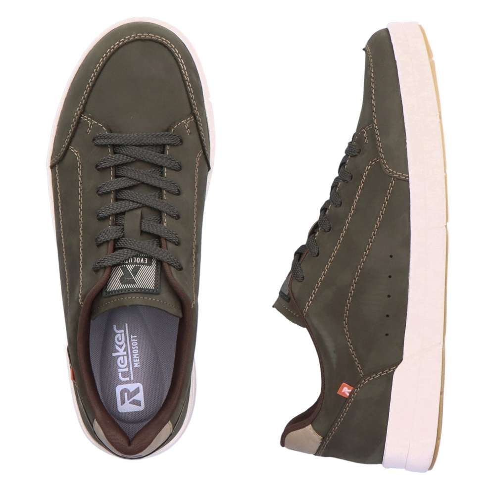Rieker Revolution je nová řada moderní sportovní obuvi s obrovským důrazem na komfort a pohodlí i při celodenním nošení. Představujeme Vám krásné pánské tenisky značky Rieker, kterým velmi těžko odolá nejeden muž. Svršek boty je kožený a díky tomu se krásně přizpůsobí Vašemu chodidlu. Textilní podšívka se stélkou Vám zajistí prodyšnost, takže i v podzimních dnech budou skvělým parťákem. Vyjímatelná stélka SoftFoam ve které se budete cítit jako v papučích a díky šněrovacímu systému si tenisku upravíte dle Vašeho pohodlí. Do lesa, do města, prostě kamkoliv, s naší obuví se neztratíte. Technologie: SoftFoam – unikátní stélka z paměťové pěny, která změkčuje došlap, maximálně se přizpůsobí tvaru Vašeho chodidla, ale zároveň ji můžete vyjmout, vyměnit nebo vyvětrat.