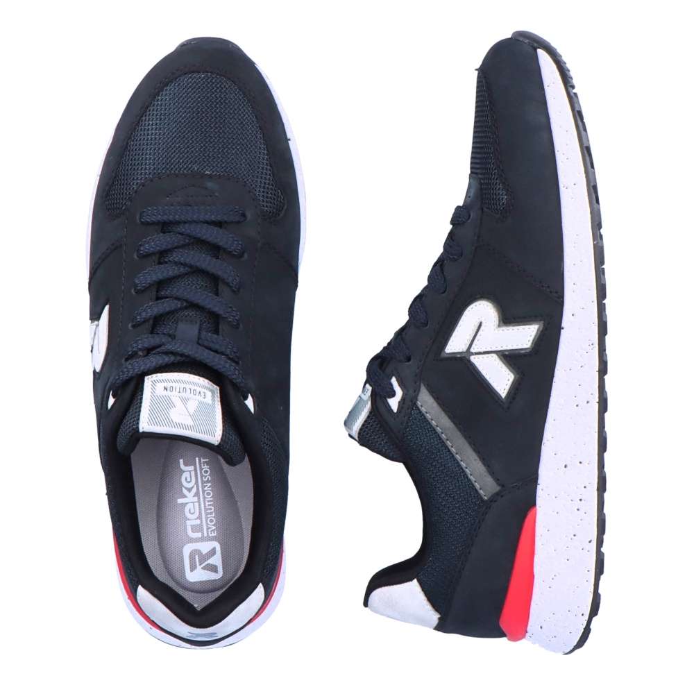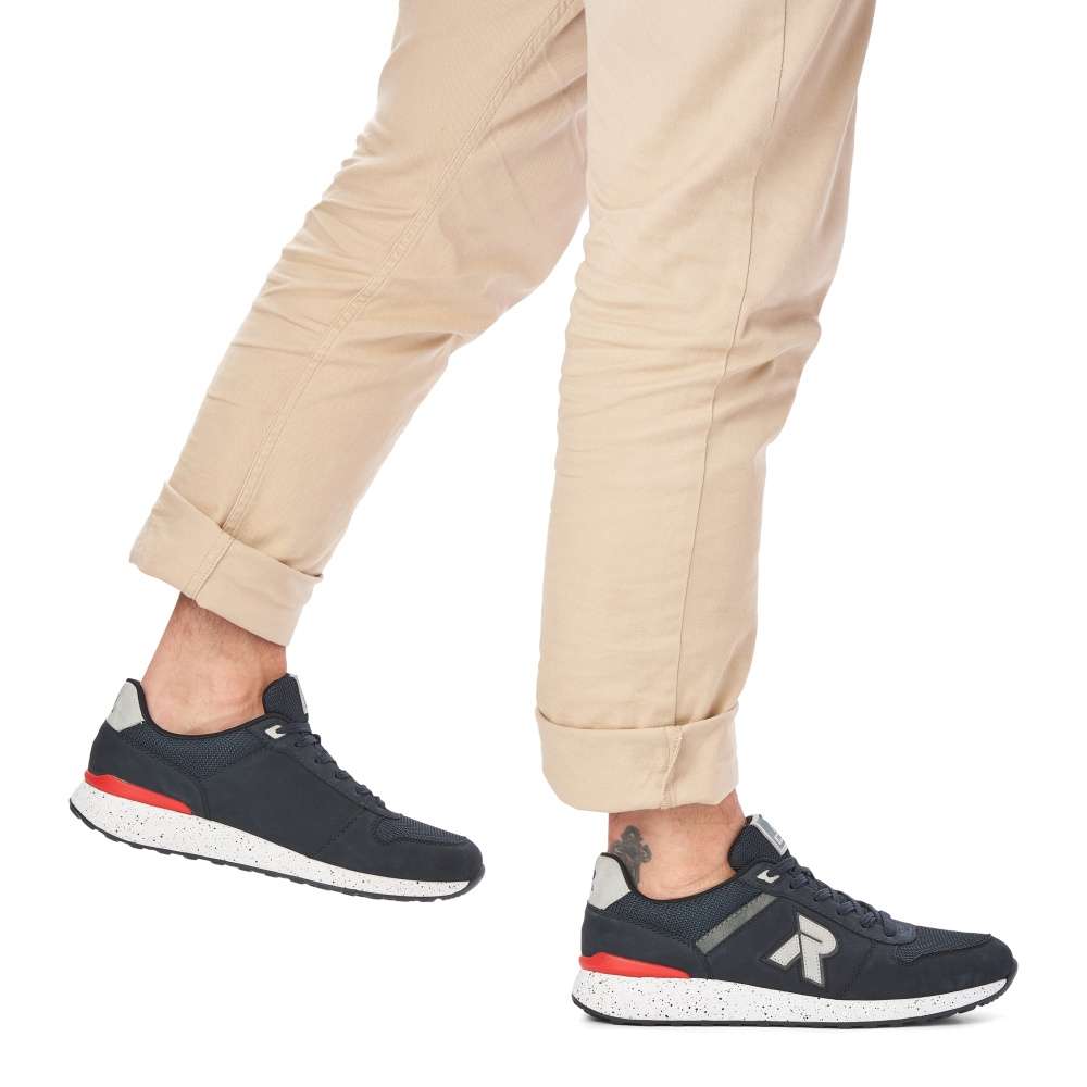 Rieker Revolution je nová řada moderní sportovní obuvi s obrovským důrazem na komfort a pohodlí i při celodenním nošení. Pánské tenisky od značky RIEKER Vás potěší svým sportovním ale i zároveň ležérním vzhledem, což jistě ocení ne jeden muž. Svrchní materiál v kombinaci barev je ozvláštněn všitým písmenem R na vnější straně. Pohodlná stélka je vyrobená z paměťové pěny a zajistí Vám celodenní komfort. Tyto stylové boty skvěle využijete na rodinné výlety, ale i do práce, pokud se chcete cítit vždy pohodlně. Technologie: RevolutionSoft – unikátní stélka z paměťové pěny, která změkčuje došlap, ale také se maximálně přizpůsobí tvaru Vašeho chodidla. Tato bota je vybavena vyjímatelnou stélkou.
