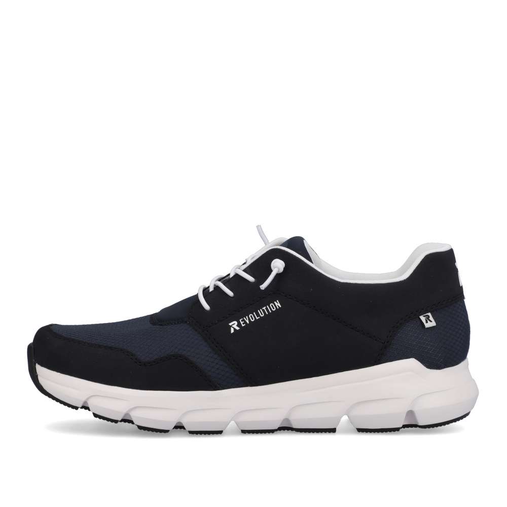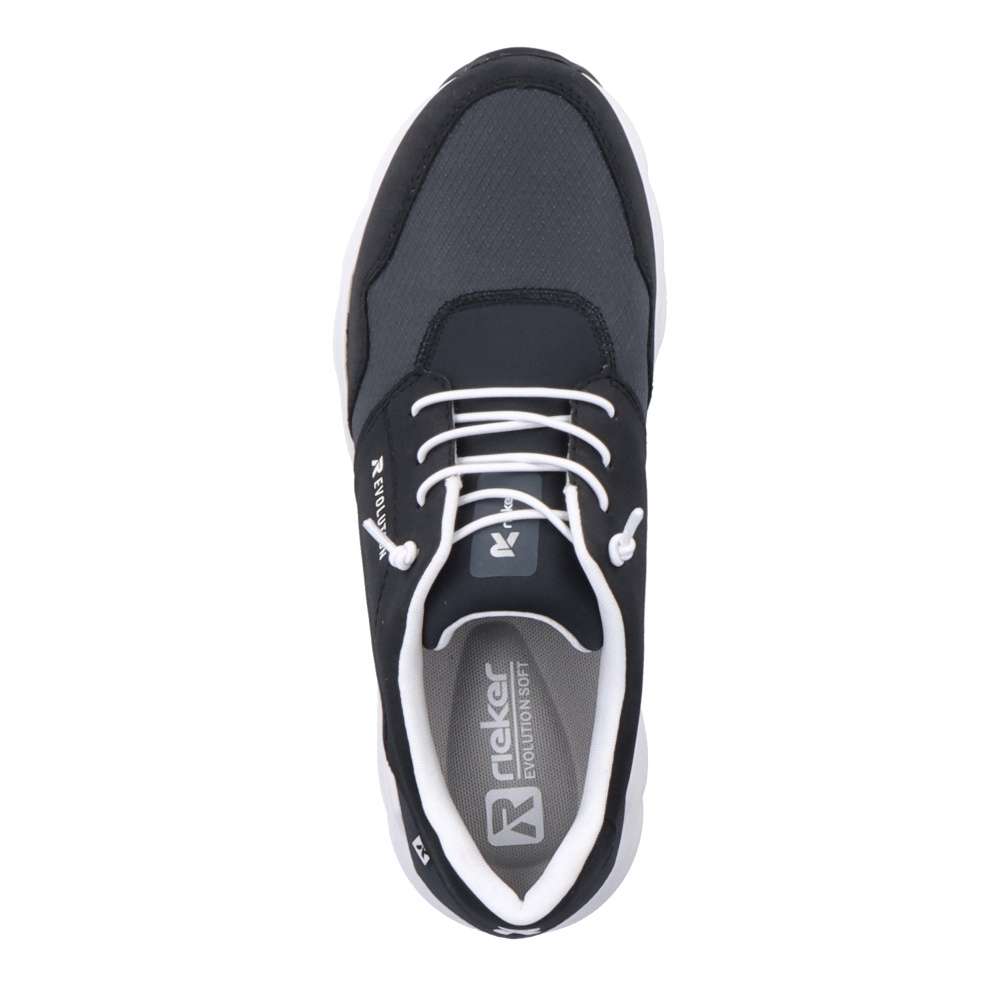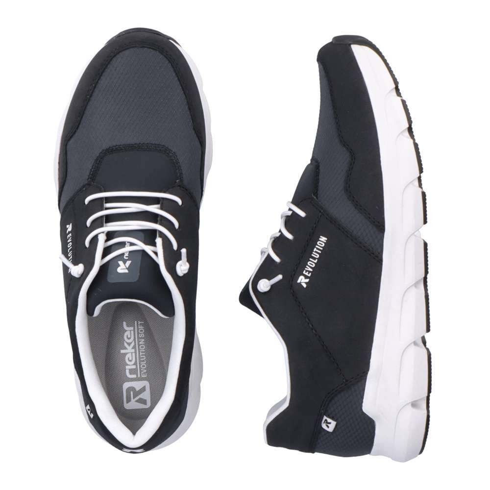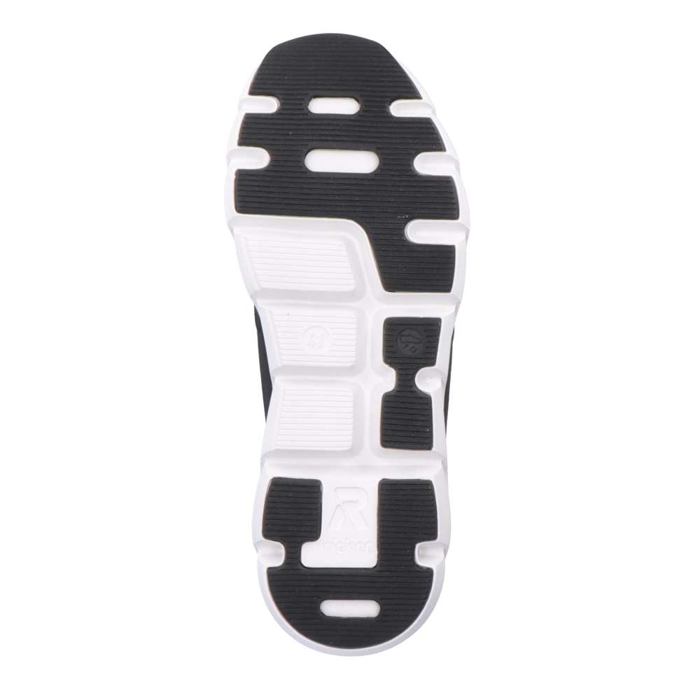 Rieker Revolution je nová řada moderní sportovní obuvi s obrovským důrazem na komfort a pohodlí i při celodenním nošení. Černá klasika v moderním provedení, to jsou tyto tenisky Rieker. Díky jednoduchému svršku zdobenému názvem Revolution z vnější strany, a hlavně netradičním šněrováním bílou gumičkou, ihned upoutají Vaši pozornost. Pohodlná vyjímatelná stélka je vyrobena z paměťové pěny a zajistí Vám celodenní komfort. Už jen si je obout a vyrazit za novými zážitky. Technologie: RevolutionSoft – unikátní stélka z paměťové pěny, která změkčuje došlap, ale také se maximálně přizpůsobí tvaru Vašeho chodidla. Tato bota je vybavena vyjímatelnou stélkou.